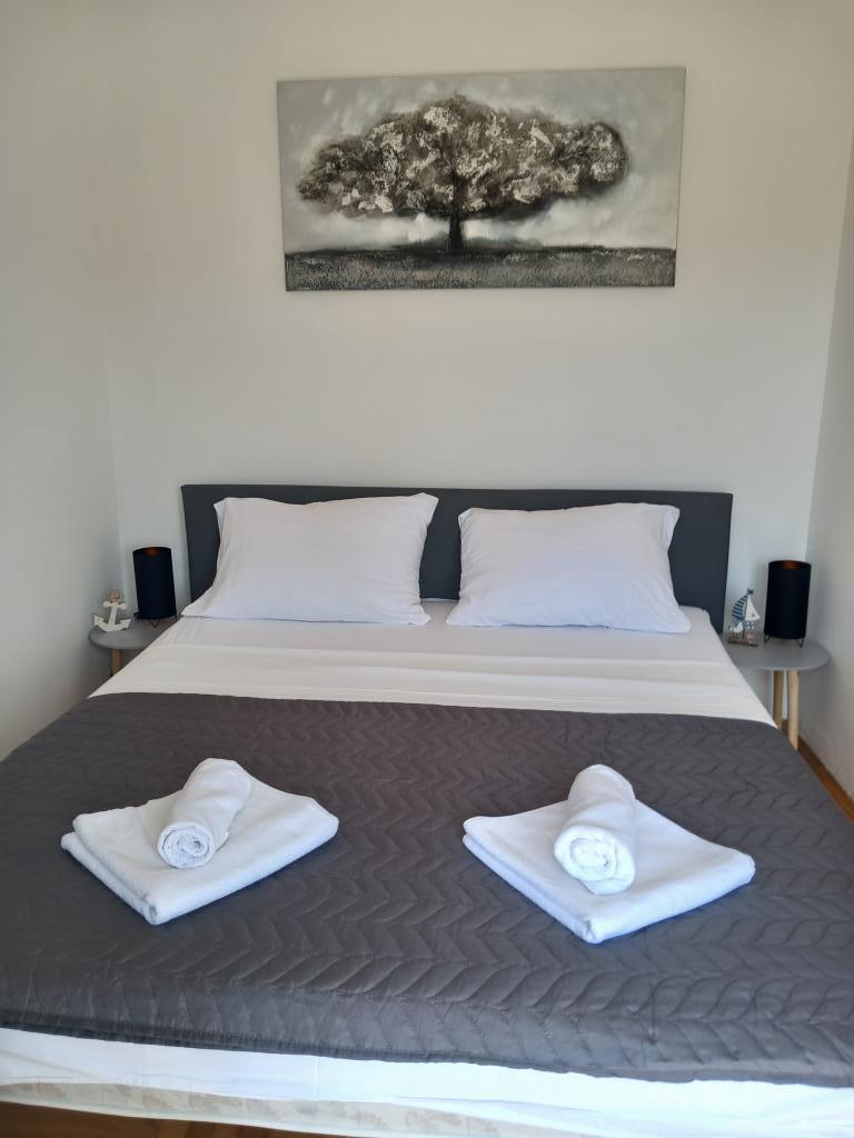 Mira Apartments are located in a family house, and offer accommodation for up to 15 people in 3 apartments. We are located in a quiet neighborhood, almost at the very end of a dead-end street, and all the essential amenities (shop, bakery, ATM, pharmacy, restaurants, post office, cafes...) are nearby, less than a 10-minute walk away. The most famous beach on Rab, Rajska plaža, almost 2km long and great for children, is the closest beach and you can get there in a 10-minute walk. We have free parking next to the house and 2 children's playgrounds. The apartments have a washing machine available and a storage space on the ground floor (for strollers or bicycles). All apartments have Smart TVs with unlimited Netflix :)