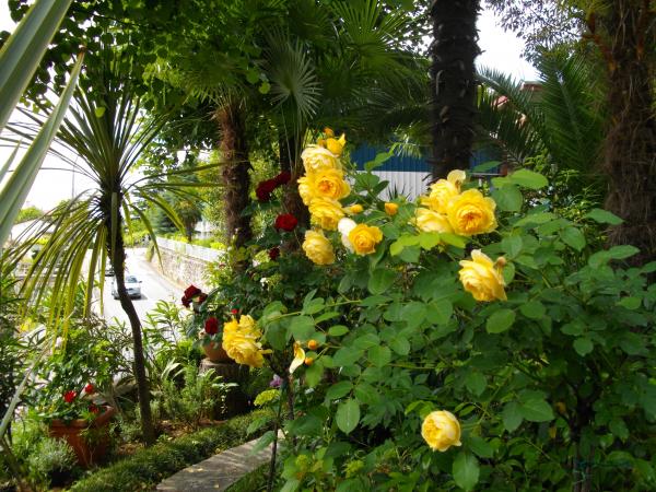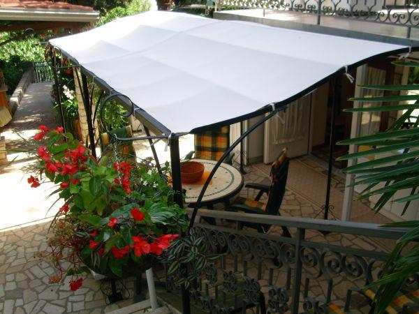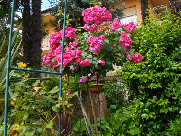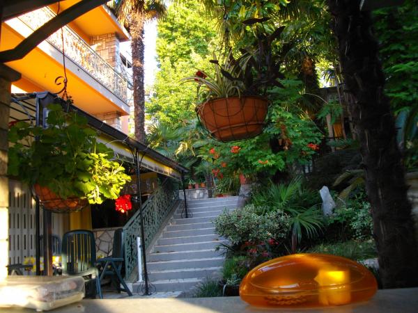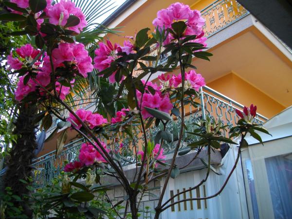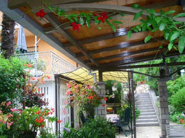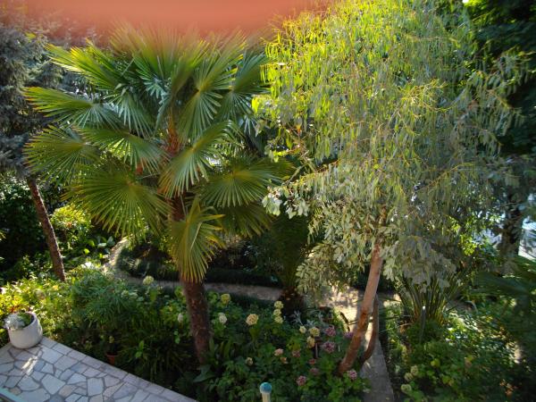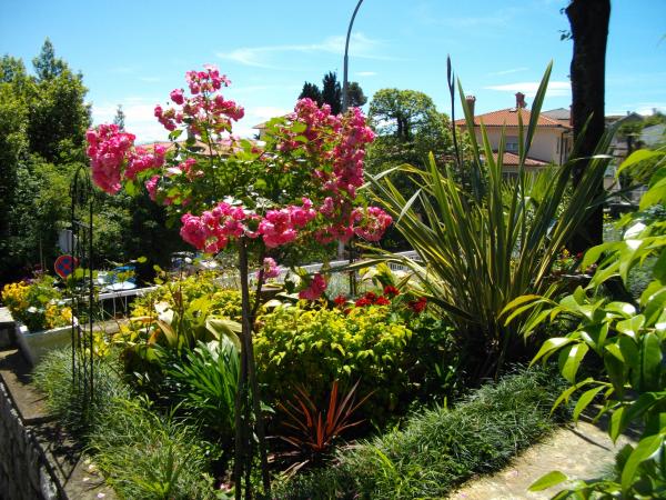 The apartment is located on the ground floor of a detached house. The special feature is the large garden. An abundance of trees, roses, bushes and flowers. In the garden there is a covered gazebo with a grill, a fully equipped kitchen and a large garden table. The garden area is connected to the apartment area and forms a single unit where guests can enjoy pleasant freshness, peace and greenery. A peaceful oasis close to the beach and the town center with all amenities. SAT TV, Air conditioning, WiFi 0-24h. Parking in the yard.