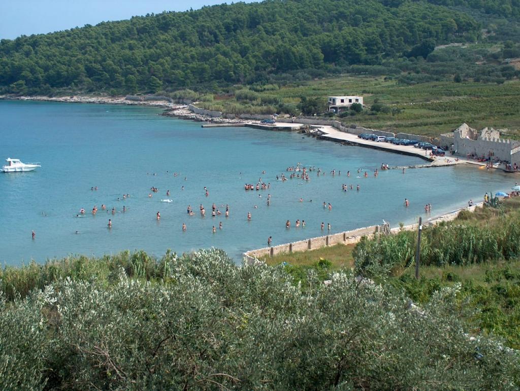 Lumbarda is famous for its sandy beaches. Pržina and Bilin žal. What does the word Pržina mean? Pržina is a Lumbar word for sand. Enough to say… The beach is protected from north winds, a shallow bay facing south allows for pleasant swimming in the pre-season, and often until deep in the 11th month. Pržina is a very popular and well-visited beach, so it is sometimes full of people and it is difficult to find a place on the beach. Pržina is loved by both tourists and locals who come to the beach for fun and socializing. There is also a fast food bar on the beach and there is a possibility of renting umbrellas and deck chairs. Not only guests of Lumbarda come to the beach, but it is popular among tourists from the entire island of Korcula. Another sandy beach in Lumbarda is Bilin žal. It is located on the opposite side of the beach Pržina, and are only a few minutes walk through the vineyards of the Greeks. Bilin žal beach has a view to the north-east, the Pelješac peninsula and the islands of the Korčula archipelago.