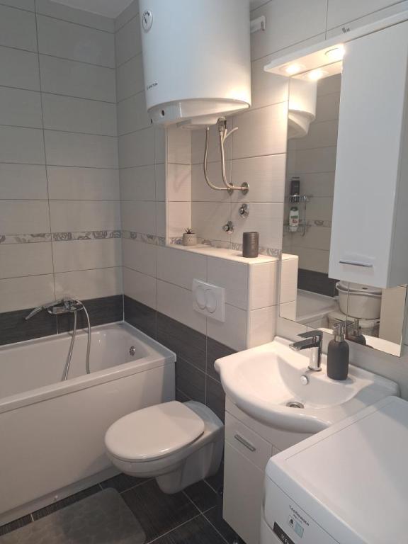 Fully and modernly equipped apartment in a quiet location. In the immediate vicinity of the old town center, only 10 minutes to the main city square or the nearest beach in the Osejava forest park. There is a shop and shopping center near the apartment. The apartment has an equipped kitchen with a refrigerator, oven, dishwasher, microwave. The bathroom also has a dishwasher and a hairdryer. From the apartment you exit to a large private terrace with greenery, a barbecue and a place to enjoy.