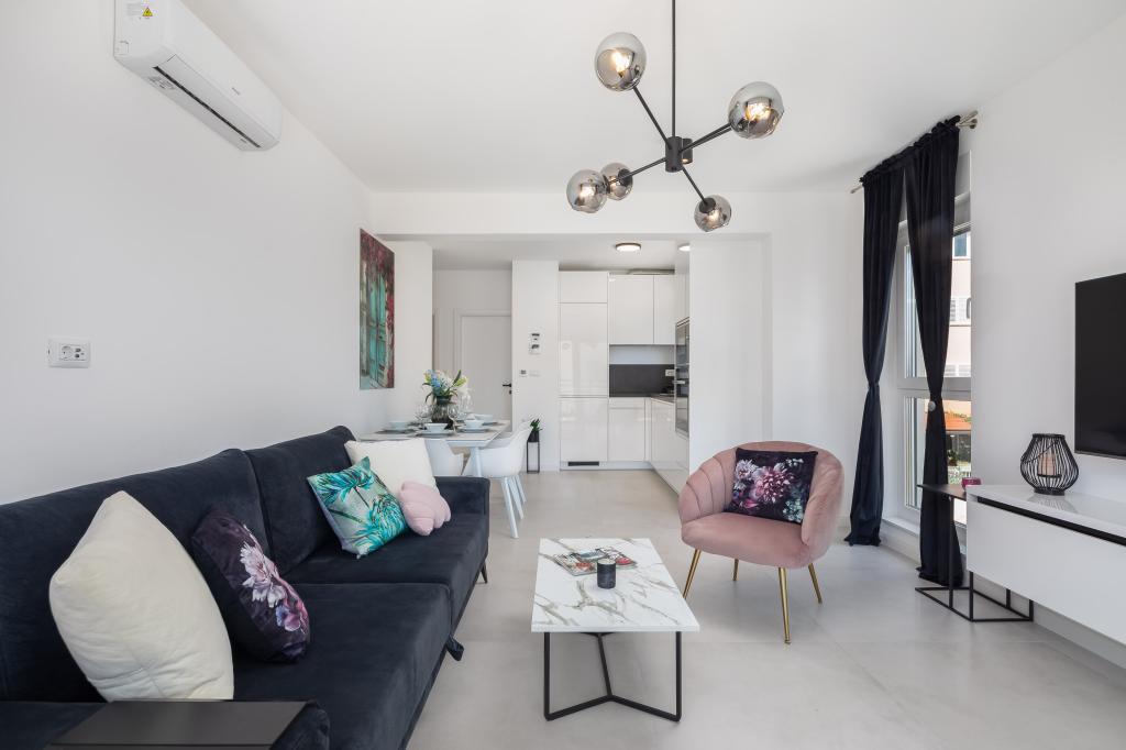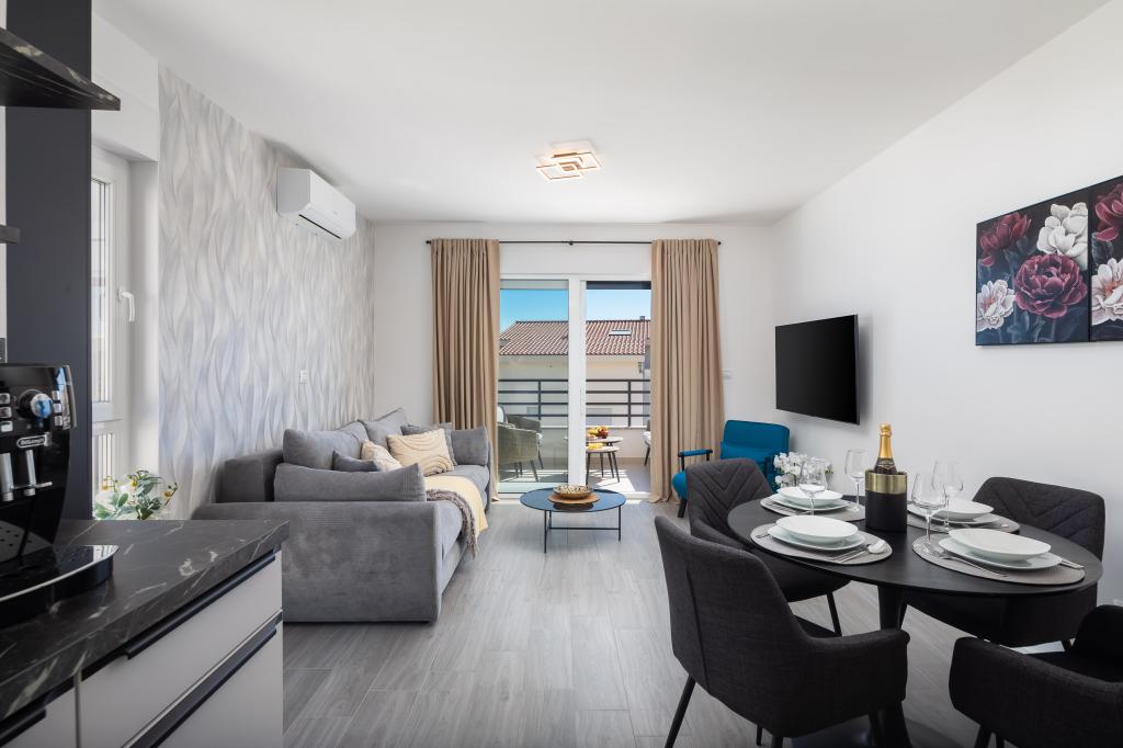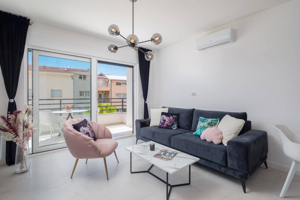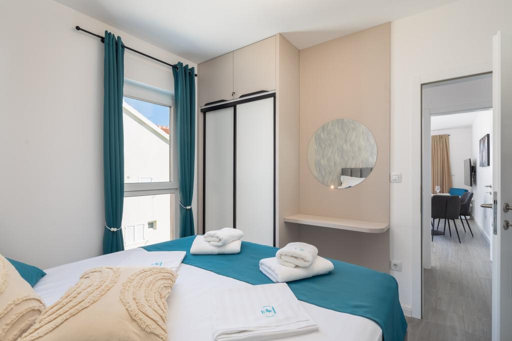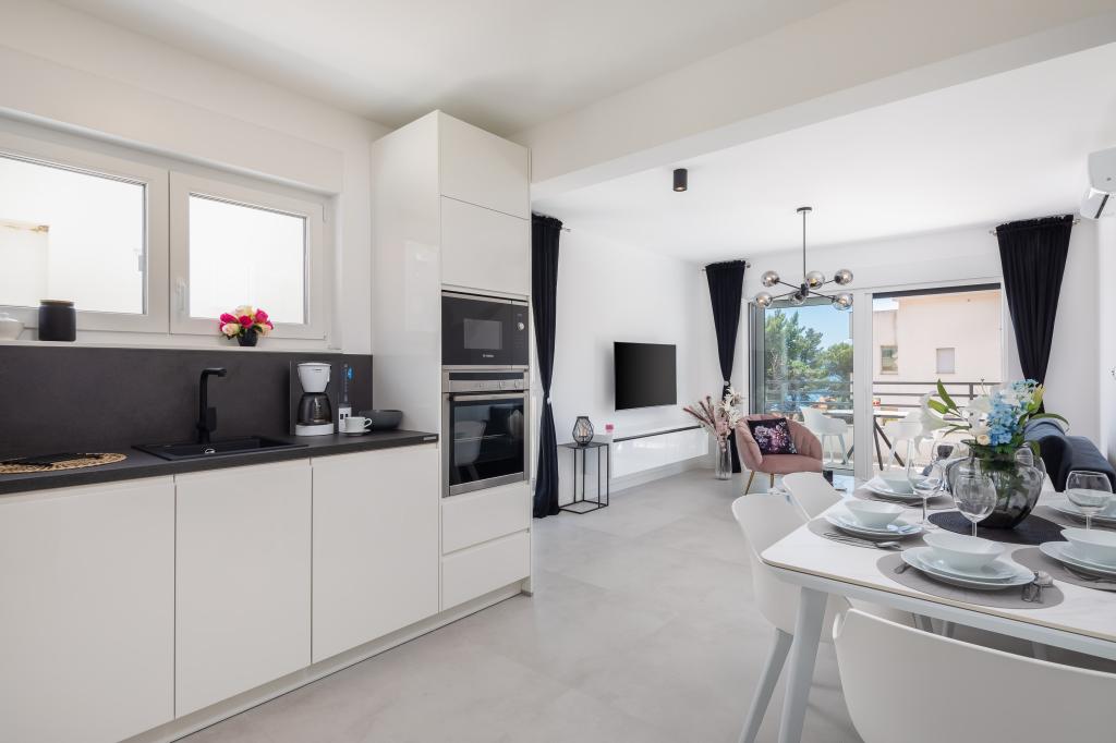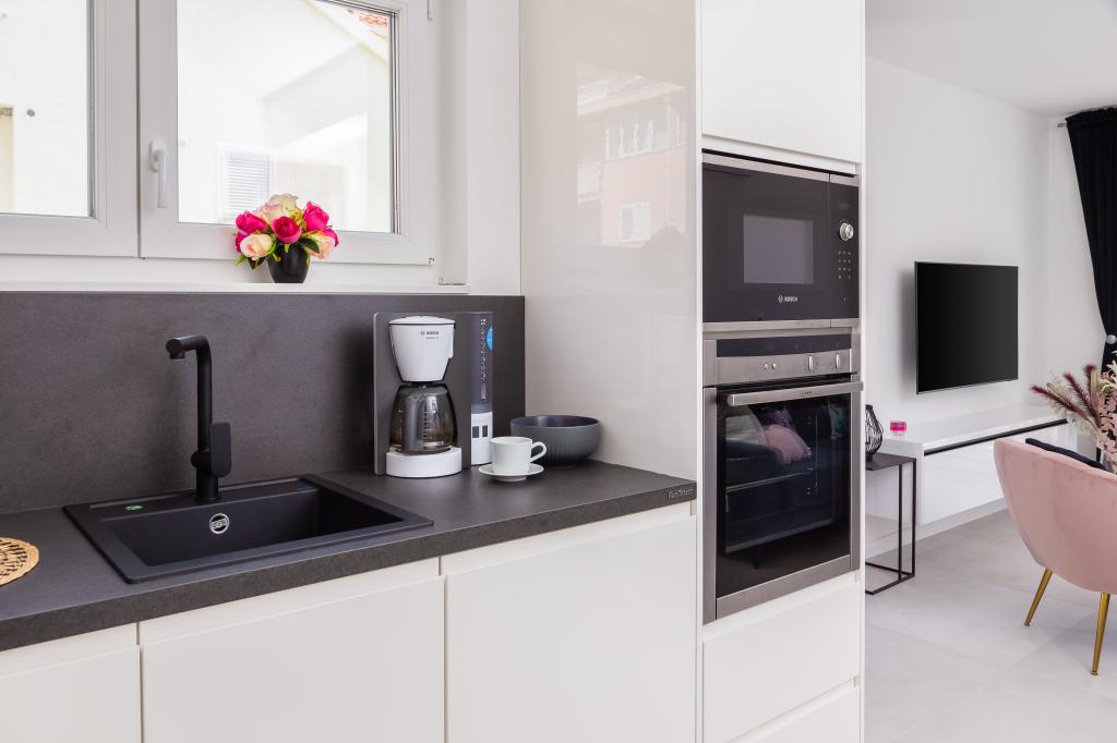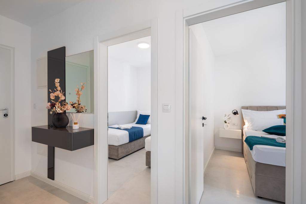 Apartment Edvina is 500 meters from the beach. It offers guests easy access to the beautiful Adriatic coast, while providing a comfortable and modern living space. The apartment has two bedrooms, each carefully designed to ensure a peaceful and comfortable stay. The bedrooms are equipped with comfortable beds. The balcony offers a beautiful view of the sea and the city. The parking lot is next to the building.