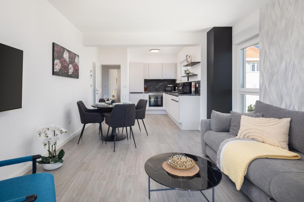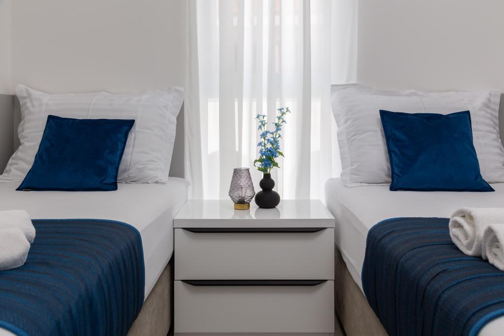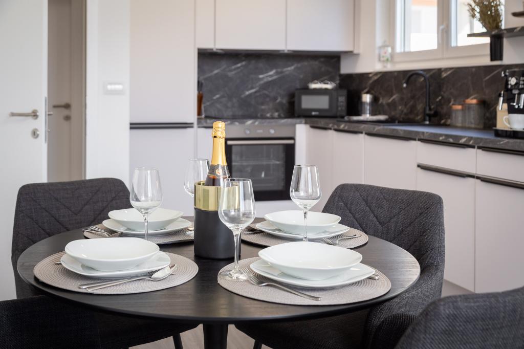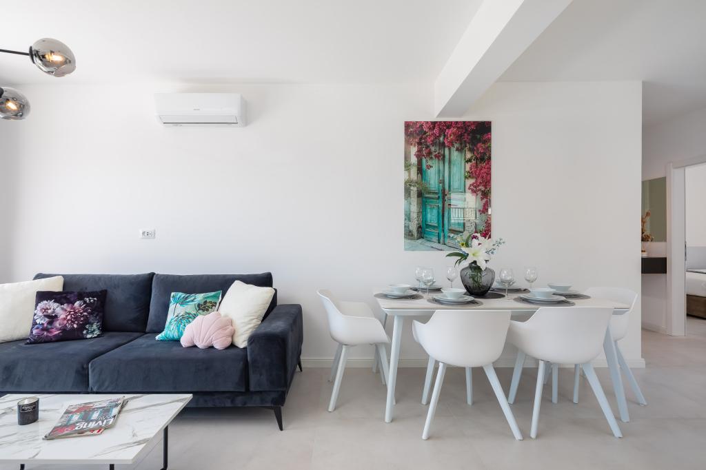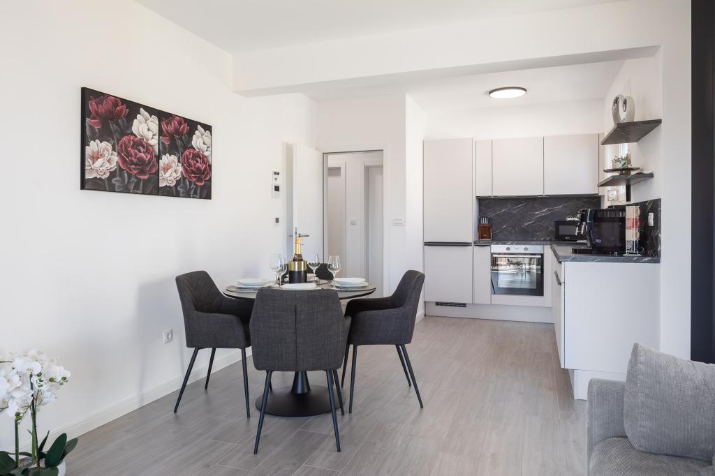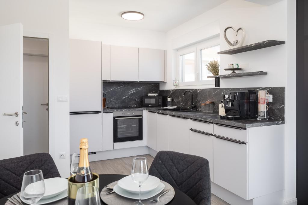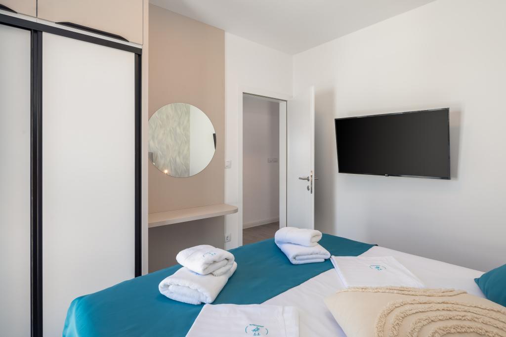 Apartment Edvina is 500 meters from the beach. It offers guests easy access to the beautiful Adriatic coast, while providing a comfortable and modern living space. The apartment has two bedrooms, each carefully designed to ensure a peaceful and comfortable stay. The bedrooms are equipped with comfortable beds. The balcony offers a beautiful view of the sea and the city. The parking lot is next to the building.