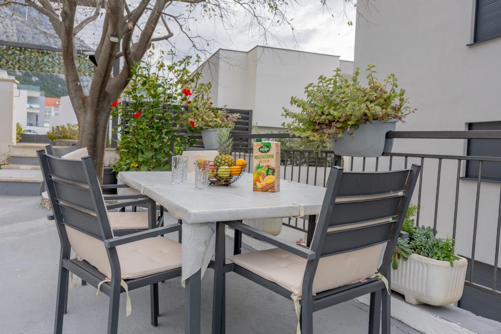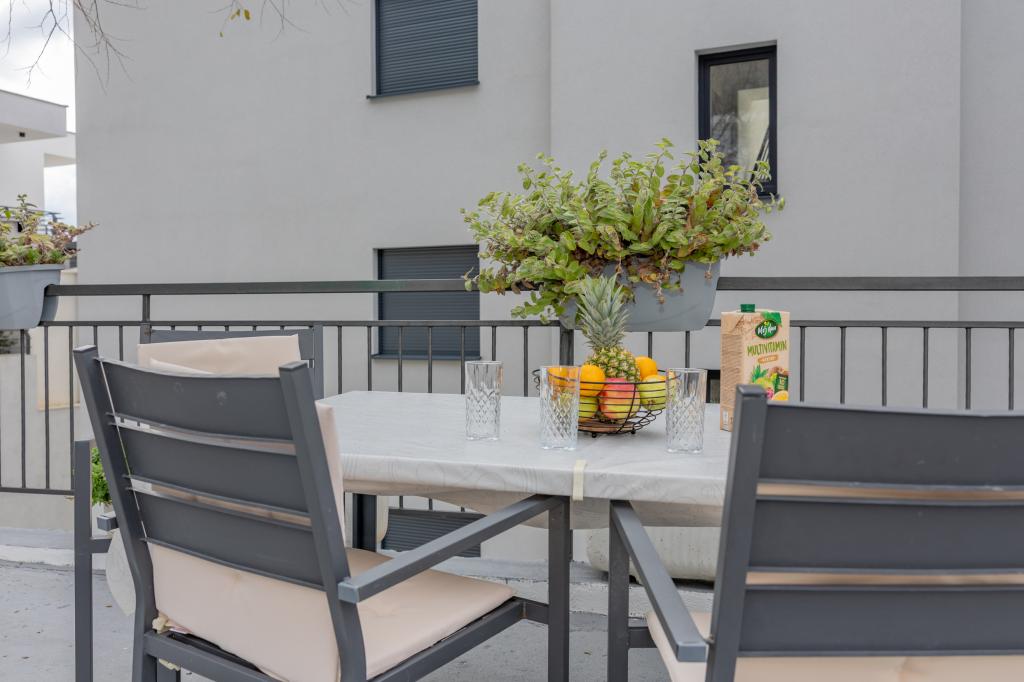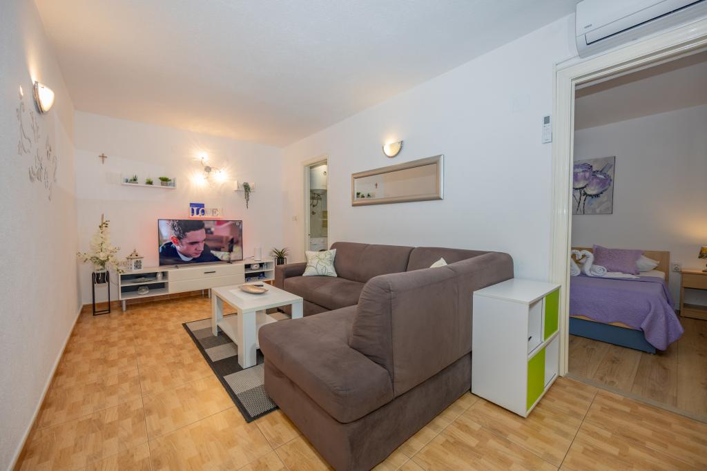 This cozy apartment of about 40 m² offers everything you need for a pleasant stay. The accommodation includes: Bedroom with a comfortable double bed Living room with a sofa bed (suitable for 1 adult or 2 children), Smart TV and air conditioning, Fully equipped kitchen with dishwasher, microwave, coffee maker and kettle, Bathroom with shower and washing machine In front of the house there is a private terrace with a dining table. There is also a shared barbecue area at your disposal - ideal for relaxing evenings outdoors. The apartment is perfect for couples or small families looking for comfortable and well-equipped accommodation in a peaceful environment. It offers the ideal combination of peace and comfort, yet is only a few minutes' drive from the city center. Enjoy relaxing moments or explore the rich offer of the city with restaurants, cafes and shops - everything is within your reach. Parking space for two vehicles is provided.