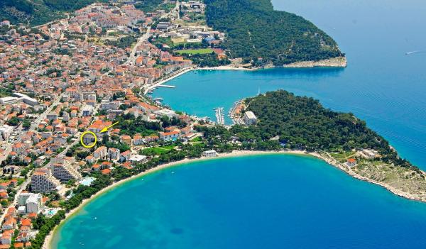 Apartment 4 1 in Makarska has two double rooms and an extra bed (sofa) in one room for five persons, kitchen, bathroom, toilet, air conditioning, sat, tv, dvd, parking. The apartment is located 100 m from the central sandy beach, which is especially ideal for children and the elderly. Also, it is 100 m away from the city marina and promenade-promenade which takes an easy walk to the old town center and the main square, which is about 300 m away from the apartment. Within 100m there are a market, a bakery, a butcher shop, a fish market. cafe and restaurant. It is ideally positioned so you do not need to use your car during your stay in Makarska. Welcome!