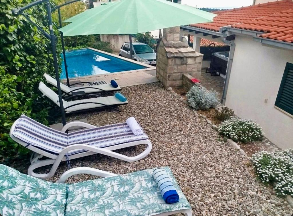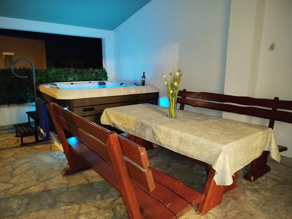Apartment Robert is located 400 m above the old town. It has an area of 120 m2 and consists of two bedrooms, two bathrooms, a living room and a kitchen. In front of the apartment there is a jacuzzi, TV, table with benches, grill, swimming pool with sun loungers and shower and private parking for your car. Welcome!