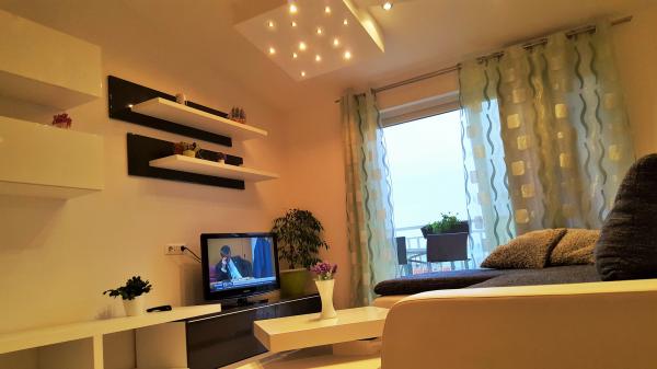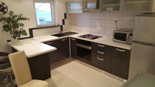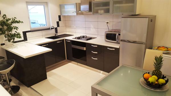 The modern and fully furnished apartment in the most attractive part of Makarska. The facility is located 5 minutes walk to the beach and promenade full of various facilities, such as bars, restaurants, souvenir shops and so on. In the same house where the apartment is a pharmacy and a supermarket. Near than 10 to 20 m are quiet cafes, bakeries, doctor, pediatrician, ATM, newsagent and shops. The apartment consists of kitchen, living room, three bedrooms, three bathrooms, large terrace and balcony. The apartment has a beautiful view of the sea, islands, city center and the mountain slope. The apartment is equipped with air conditioning which is a bit in the apartment, dishwasher, washing machine, TV set flat-screen TV, free WIFI, microwave. Guests have access to laundry and towels and other negotiable.