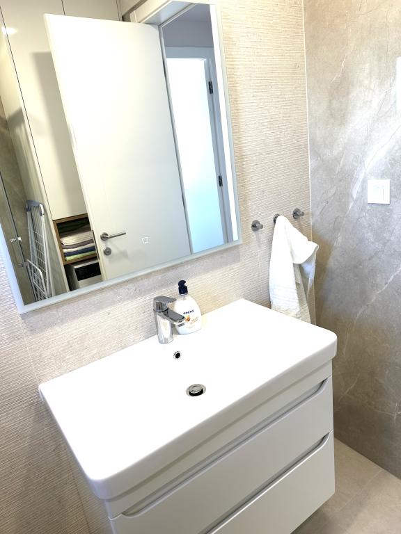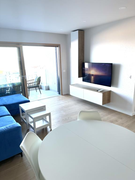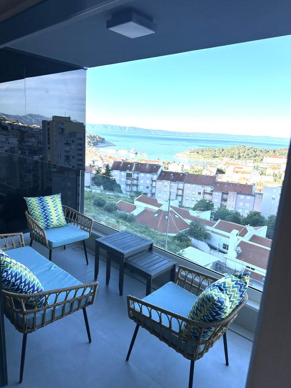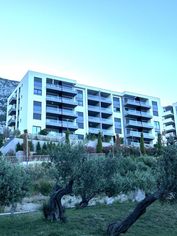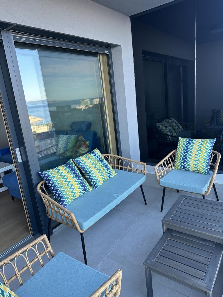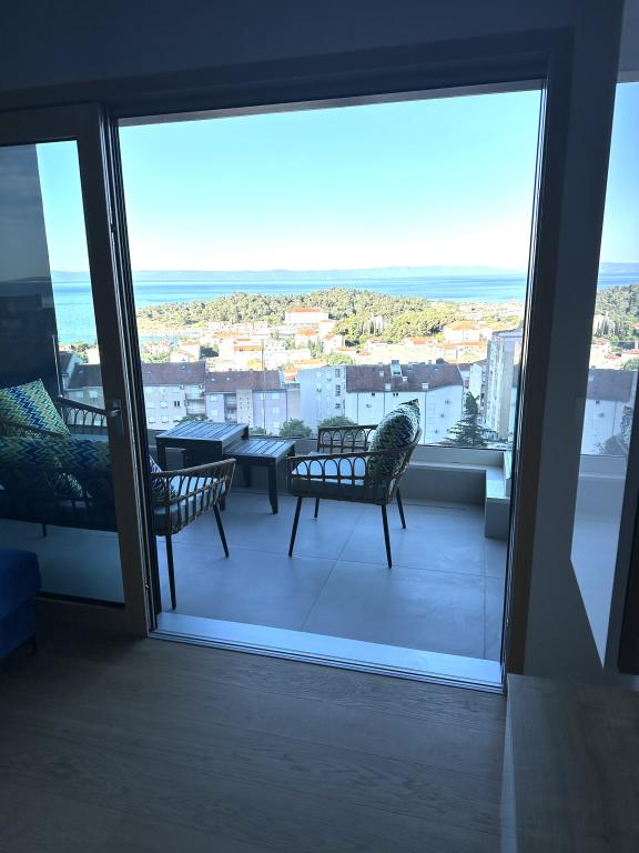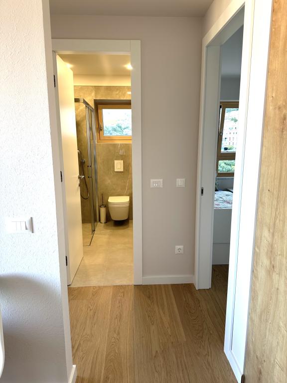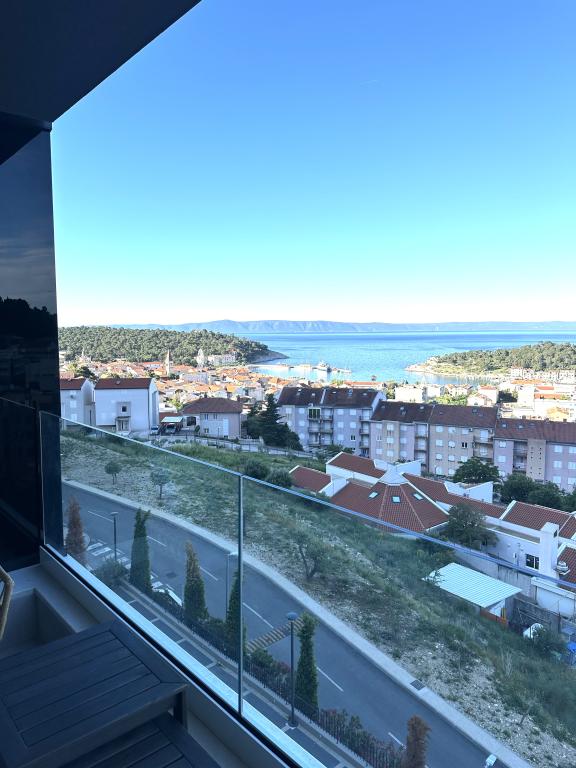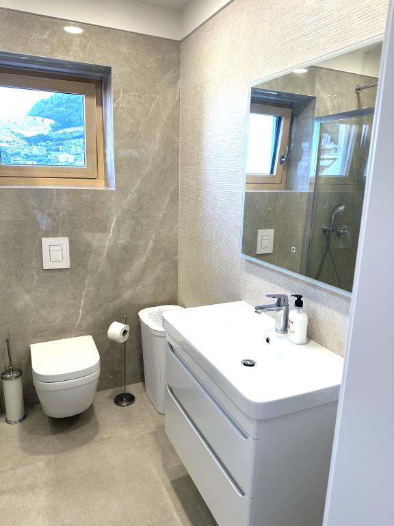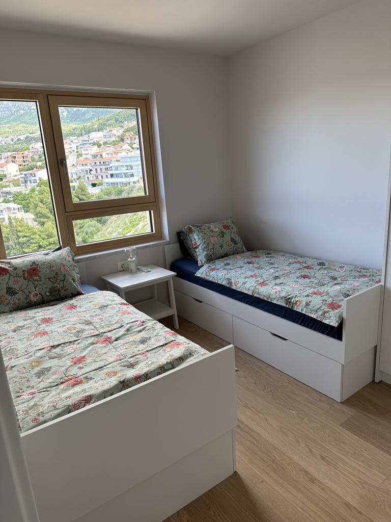 Newly renovated apartment in the very center of Makarska. The building was built according to the highest standards, luxuriously furnished like the apartment itself! Own parking available, outdoor parking no. 6 for LPG-powered cars and two parking spaces on floor -2; No.1 and 2. The apartment is located on the 3rd floor. It is oriented south-west. It consists of a kitchen with a dining room and a living room in an open space model. The kitchen is fully equipped so that you can enjoy preparing your favorite meals in it even during your annual vacation. Spacious bathroom with walk-in shower and washing machine. Two bedrooms! The main bedroom has a 160/200 bed, while the other has two 90/200 beds. The apartment is fully equipped with bed linen, towels, kitchen towels and paper towels. Liquid soap and detergent for washing clothes, toilet paper and detergent for dishes and tablets for the dishwasher. A beautiful view from the covered terrace extends over the city of Makarska and the islands of Brac and Hvar.