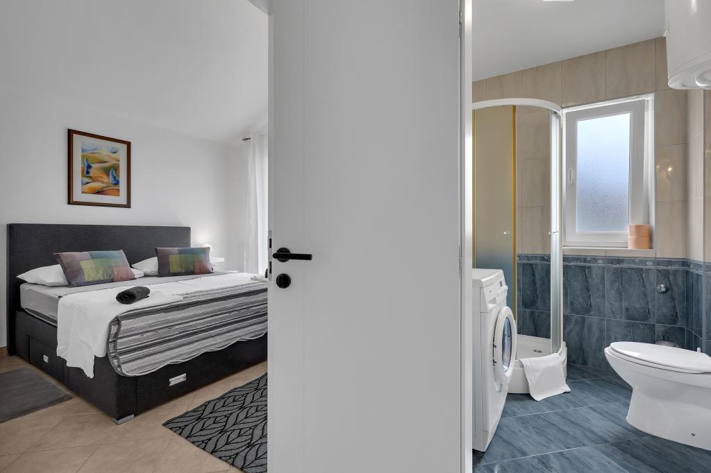 The apartment was very big and cozy with a perfect seaview from the balcony! Ana is also a super host who has asked us several times if we need something to bring us, but this wasn’t necessary, because the apartment includes everything- from dishes or a washing machine! Perfect stay - very near to the beach (3 min by foot) and 10 min to the centre within a (pre centre) walk which looks already like centre, with lots of restaurants, bars, playgrounds for children etc... Thanks, Samanta and Luka!
