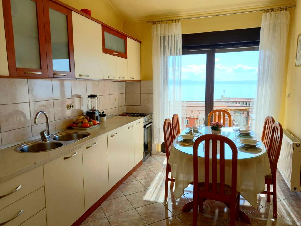 Great accommodation close to the beach. The center is a short walk away. The apartment is fully equipped, clean, with a magnificent view of the sea from the terrace. The owner lady is direct, friendly, always smiling. On the day of our arrival, a plate of fruit, soft drinks, mineral water and chilled sweets for the children awaited in the fridge. The next day we got homemade cake. Perfect accommodation in all respects. I can only recommend.