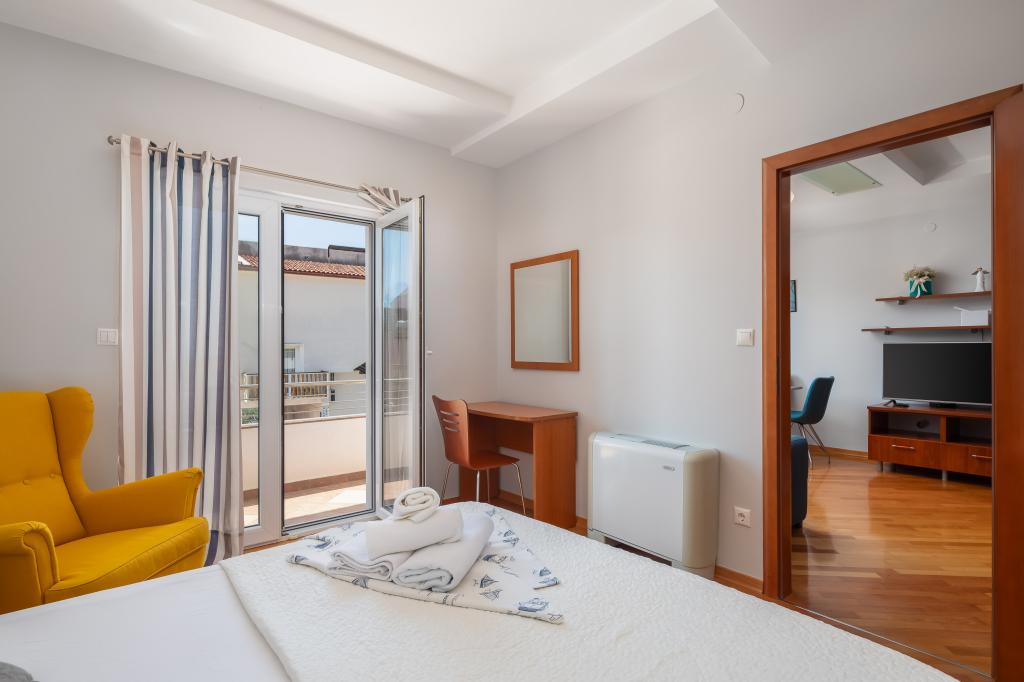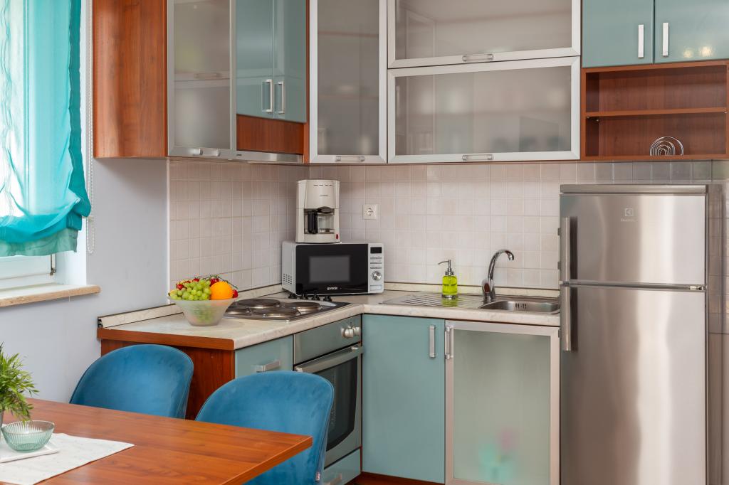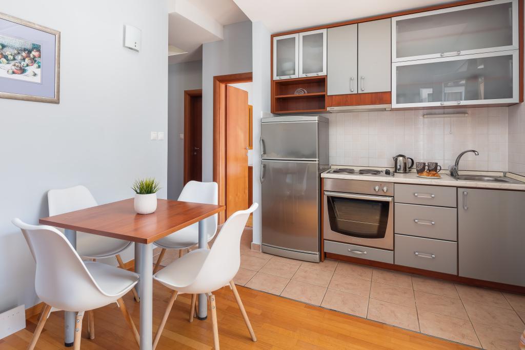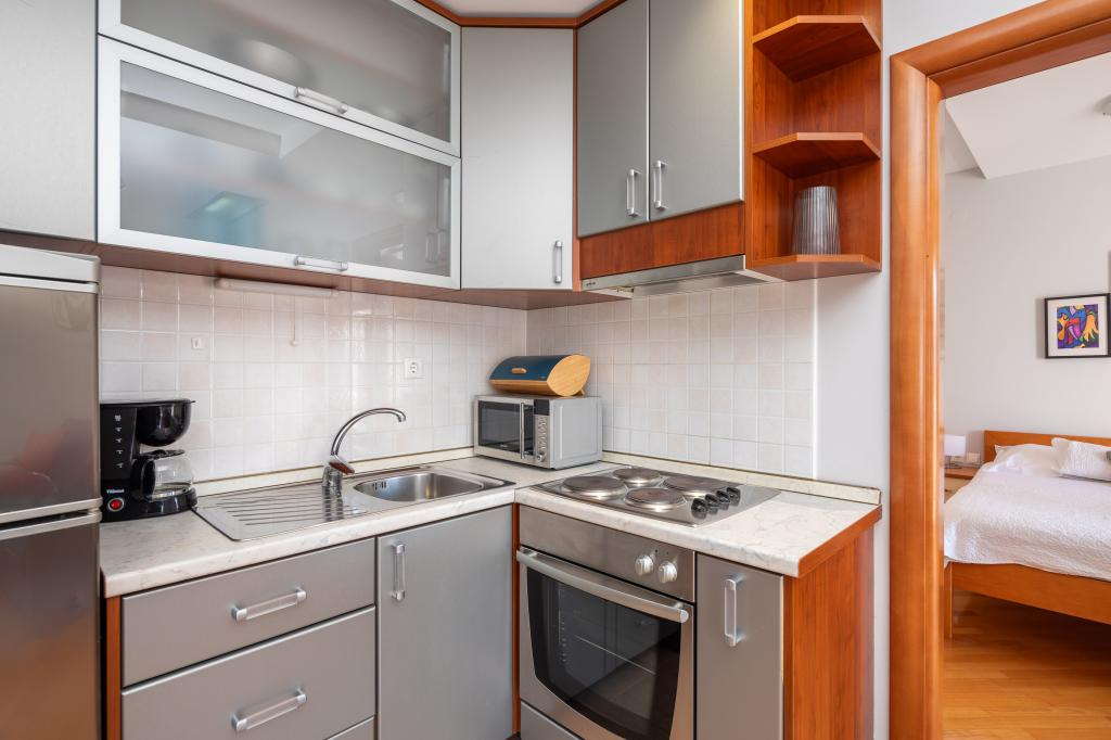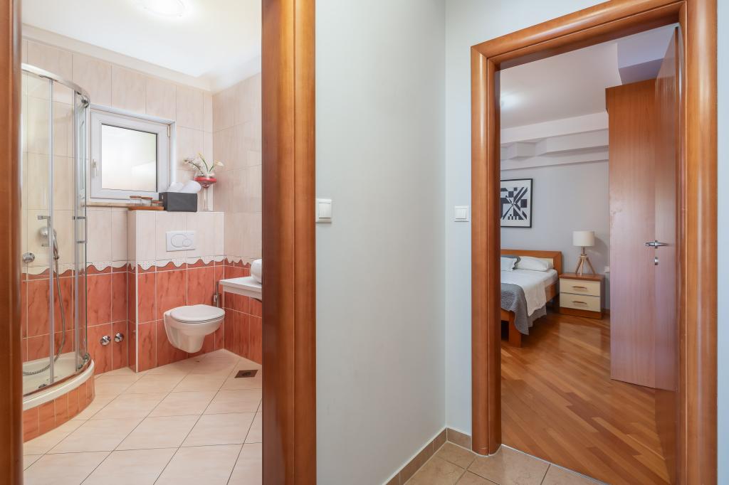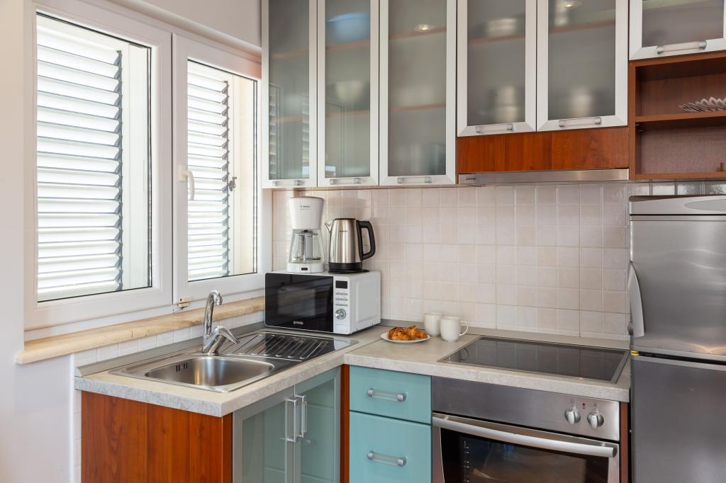 Apartments Brkić offer spacious family apartments with quality furniture. All apartments have a high-quality WiFi connection, are air-conditioned and come with a free parking space in front of the house. Our penthouse apartment offers a large terrace with a view of the sea and a fireplace for grilling and baking. On the ground floor of the building there is a common room where laundry can be done. Our staff is available for advice and assistance throughout your stay.
