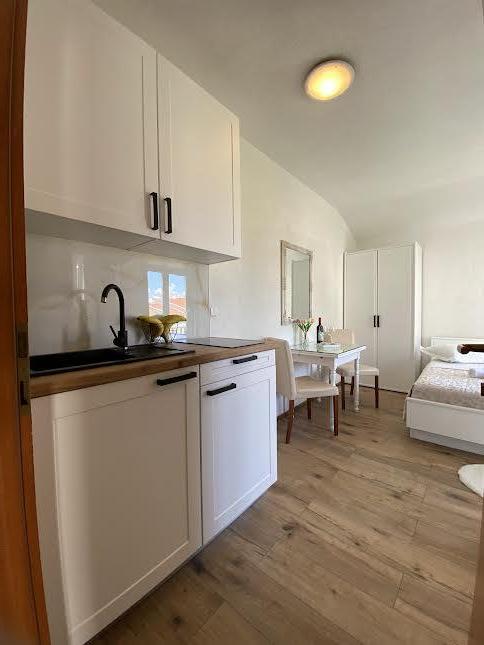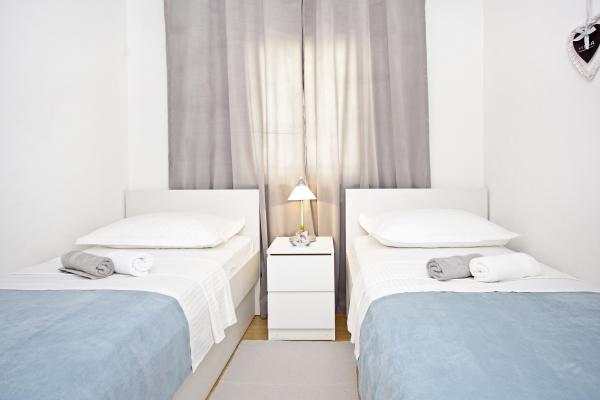 New furnished apartments are located in a family house situated max. 5 minutes walk from the city center and 5 minutes to the small beach, the main beach 10 minutes walk. Each apartment has a separate entrance, guests have access to a large barbecue and parking. A supermarket is located 40 m from the house.