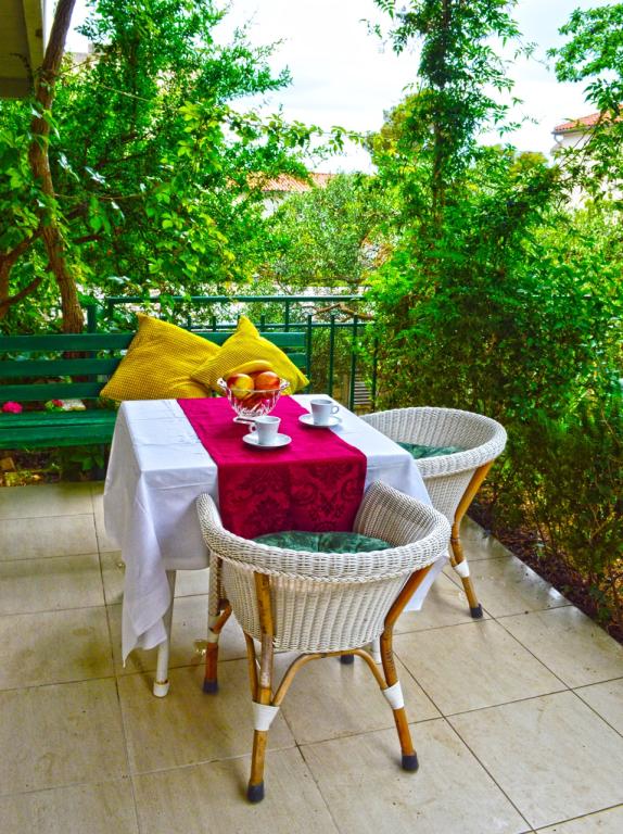 The house is located in a quiet part of town, in a small dead-end street with no noise. The yard is a gazebo with a grill and a table. Parking is provided in front of the house, and is included in the price. The building was away from the beach and 5 min walk from the main ferry reive and 10 min. Units are equipped with all necessary for your pleasant vacation. Bed linen is changed every 7 days and towels every 3 days.