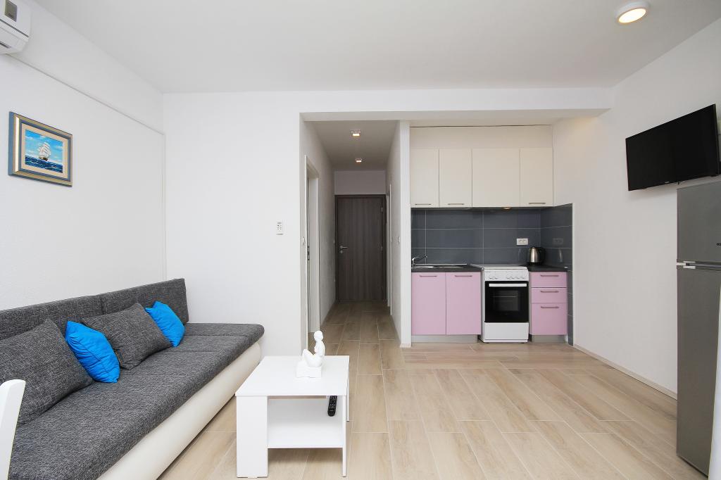 The apartment is located in a quiet part of the city, with free parking, 2 minutes' walk from the sea. All facilities are nearby, such as a market, market, restaurant, bakery, ATM, pharmacy.