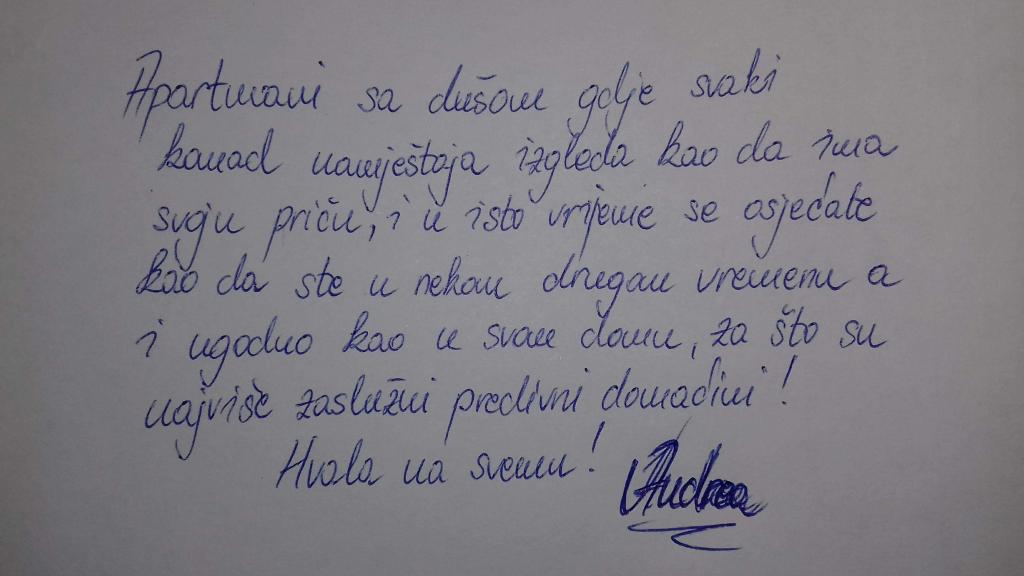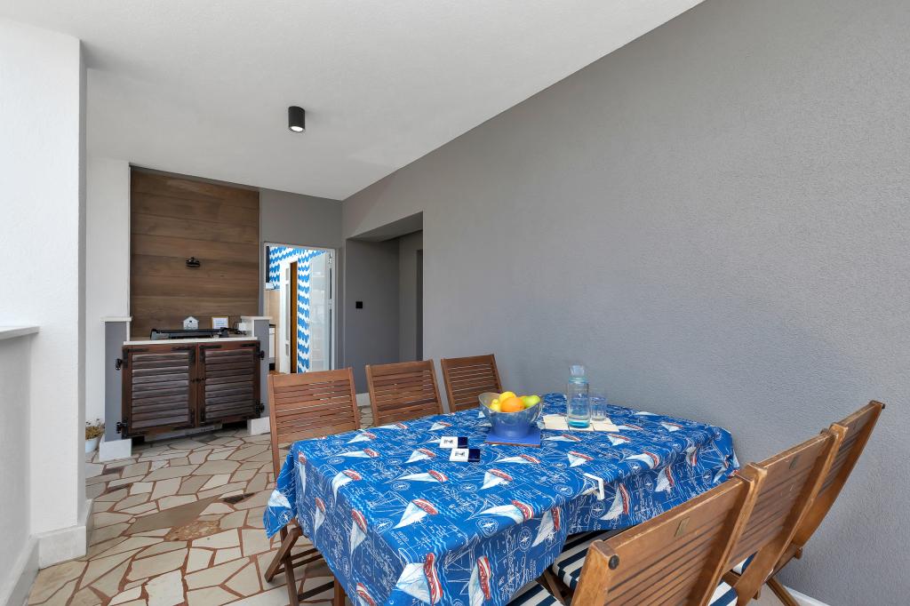 Stylish and comfortably furnished apartments near the old town, city center, port, sports center and natural beach. It is located 5 minutes walk from the city center and 5 minutes from the nearest beach in the forest park Osejava. Family tradition of renting apartments since 1968. The apartments are comfortable and spacious, modern and stylishly equipped. They offer views of the sea, islands and Mount Biokovo. Each apartment has a large terrace of 20 m2, with dining table and electric grill. Parking spaces for guests are provided in the yard of the house. Ideal and suitable for families with small children because we are located in a quiet part of town surrounded by greenery. Nearby are a doctor, pharmacy, market and market.