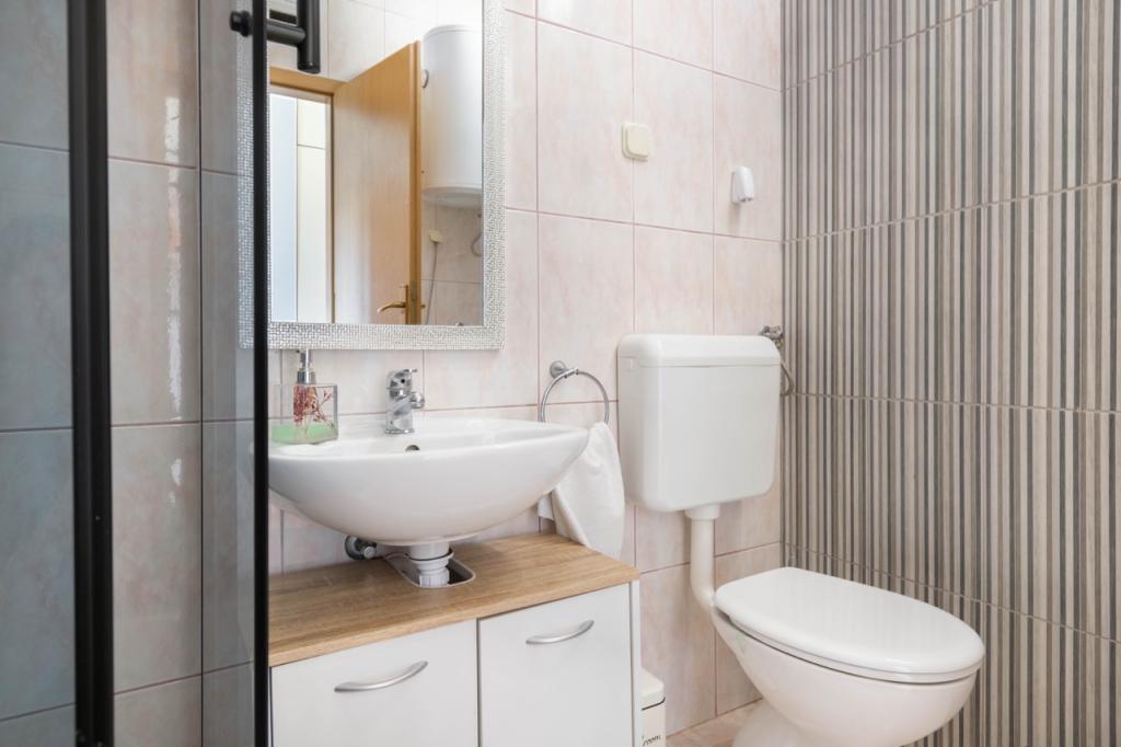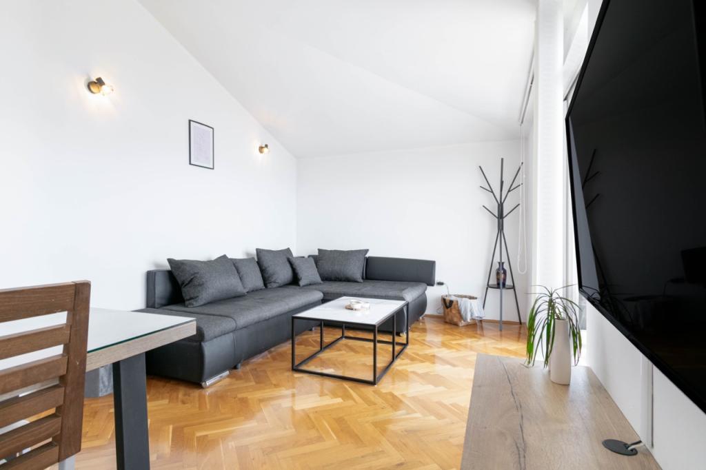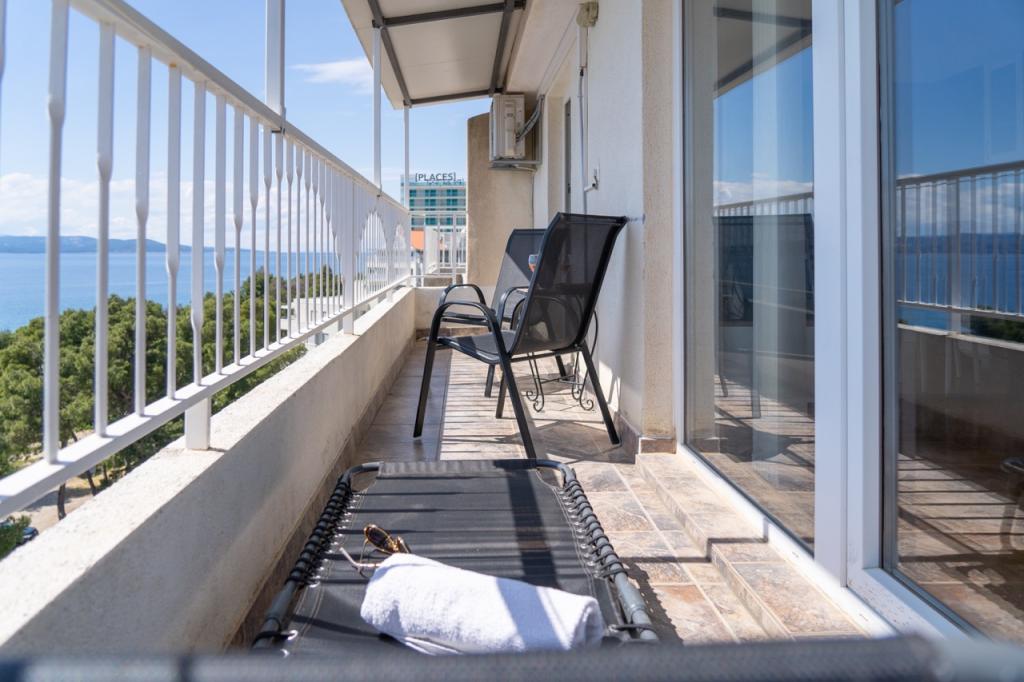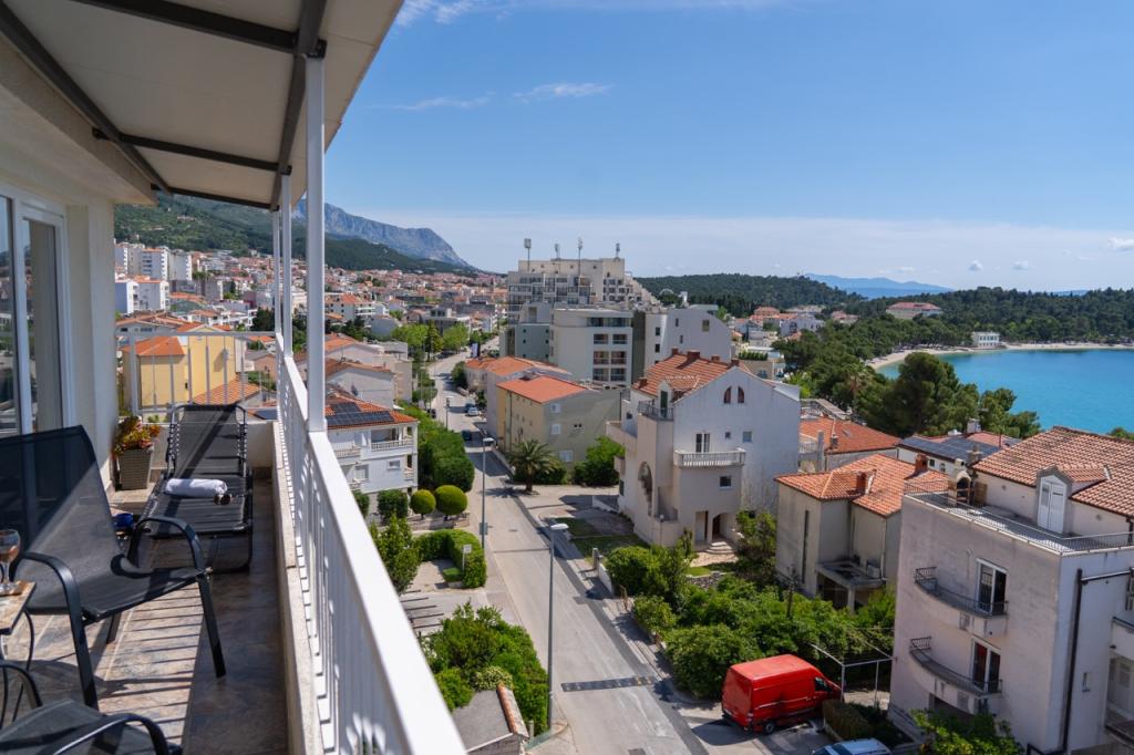 Apartment with sea view, charming apartment near the beach - This beautiful apartment is a great starting point for all activities with a strategic location in Makarska. Due to its convenient location, you won't need a car during your stay. The charming and modern apartment is located on the main beach in Makarska, only 40 meters away. The apartment is suitable for 4 people. It has 1 bedroom with 1 double bed and a sofa bed in the living room. The price of the apartment includes: own parking space (free parking space with a ramp in front of the building), unlimited internet, air conditioning, TV, towels, bed linen, kitchen with all the necessary facilities... The apartment is located right on the beach, only steps separate you from her. It has the best view of the sea and the islands, because it is located on the top floor of the building. On offer in the same building is A2+2 Marija top floor sea view and a studio apartment (for the studio apartment also free parking - but only 300 meters from the building on the beach).