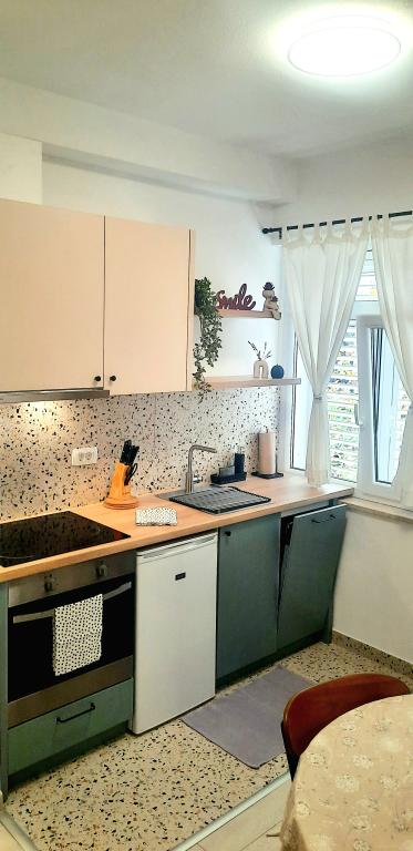 Extremely nice and very clean apartment, equipped with everything necessary for a comfortable stay for two people, including a baby or small child. The rooms are exactly as shown in the announcements. The double bed is large enough and very comfortable with a quality mattress, the kitchen has everything for those who want to cook on vacation, even a dishcloth. Parking is provided in the yard. The location is quiet. The beach, cafes, restaurants are about fifty meters away, the waterfront and shops are also close. Everything for five, and the crowning glory of all this is the hosts Martina and Ante, a wonderful married couple, who welcomed us as if we had known each other for a long time. Martina is always available if you need anything. She selflessly provides all the information, loves to communicate with people, in fact it is clear that she puts a lot of effort and love into making sure that every guest returns home with great satisfaction. Martina, thank you for that huge piece of your cake and the "first aid" provided for an injury. Oh, and I must also mention a beautiful, cuddly cat Peru, the apartment mascot.