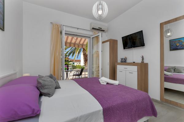 Apartments Martina offer a pleasant vacation in a family house 50 m from the city beach and only 300 m from the city center in a peaceful and green environment. The apartment is fully equipped with the possibility of using a grill in the courtyard of the house, from which guests are happy to take home a sprig of rosemary and laurel as a memory of a warm, fragrant summer. Each apartment has its own parking lot, which can be used freely in the courtyard of the house, and is located under the green vines that provide natural shade. It will be our pleasure to host you in our apartments and try to fulfill all your expectations.