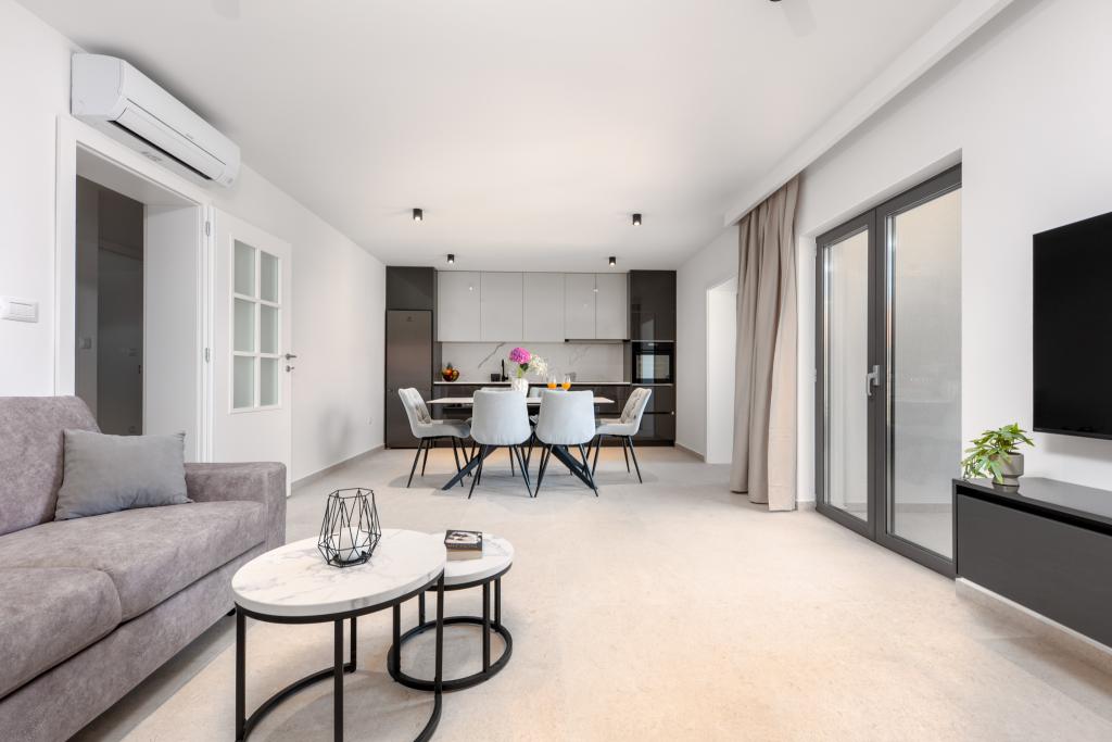 Maslina Apartments offer modernly decorated and spacious apartments in a quiet part of Makarska, ideal for couples, families and smaller groups. The accommodation is located in a quiet location, away from the city crowds, but close enough to easily explore everything Makarska has to offer. All apartments are fully equipped – kitchen, air conditioning, free Wi-Fi – and private parking is also provided. We offer several units, so we can easily adapt to your needs. If you are looking for a comfortable vacation with good connections to the beach and the center, but without the noise and crowds – Maslina Apartments is the right choice for you!