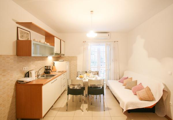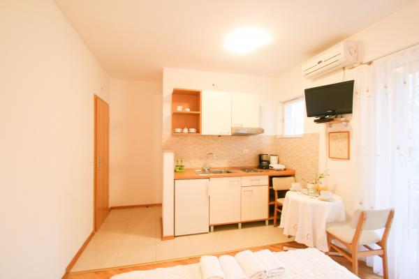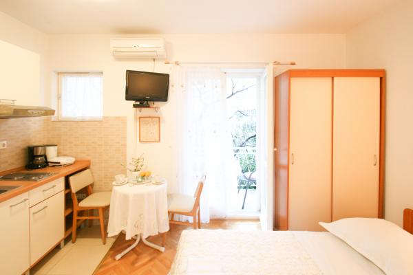 Family house with apartments is situated in a quiet residential area of Makarska, near the sandy beach and the hotel Dalmatia and Biokovka. Distance from the city center is 10 min walks by the sea. The apartments are modern and well equipped. All units have large balconies in the green. Parking is available.