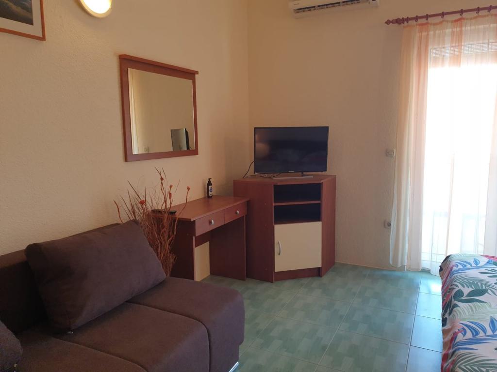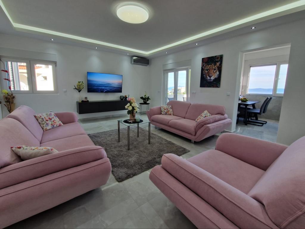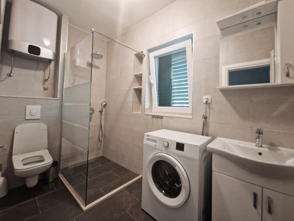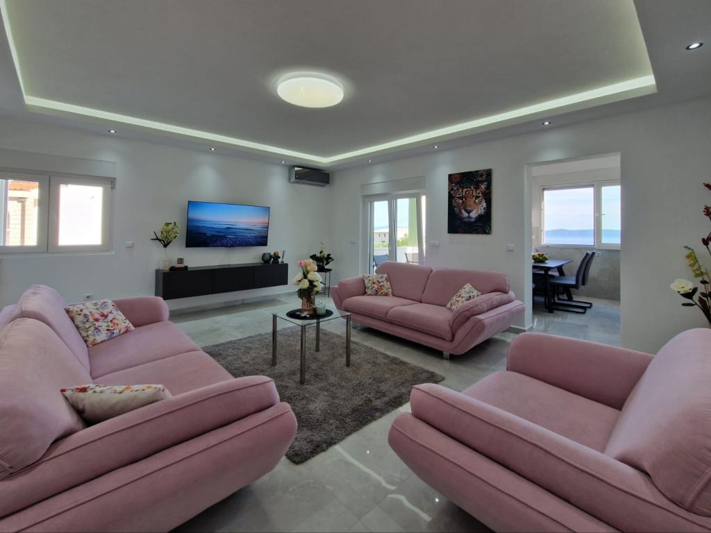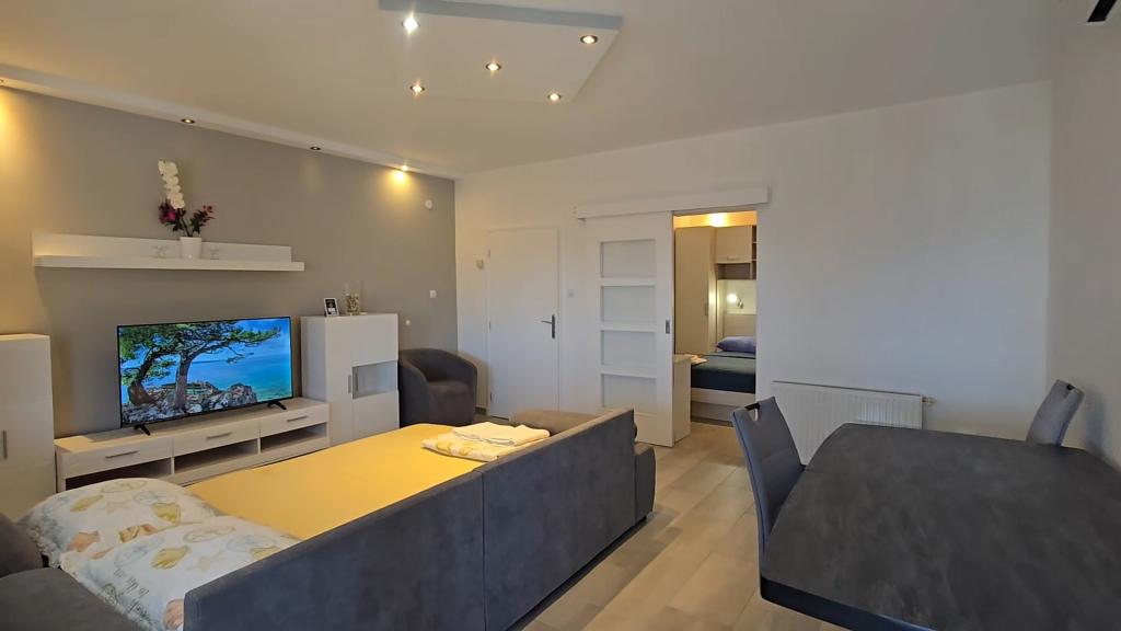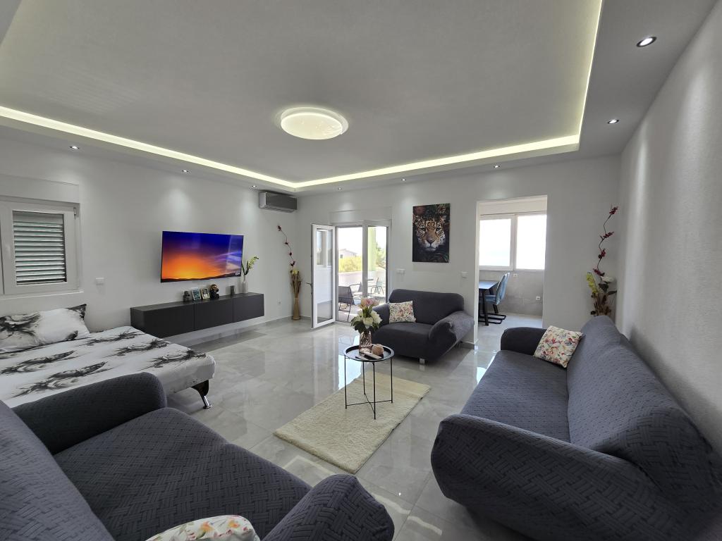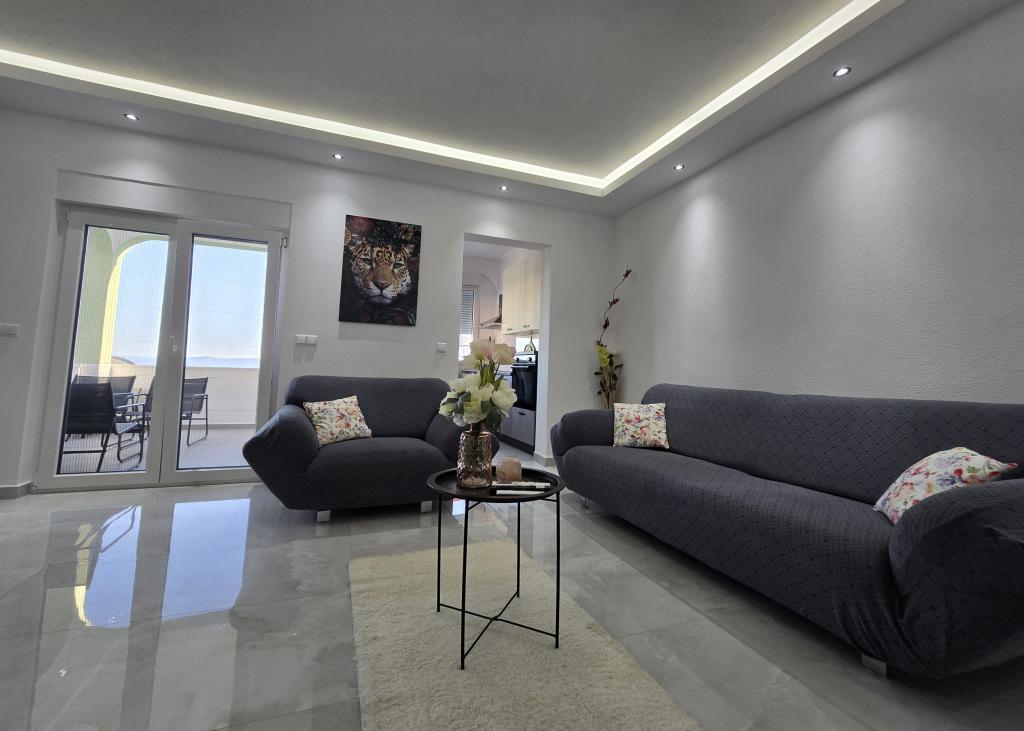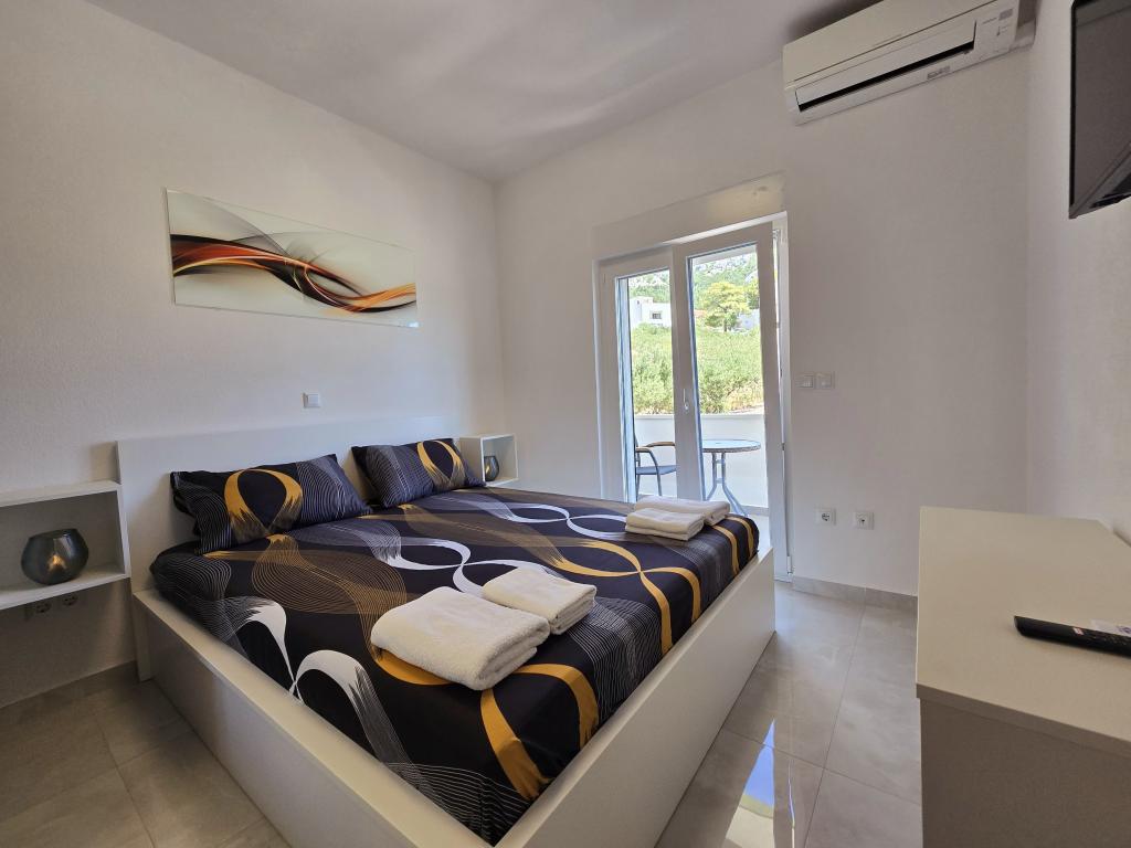 We offer several apartments and studio apartments. Apartments and studio apartments are double, triple and quadruple. Each apartment and studio apartment has air conditioning, balcony, fully equipped kitchen, bathroom, TV and Wi-Fi. Prices start from €35 per person and depend on the apartment chosen. Advantage: proximity to the most beautiful beaches on the Makarska Riviera, without entering the city crowds. All the most beautiful beaches are located right below us and you don't even need a 2-minute car ride to get to them. We are located about 1 km from the first and one of the most beautiful beaches in Makarska It takes about 2 minutes by car. Below us are some of the cleanest and most beautiful beaches in Makarska Beaches nearby: Buba beach Biloševac beach ️ Cubano Beach ️ Cvitačka beach ️ We are about 300 m from the first shop, butcher shop and cafe 100m from the first restaurant. Guests are provided with free parking right in front of the house
