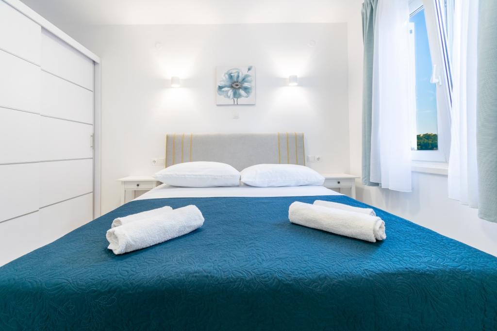 We offer you three apartments in THREE DIFFERENT LOCATIONS. All apartments are air-conditioned, wi-fi. - THE FIRST APARTMENT SEA VIEW (4+1) ID:14915 is located in the city center at Gradišćanskih Hrvata Street 14, 300 m from the beach. It consists of two bedrooms, a bathroom, a fully equipped kitchen and a living room with a terrace that offers a beautiful view of the sea and islands. The apartment has its own parking space. - THE SECOND APARTMENT EASY (4+1) ID:63248 is located in the city center at Kralja Petra Krešimira IV Street 7b, 70 m from the beach. The apartment consists of two bedrooms, a bathroom, a kitchen, a living room. The apartment is located on the high ground floor. In the immediate vicinity there are shops, a pharmacy, a bank, restaurants. Parking for cars. -THIRD APARTMENT BLUE (3+1) ID: 77271 is located in Zrinsko-frankopanska Street 39, 500 m from the city center and the first beach. It consists of one bedroom, living room, fully equipped kitchen, bathroom and balcony. Parking space in front of the building. Nearby are shops, cafes