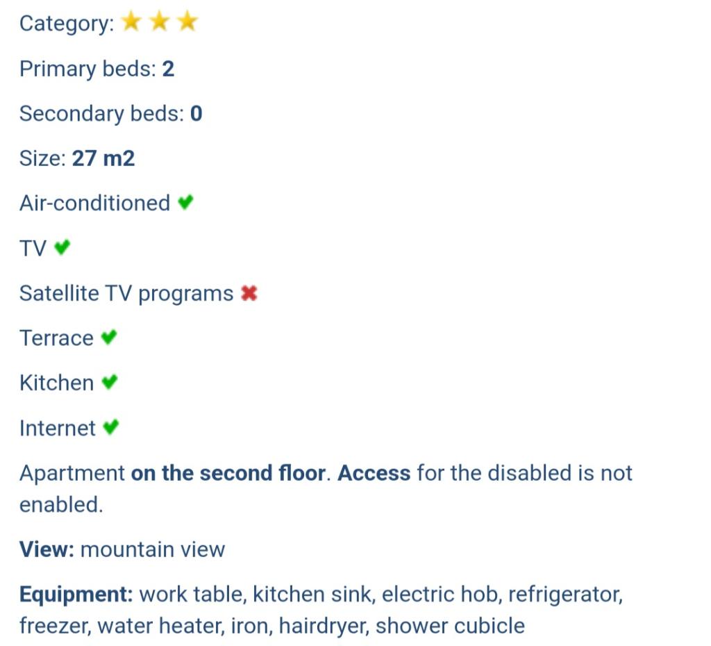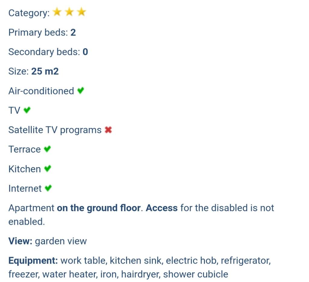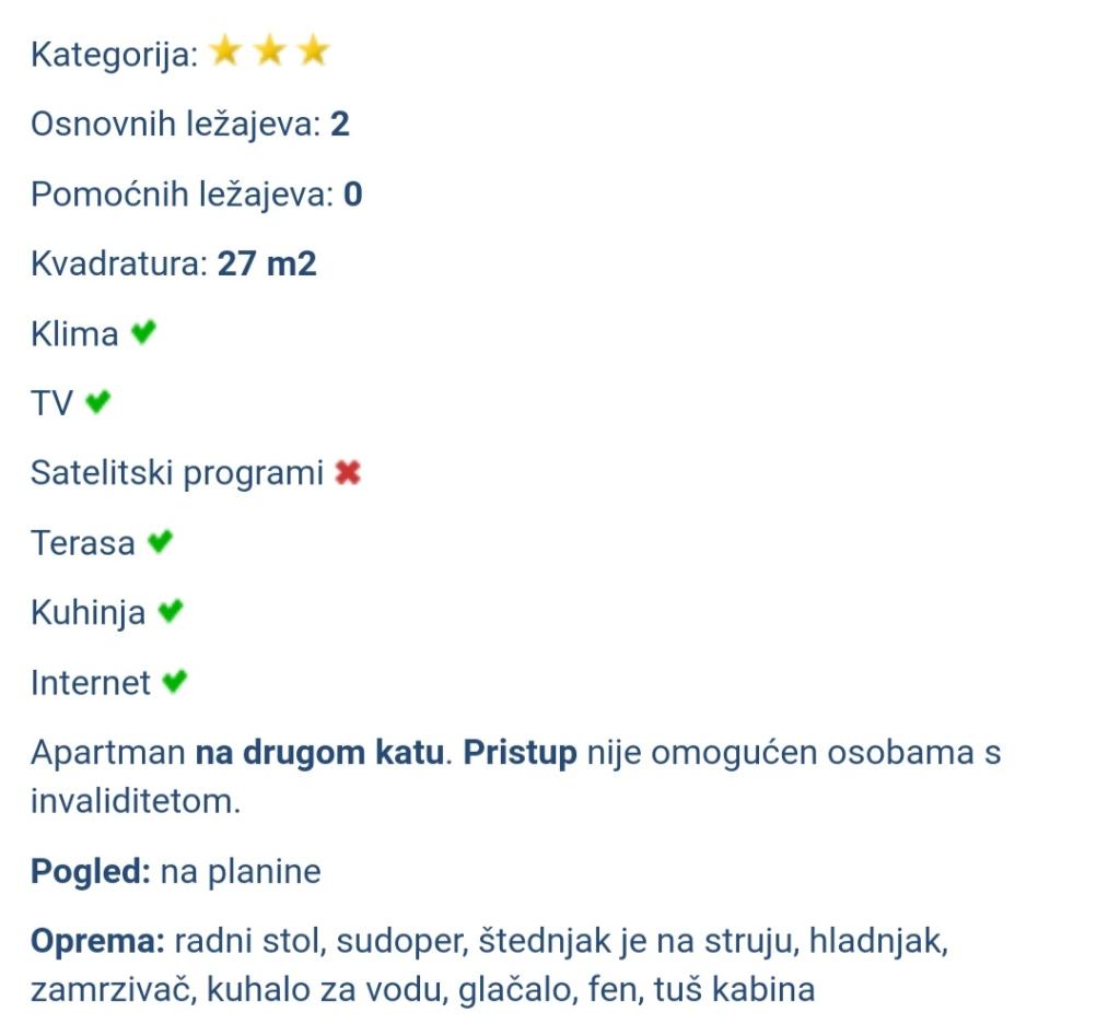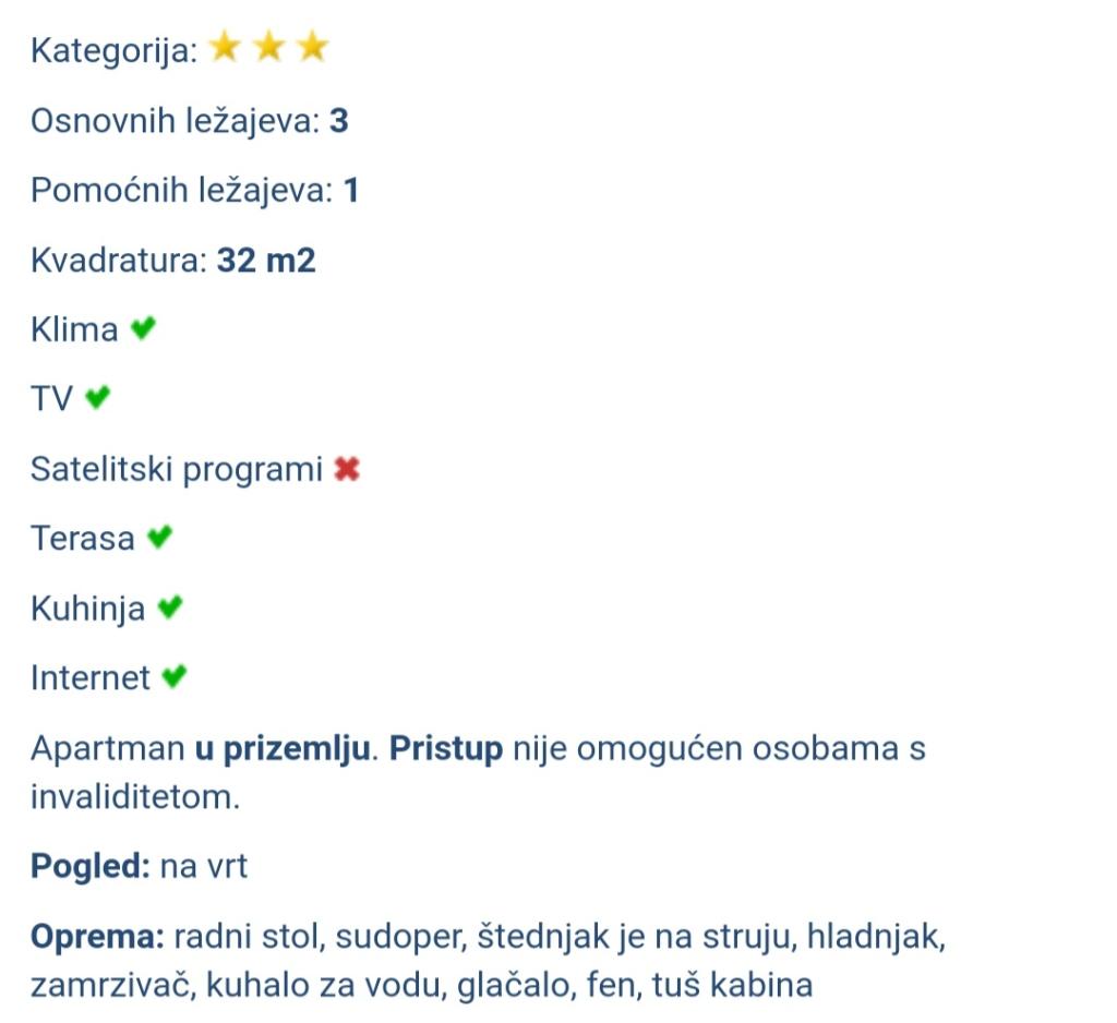 We stayed in the apartment together with the children. It is extremely clean, the housekeepers are extremely accommodating and professional. The apartments have their own free parking, nearby there is a fruit stand, several shops, a pharmacy, a bakery, a restaurant. A 5-minute easy walk to the city beach with a few steps, and minimal uphill if you take the detour. The apartment looks like in the pictures. Since it is very close to the main road, if you don't close the windows, you can hear the cars. At the end, we also received brandy as a gift. All recommendations!