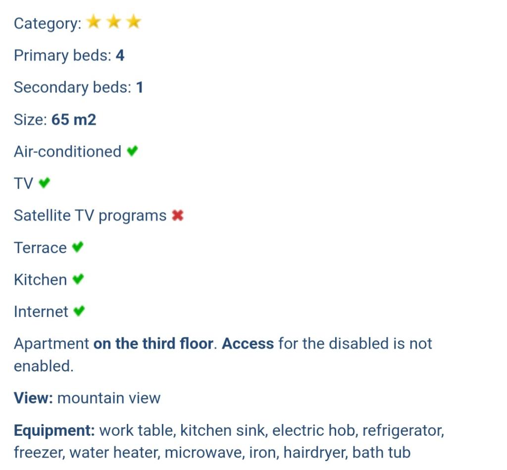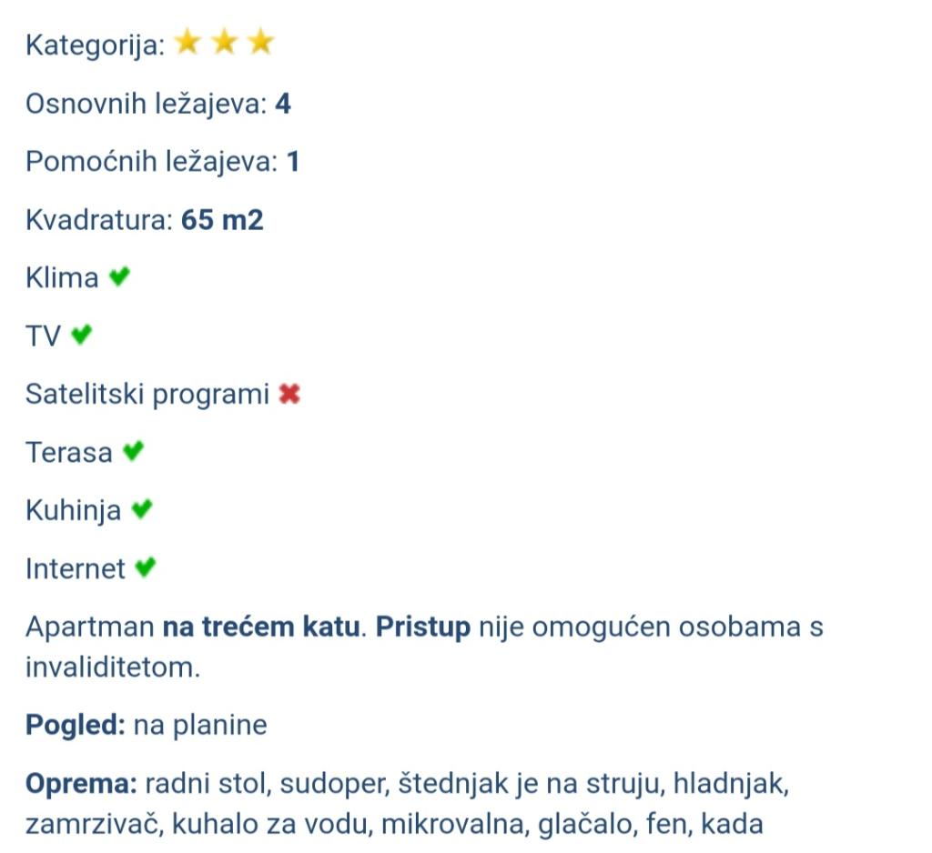 Read more Accommodation unitsIn order to make an accommodation reservation, advance payment in the amount of one to three nights is required. The rest of the amount is paid in cash upon arrival. The entrance to the apartment is from 14:00, and the exit from the apartment is until 09:00. House rules from 10:00 p.m. to 8:00 a.m. There is a possibility of agreement for all of the above. All apartments are cleaned before your arrival. Please keep the apartment clean during your stay and follow the house rules. Thank you for your understanding.