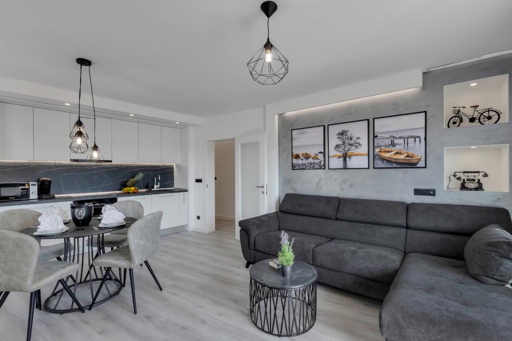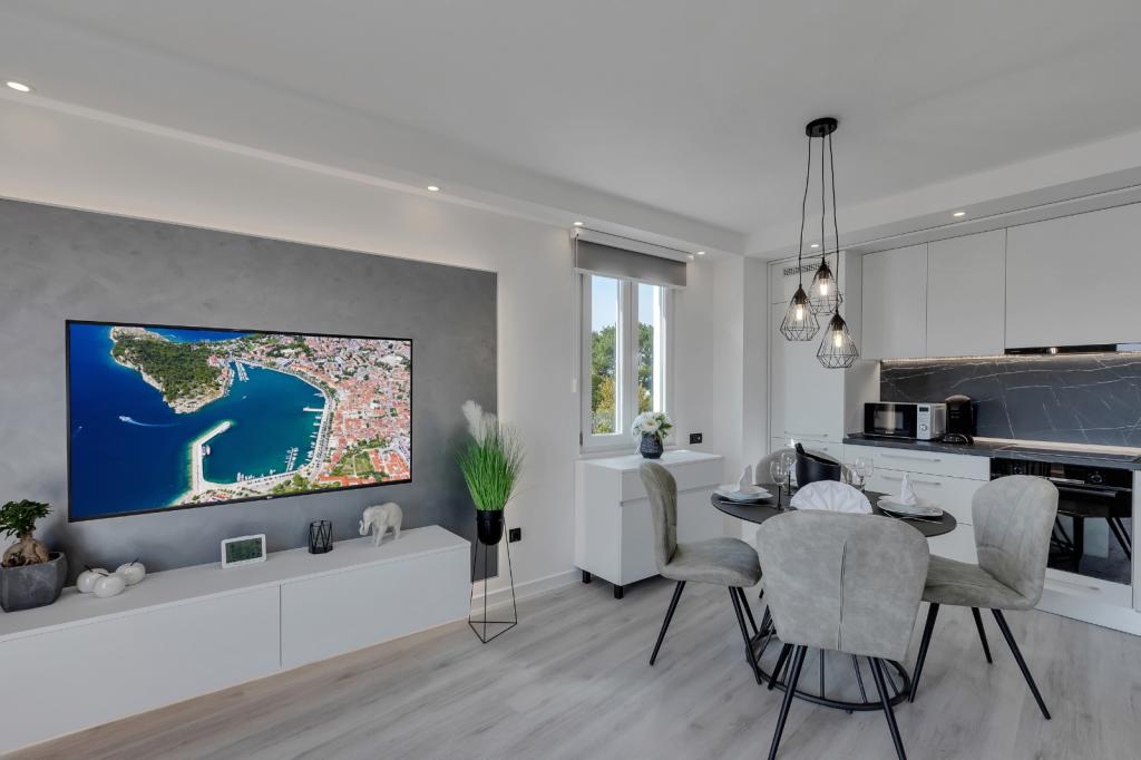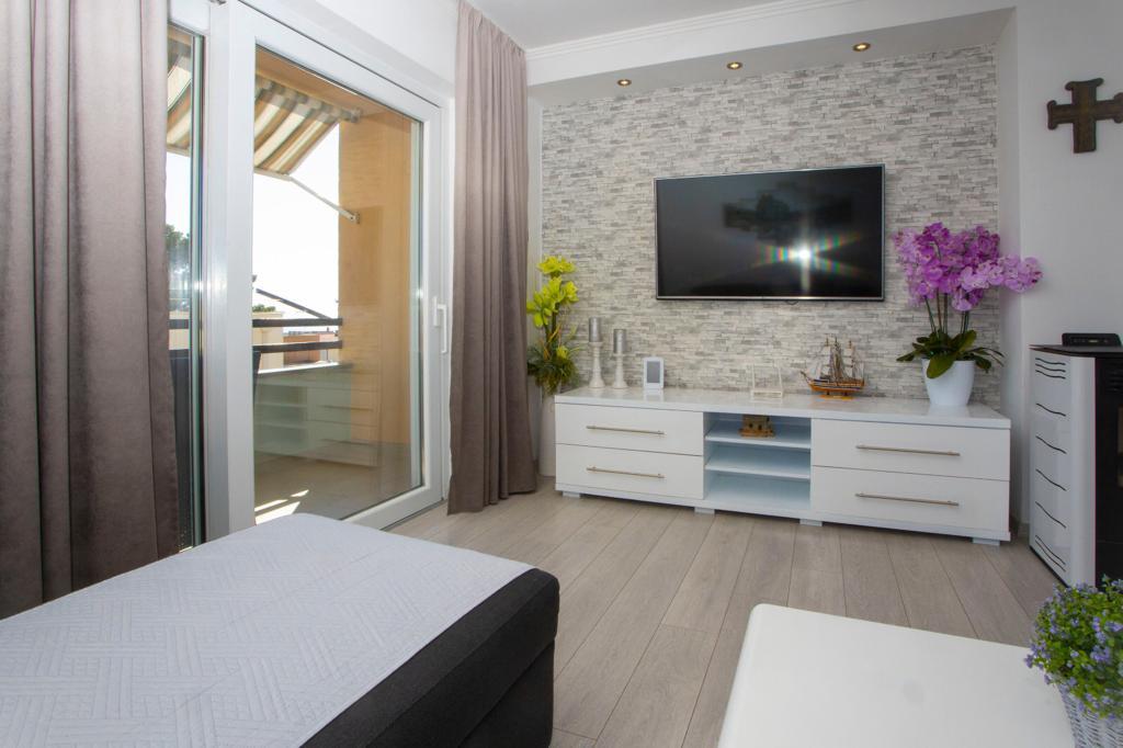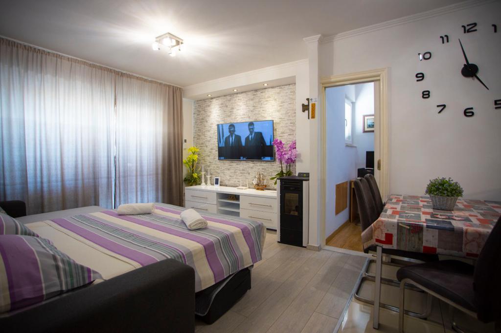 Complete, luxurious apartment of 80m2 on the 2nd floor of a detached building with parking, apartment consists of 3 bedrooms bedrooms 2 bathrooms kitchen, living room with access to balkon.Apartman is equipped with a dishwasher, washing machine, large fližderom with freezer, oven, microwave oven, coffee machine, 2 LCD TV, DVD, satellite with the 3000 program, a computer with free internet, air conditioning ,, the apartment can accomodate a maximum of 8 osoba.Apartman located in the eastern part of the town 400 m from the beach Osejava and the city center, 200 m from the Sports Centre and the supermarket Lidl, 4oo in the quiet part of .5 minute walk from downtown and 10 minutes walk to the beach