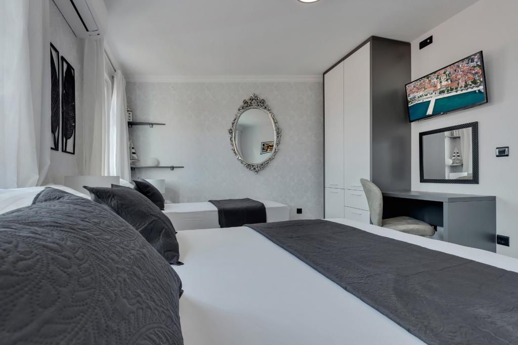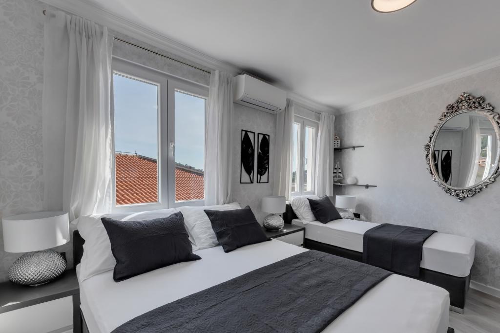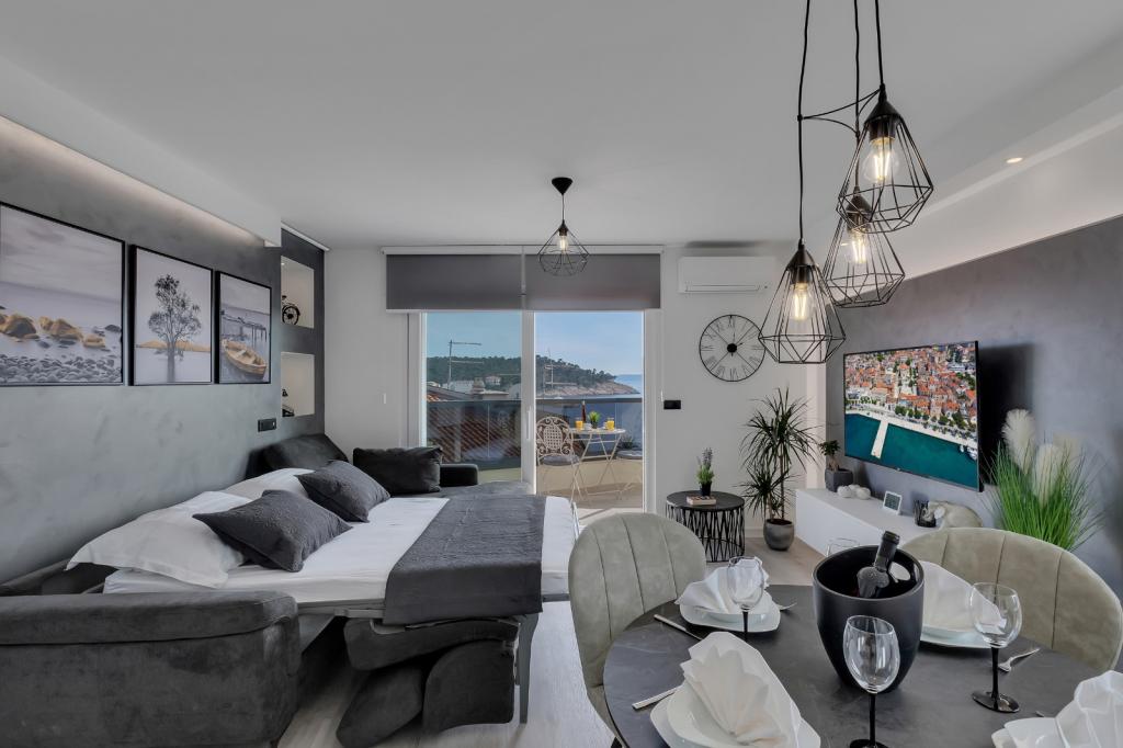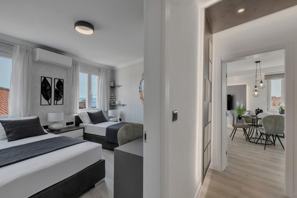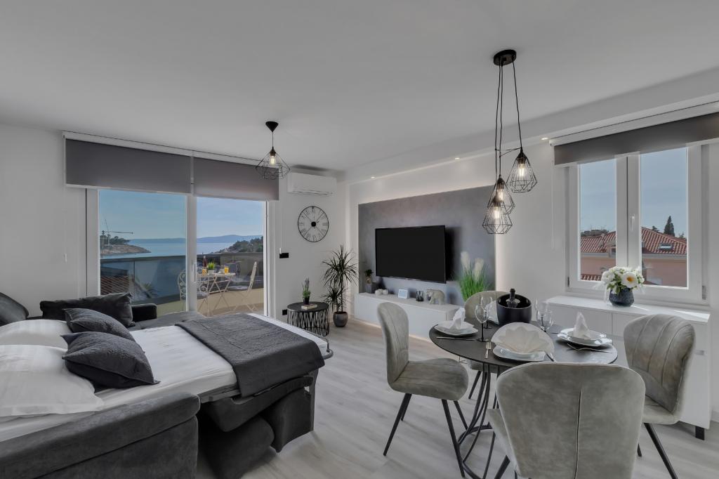 Complete, luxurious apartment of 80m2 on the 2nd floor of a detached building with parking, apartment consists of 3 bedrooms bedrooms 2 bathrooms kitchen, living room with access to balkon.Apartman is equipped with a dishwasher, washing machine, large fližderom with freezer, oven, microwave oven, coffee machine, 2 LCD TV, DVD, satellite with the 3000 program, a computer with free internet, air conditioning ,, the apartment can accomodate a maximum of 8 osoba.Apartman located in the eastern part of the town 400 m from the beach Osejava and the city center, 200 m from the Sports Centre and the supermarket Lidl, 4oo in the quiet part of .5 minute walk from downtown and 10 minutes walk to the beach
