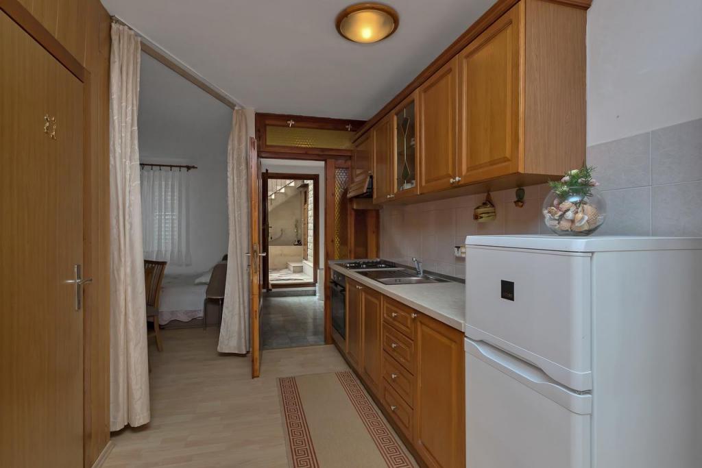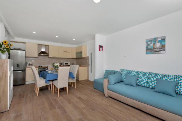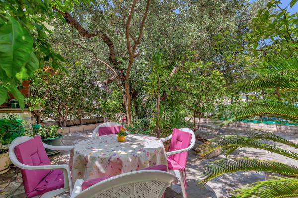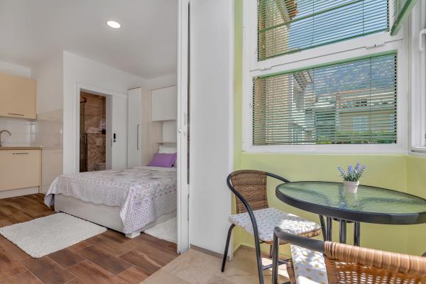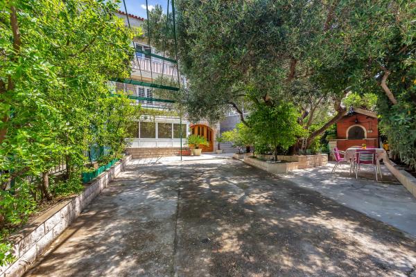 Just a minute walk to the beach! The first apartment is the "4+2 apartment" (ID: 58865), for 4 people with the possibility of an extra bed for two more. Total area 85 m2 with two bedrooms, a large living room with kitchen, two bathrooms and an additional toilet. The apartment has its own balcony with a sea view. The second is on the same floor Studio "Up!" (ID: 58866) for two people with a private terrace for two. The third "3+2 apartment" (ID: 63762) of 65 m2 offers accommodation on the ground floor for up to 5 people, and the fourth Studio "Olive Tree" (ID: 65589) for two people also on the ground floor of the house.