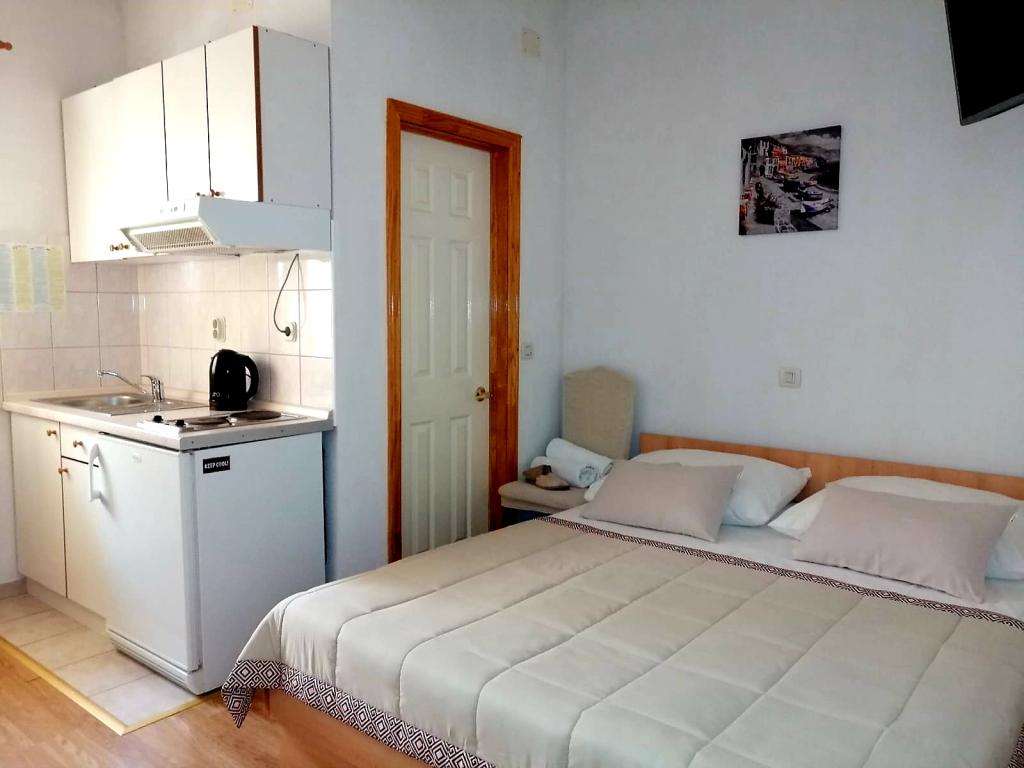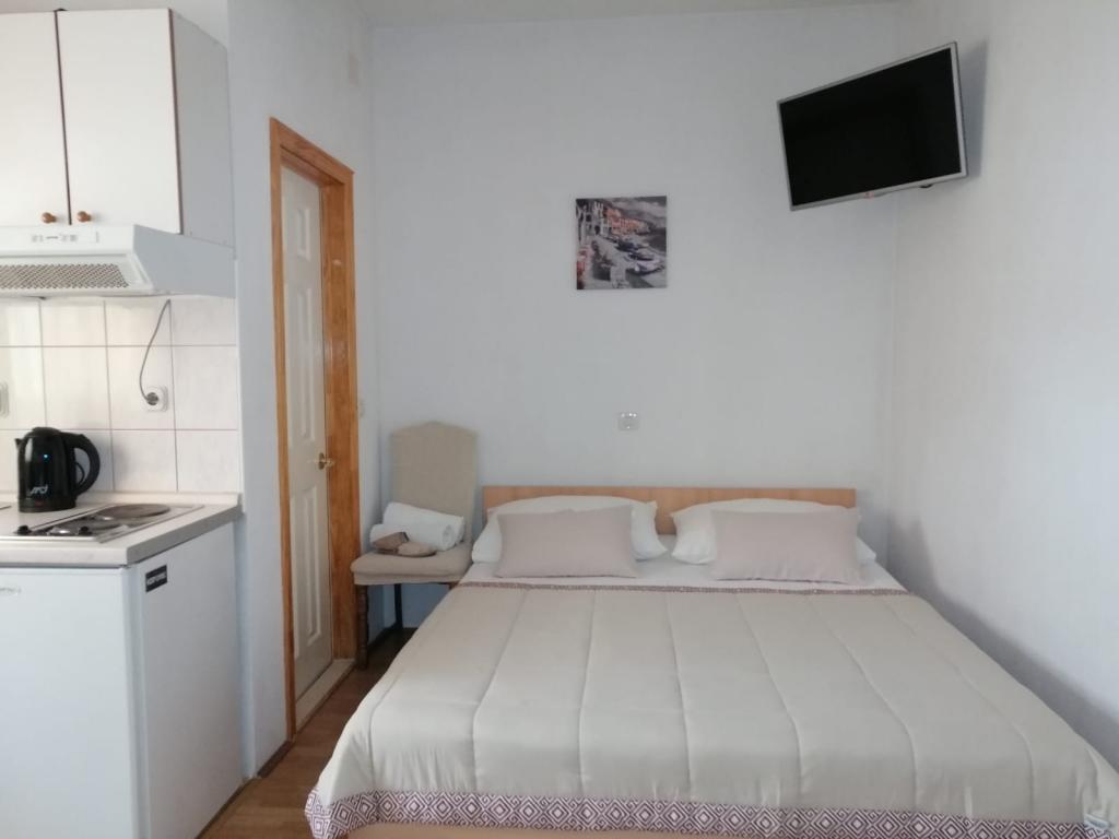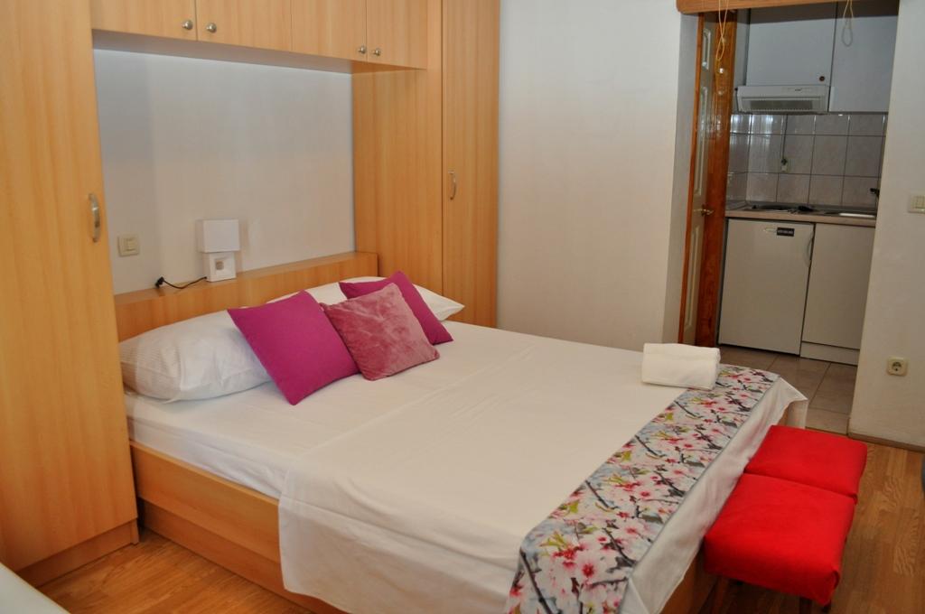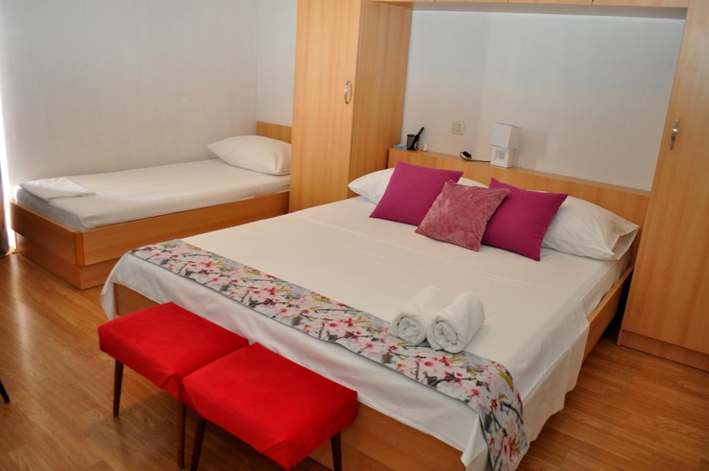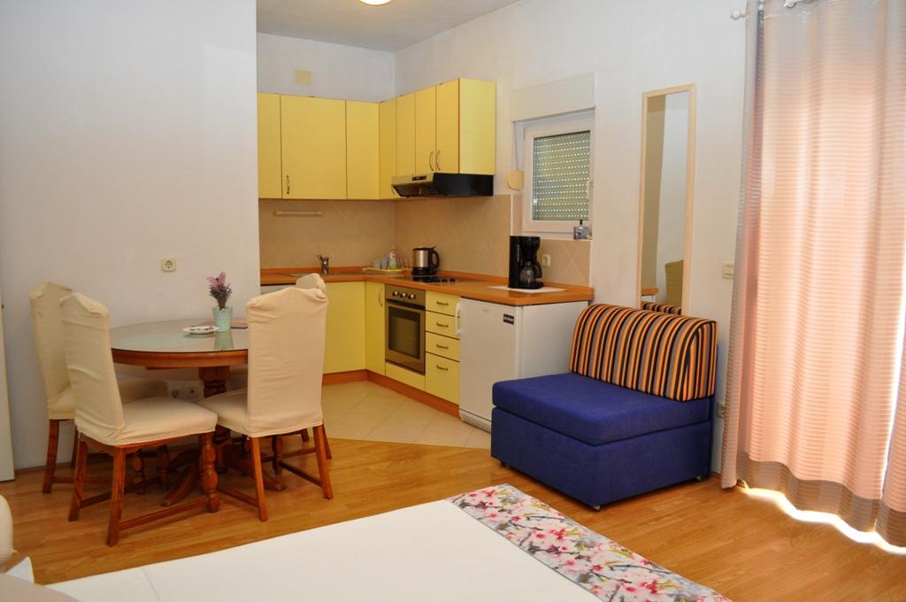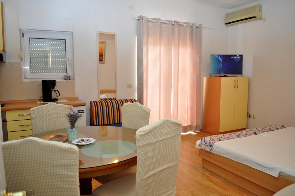 Veselko Apartments are located in a quiet part of Makarska, in the Zelenka area. On the second floor of the family house we have 4 accommodation units (2 southern with a balcony and a sea view, 1 northern with a balcony and a mountain view and j1 northern with a terrace and a view of the Biokovo mountain and partly the sea). Everything is fully equipped: double beds (+additional 200x90 cm) mini kitchen, bathroom, air conditioning, smart TV + satellite TV, internet. Free parking for all guests, located behind the house. Only 8 minutes to the beach and 15-20 minutes walk to the center.