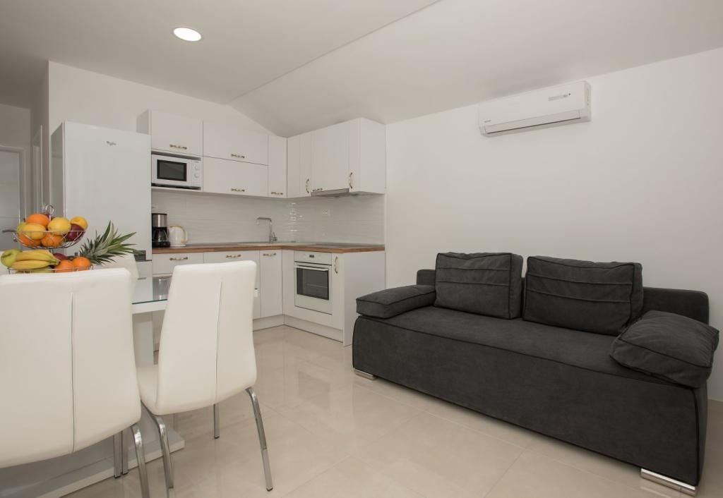 Villa Branka is a charming house with five separate accommodation units, ideal for a relaxing holiday in nature. Surrounded by greenery and situated in a unique location with a view of the Adriatic Sea on one side and the magnificent Biokovo mountain on the other. It is located in an exceptionally quiet part of the Makarska Riviera, on a gentle hill, away from the tourist crowds and noise - perfect for complete relaxation and privacy. At the same time, the villa is only a 2-minute drive from the beach and a 5-minute drive from the center of Makarska, a picturesque tourist town with a rich offer of facilities, restaurants and beautiful beaches. The perfect combination of peace, nature and proximity to all important amenities.