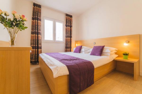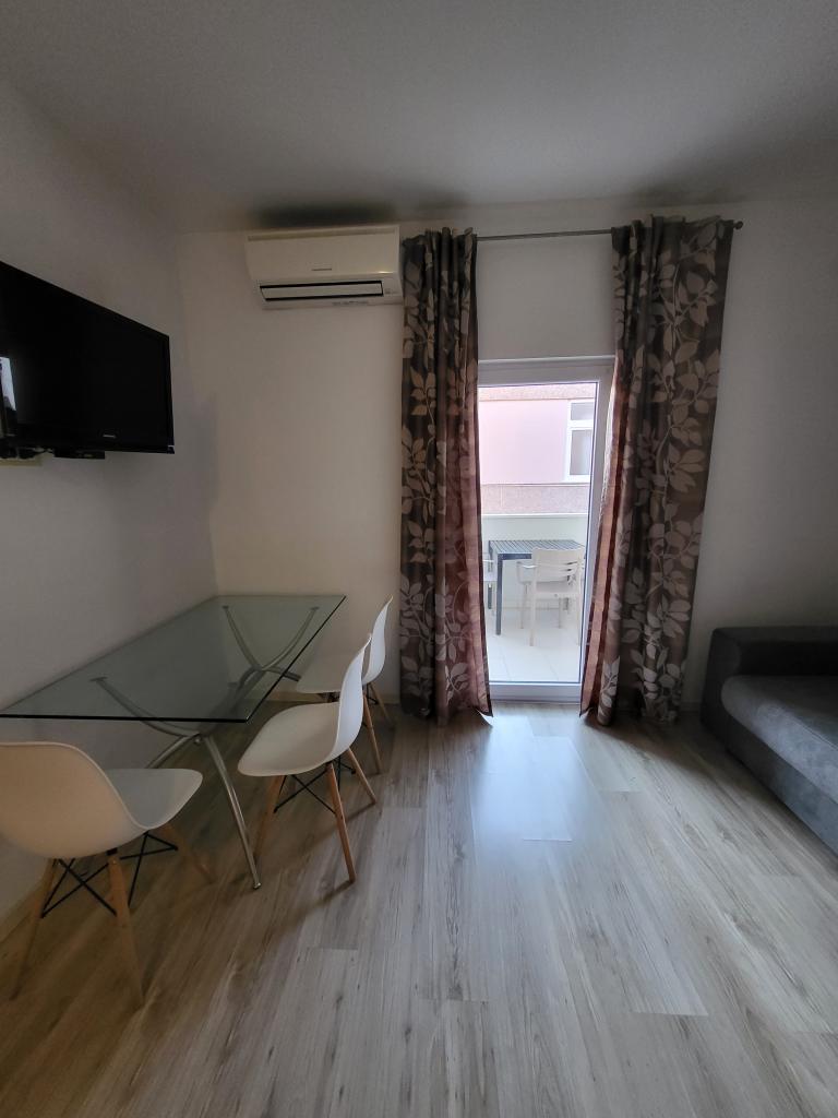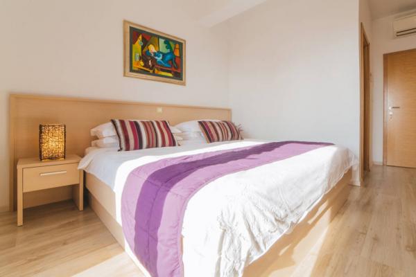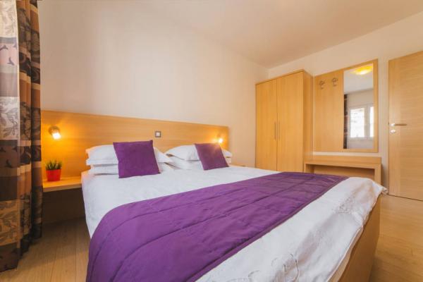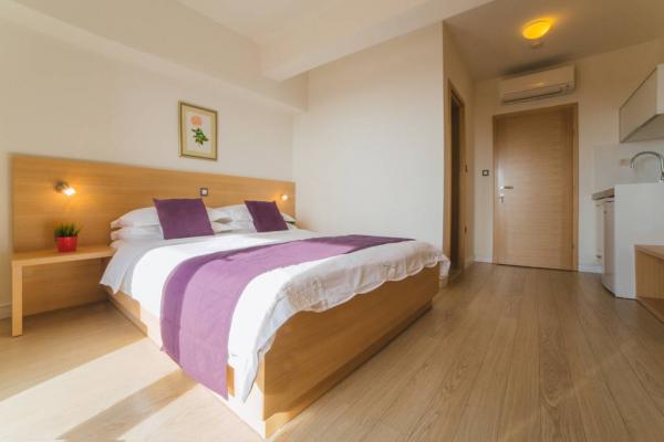 We were here in June 2023. 2 adults and 1 child (1.5 years). We stayed in a studio with an extra bed. The owner Ivana is great and very nice, she immediately brought us a cot upon request. The apartments are clean and new, everything you need is available. You can't even hear the noise from the adjoining rooms. We slept very well. 2 minutes from the apartments are 2 bakeries open non-stop, groceries about 10 minutes on foot. It is about 300 meters down the hill to the beach. We would easily come back again. We were very satisfied.