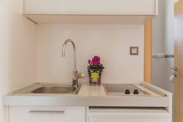 The impression after stay: great. Zero problems. The studio completely enough for my family 2 + 2 (2 years old and 6 years old). Much of the time spent on the beach because the size of the room did not matter to us. To the sea actually 200 meters downhill, small pebbles, sea urchins almost invisible. Out of habit in handy to a microwave oven or kettle. Decent price. Recommended