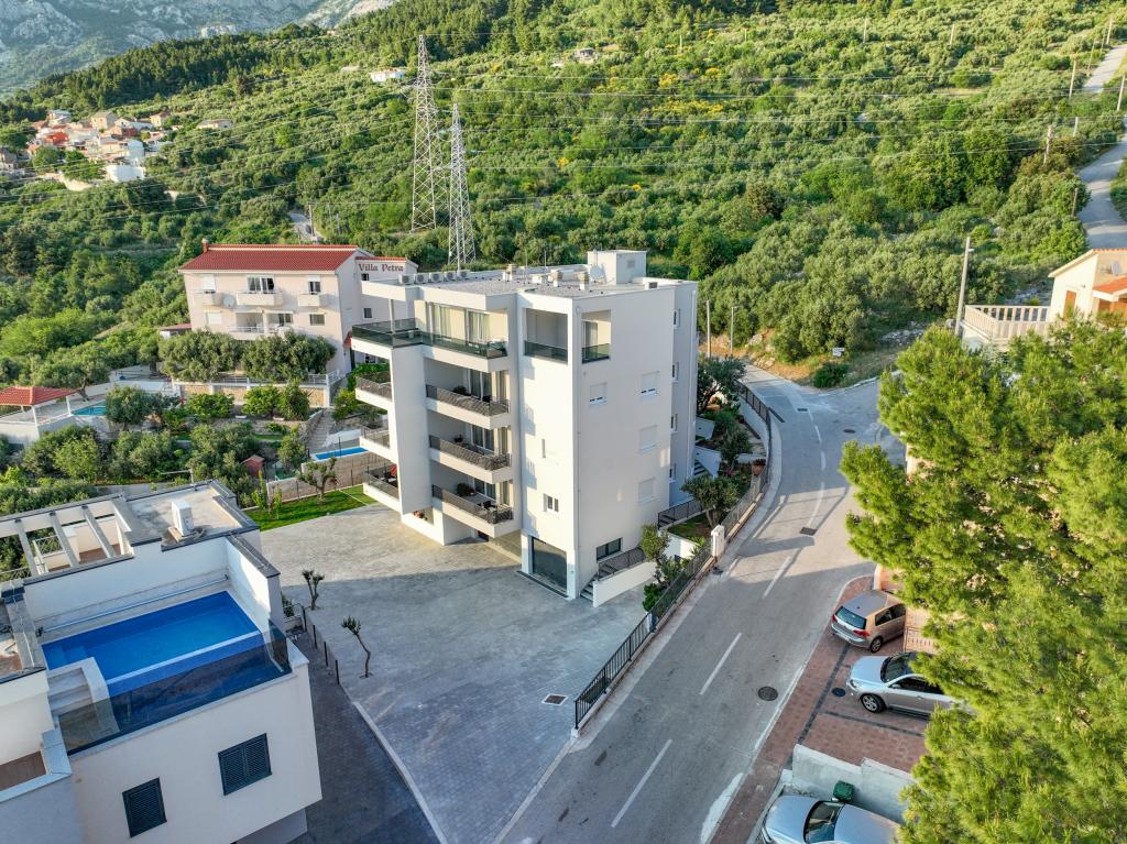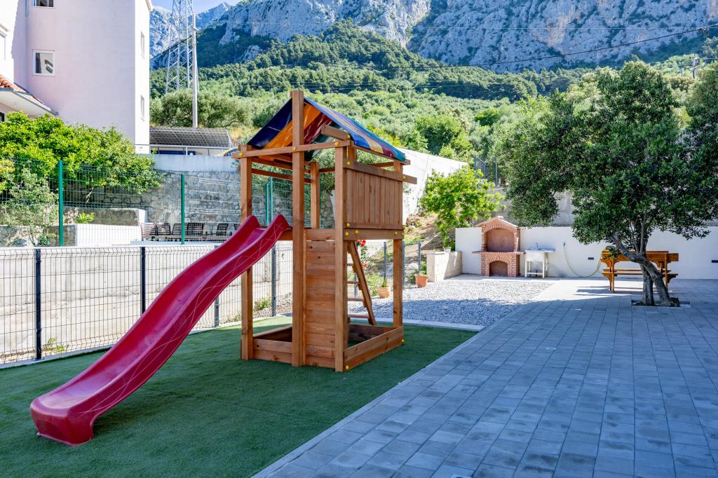 Apartments Villa Frane are located in Makarska, in a quiet and well-maintained neighborhood located on a gentle hill above the city. They are only a 10-minute easy walk from the picturesque city center, which makes the location perfectly balanced - quiet enough to relax, yet close to all the amenities that Makarska has to offer. Free parking near the beach is included in the rental price! Welcome to modern and fully equipped two-bedroom apartments, ideal for families, couples or friends who want comfortable accommodation in one of the most beautiful destinations on the Adriatic. The facility is located about 1.5 km above the center, providing guests with peace, privacy and a beautiful view of the surroundings. Guests also have access to additional amenities that make their stay even more enjoyable: Elevator in the facility, Outdoor parking space for each apartment, Children's playground - ideal for the youngest, Shared barbecue for socializing and enjoying the outdoors. The perfect choice for your vacation in Makarska. Free parking near the beach is included in the rental price!