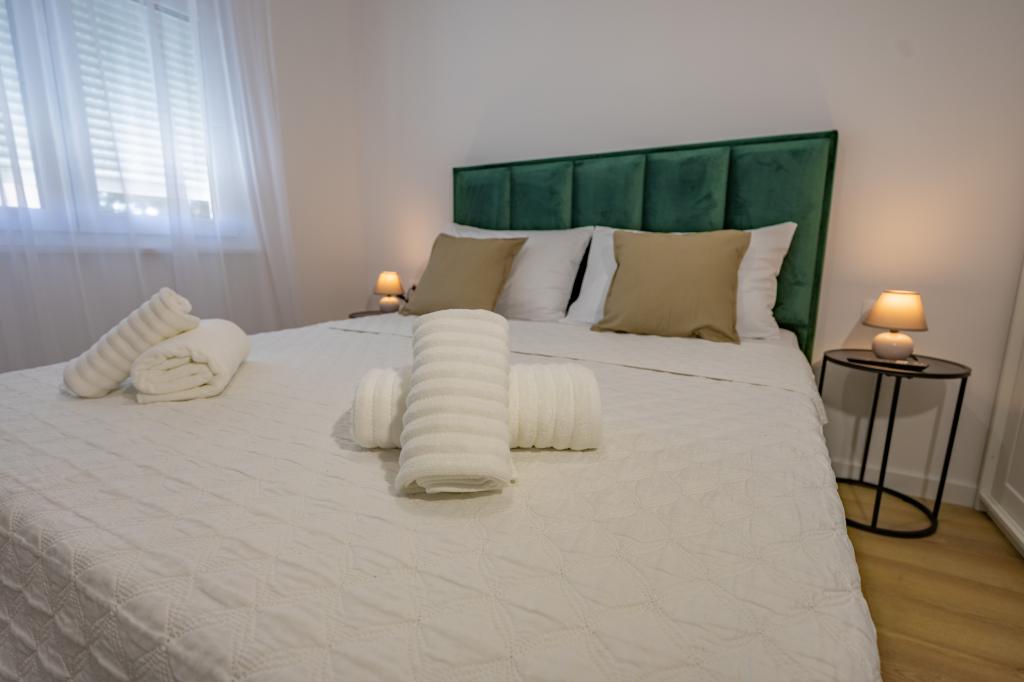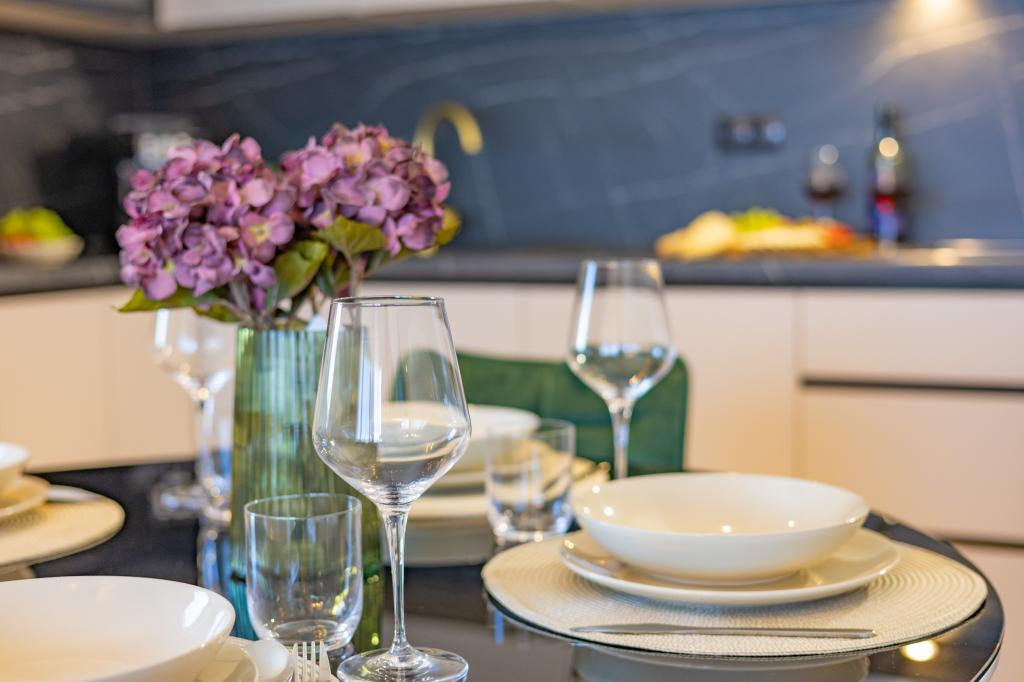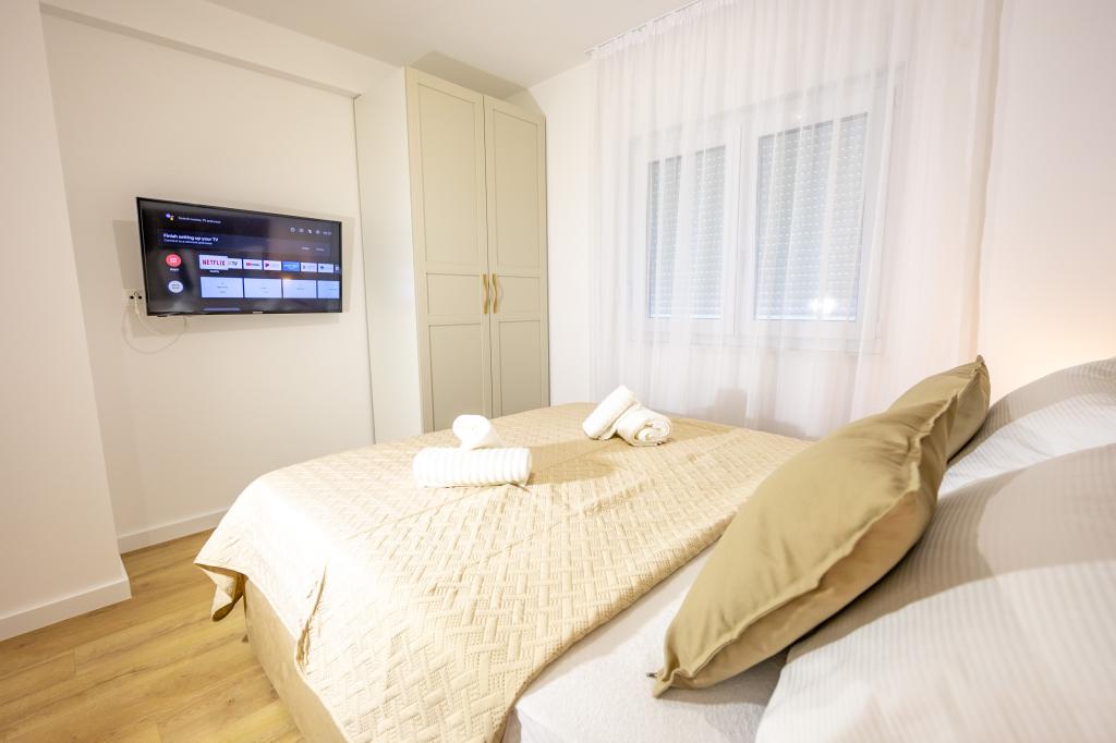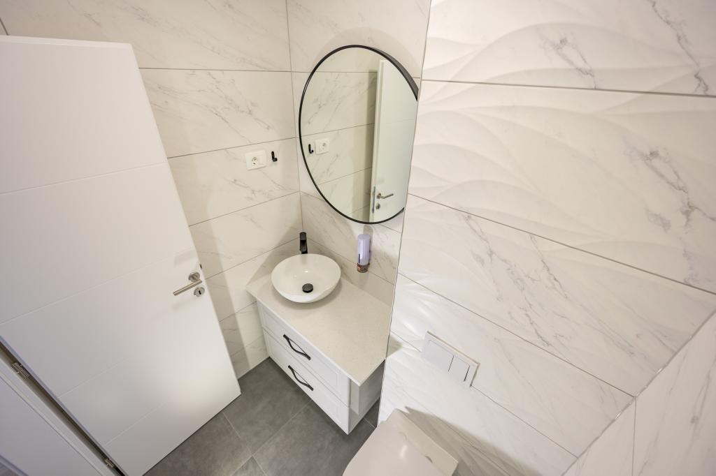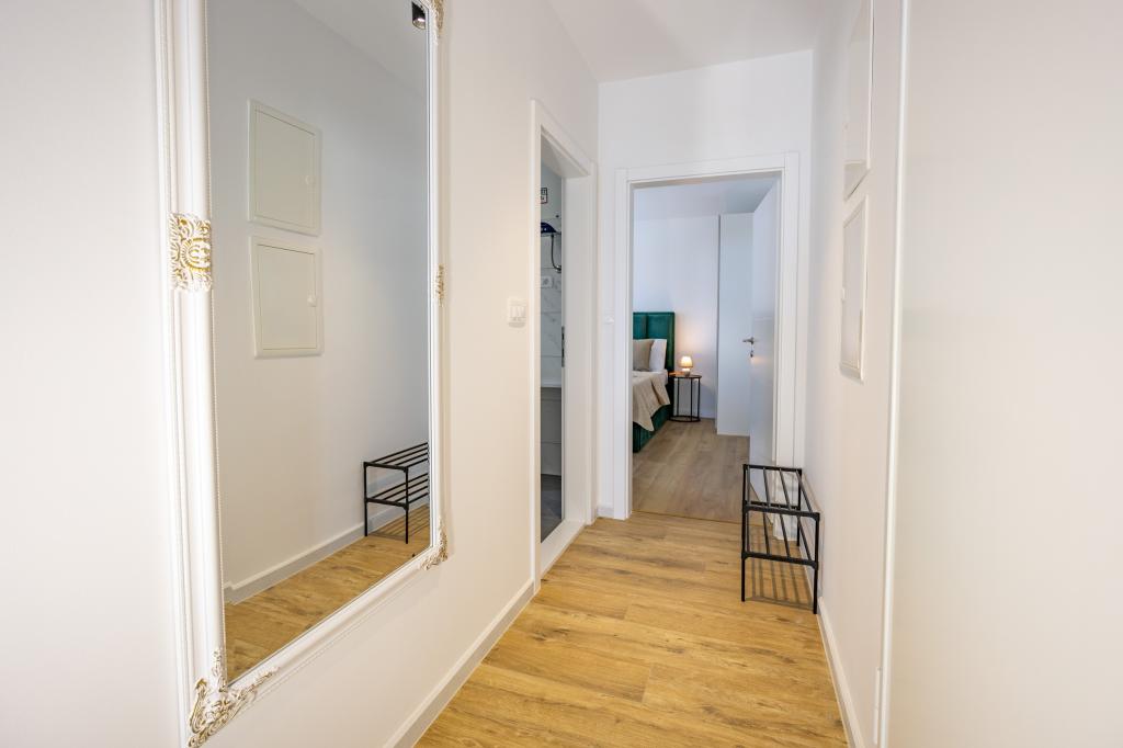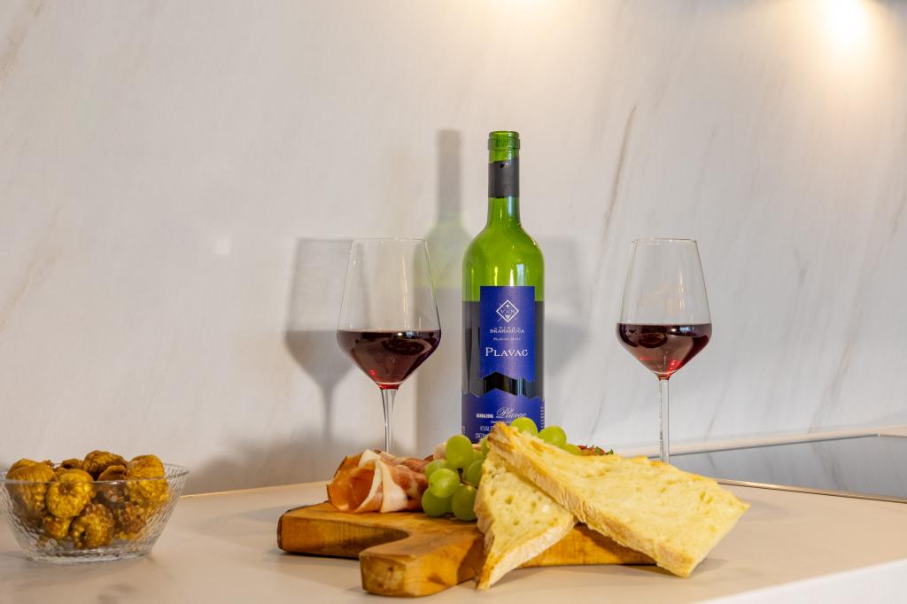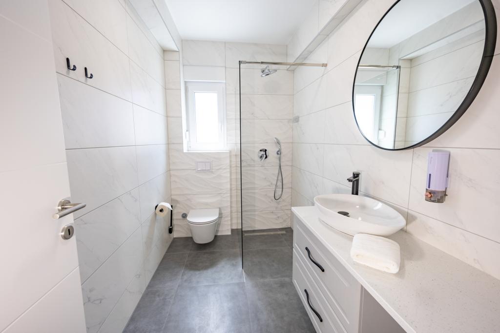 Each apartment exudes modern design and newly renovated interior. In the spacious living room, decorated with tasteful furniture and contemporary details, you will feel right at home. The open concept naturally connects the living room with a fully equipped kitchen, where elegant countertops, quality appliances and all the space you need to prepare your favorite meals await you. The living area opens onto a pleasant balcony - an ideal place for morning coffee or evening relaxation with a glass of wine and an unforgettable sunset over the Adriatic. Each apartment has two comfortable bedrooms with double beds, equipped with soft bedding and plenty of storage space, one modern bathroom and an additional toilet. The apartments are air-conditioned and fully equipped: TV/SAT, internet, washing machine, dishwasher, coffee maker and everything you need for a comfortable and carefree stay. Free parking near the beach is included in the rental price!