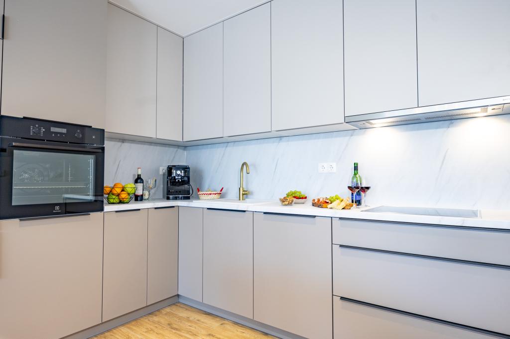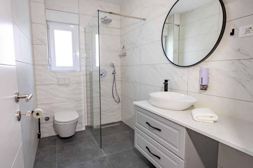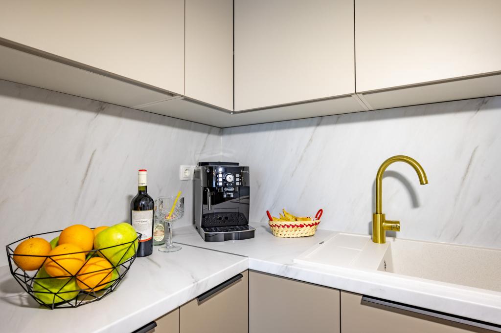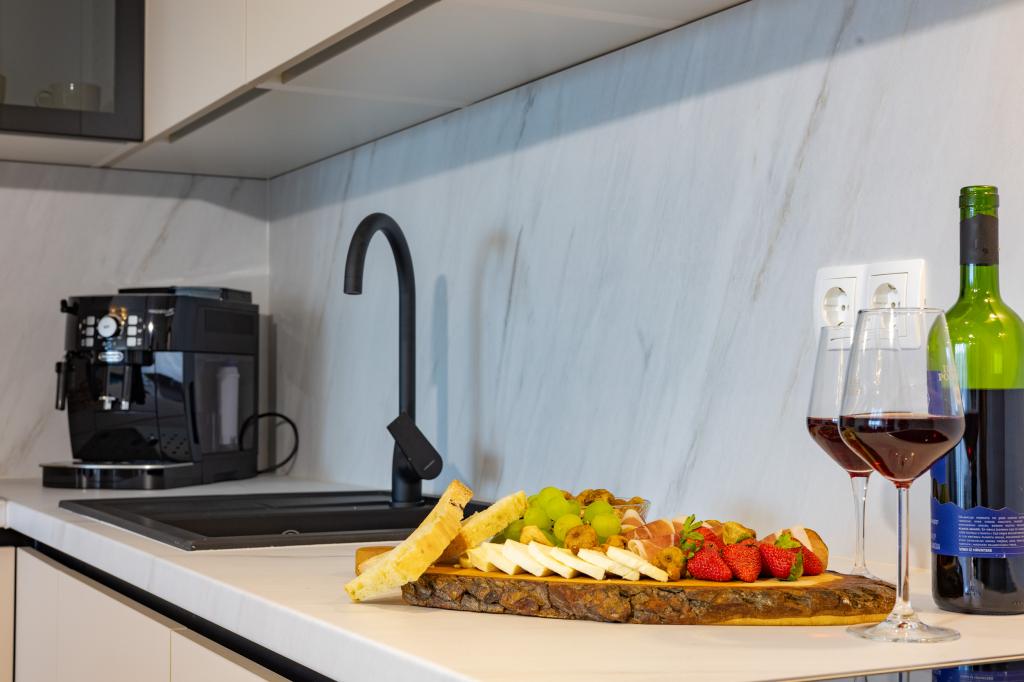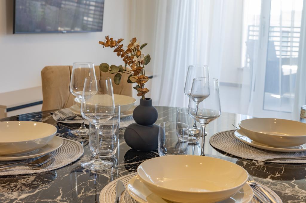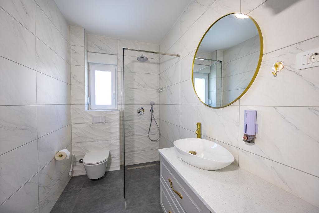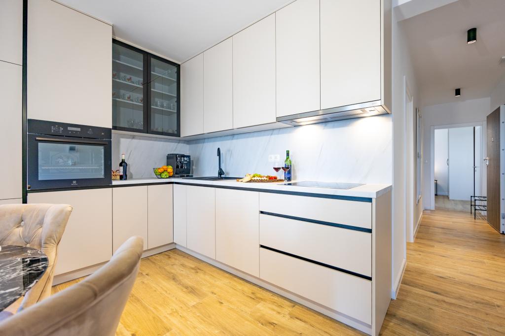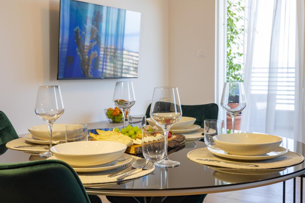 Each apartment exudes modern design and newly renovated interior. In the spacious living room, decorated with tasteful furniture and contemporary details, you will feel right at home. The open concept naturally connects the living room with a fully equipped kitchen, where elegant countertops, quality appliances and all the space you need to prepare your favorite meals await you. The living area opens onto a pleasant balcony - an ideal place for morning coffee or evening relaxation with a glass of wine and an unforgettable sunset over the Adriatic. Each apartment has two comfortable bedrooms with double beds, equipped with soft bedding and plenty of storage space, one modern bathroom and an additional toilet. The apartments are air-conditioned and fully equipped: TV/SAT, internet, washing machine, dishwasher, coffee maker and everything you need for a comfortable and carefree stay. Free parking near the beach is included in the rental price!