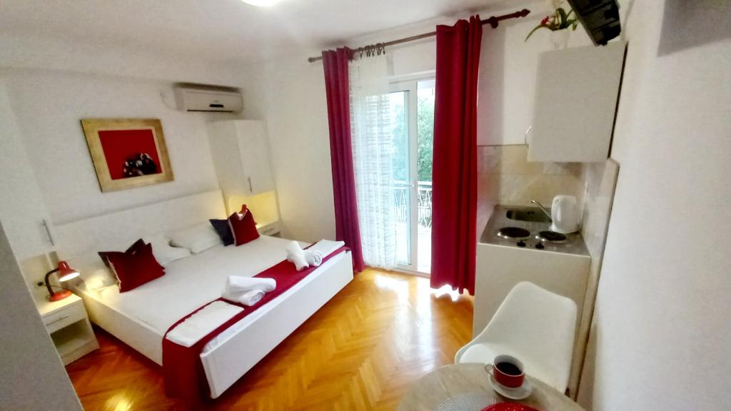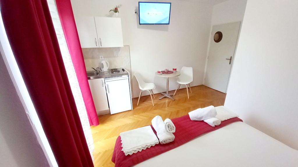 Excellent apartment and location in Makarska, for all those who want peace and quiet who want a vacation at sea. Ms. Miranda is always at your service and is very professional in terms of booking, communication and all the needs that a guest needs during their stay in Makarska and in her beautiful apartment. Clean and tidy studio as seen in the photos without any unpleasant surprises, air-conditioned rooms with sea views and the smell of intoxicating pine. Nearby is everything you may need during your stay, bakery, market, laundry, fruit, exchange office, gas station, bike rental or scooter. A warm recommendation for everyone who wants to visit Makarska and the Riviera.