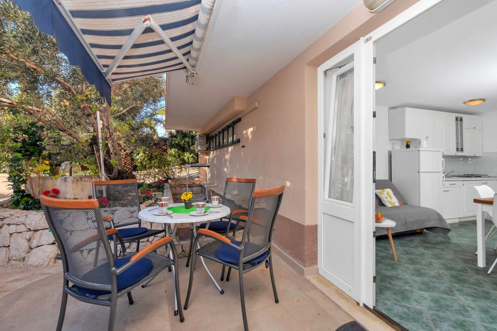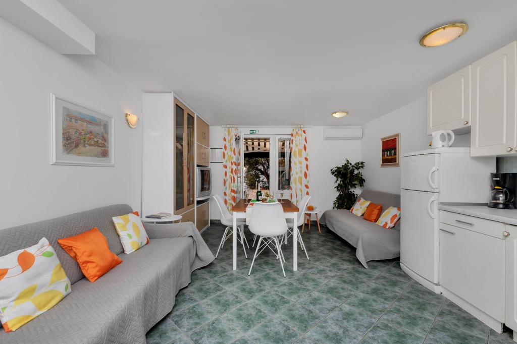 Villa Miranda is located at the very entrance to Makarska by Split, in the first street to the main road. Although in the city, Zagrebačka 94, it is completely surrounded by autochthonous nature - stone, olive trees and tall almond trees (almonds) spread over large areas around the house. All apartments and studios are air-conditioned and offer satellite TV, Wi-Fi, large parking and grill. There is no need to negotiate with the other guests for the grill, as several grills are available. The villa is a tourist, focused on your quiet and comfortable stay. It is 10 minutes walk to beautiful sandy beaches and 15-20 min walk to the center of Makarska. A few steps away is the cafe bar with accompanying amenities, bicycle hire and scooter rental. Only 5 mins walk is a pharmacy, bakery, super market, ATM. Very close is the Vepric-famous sanctuary, known as the Croatian Lourdes, and the tennis courts are 400 m away as well as the discotheque on the beach. You can bring your pet with you as well as bicycles