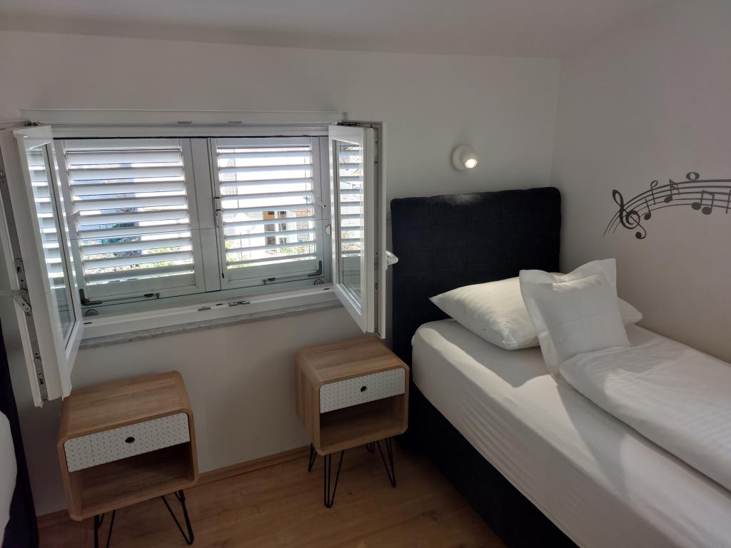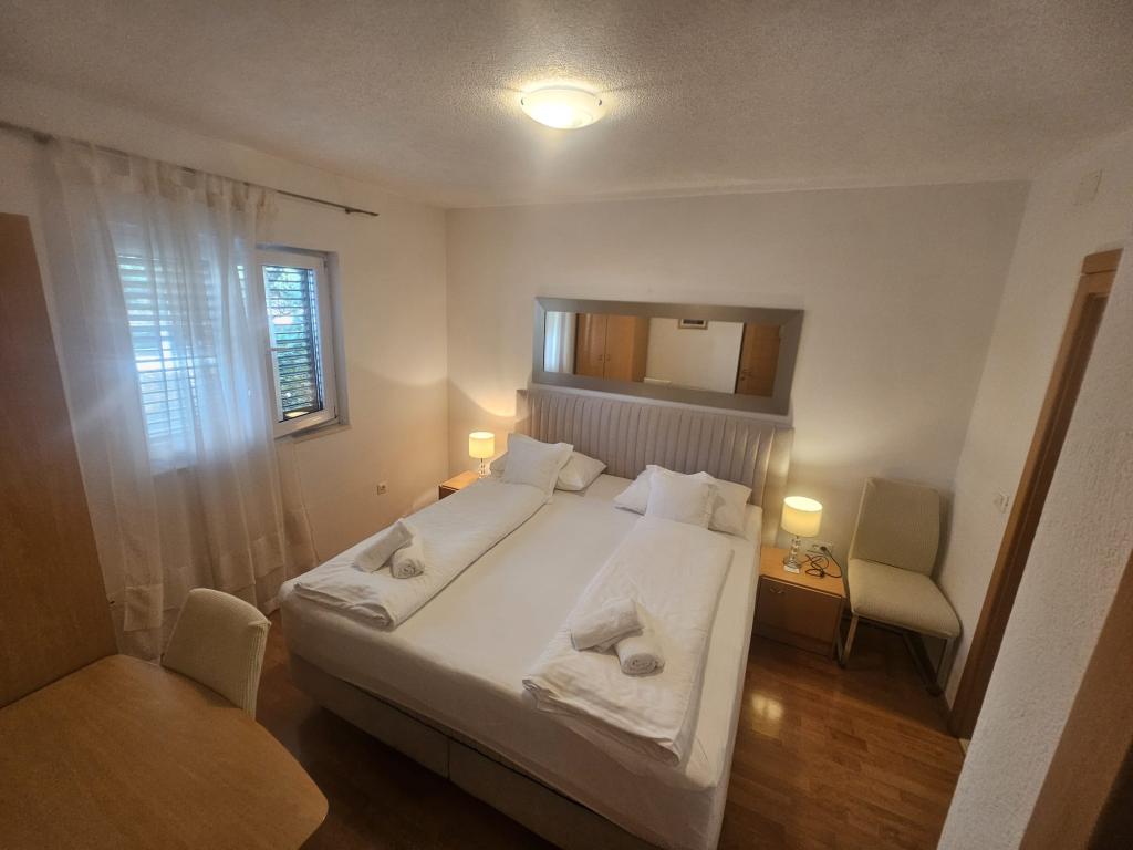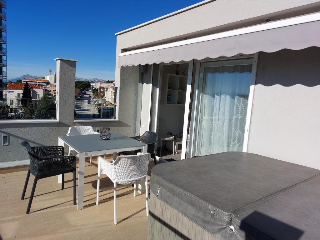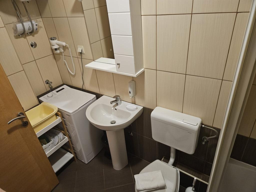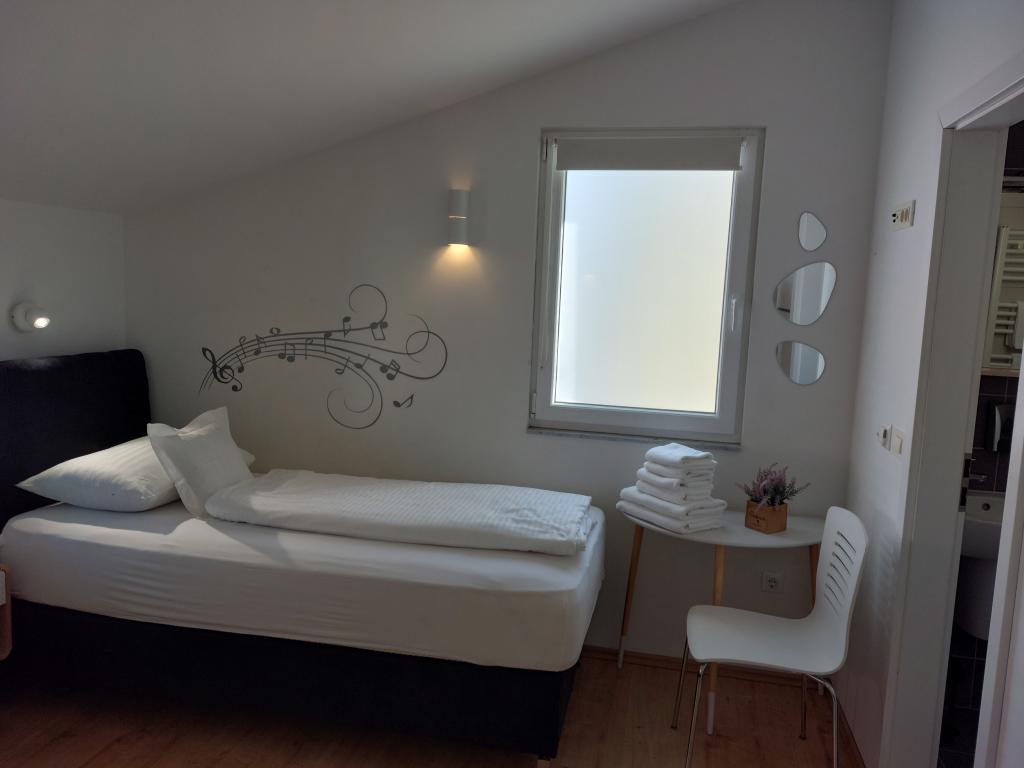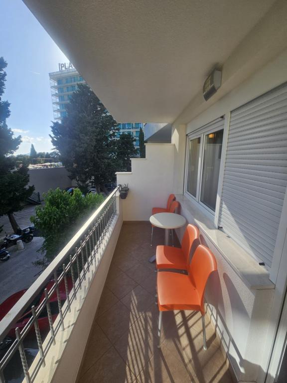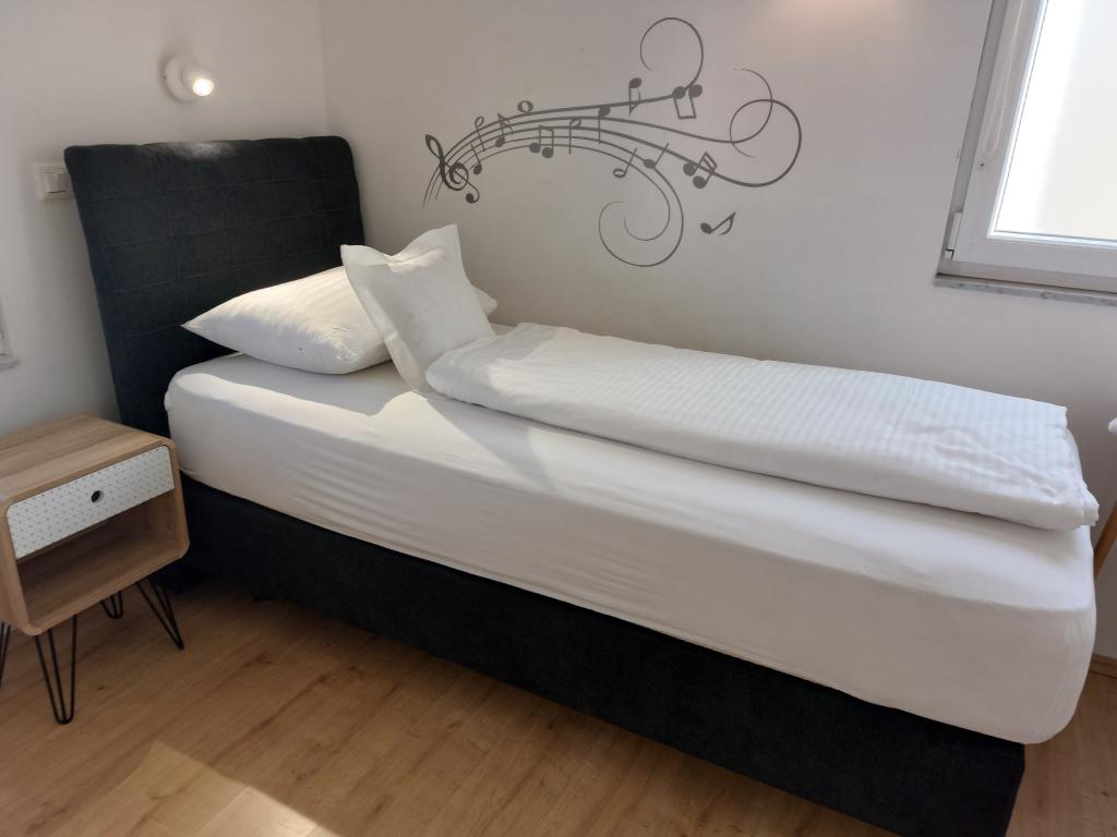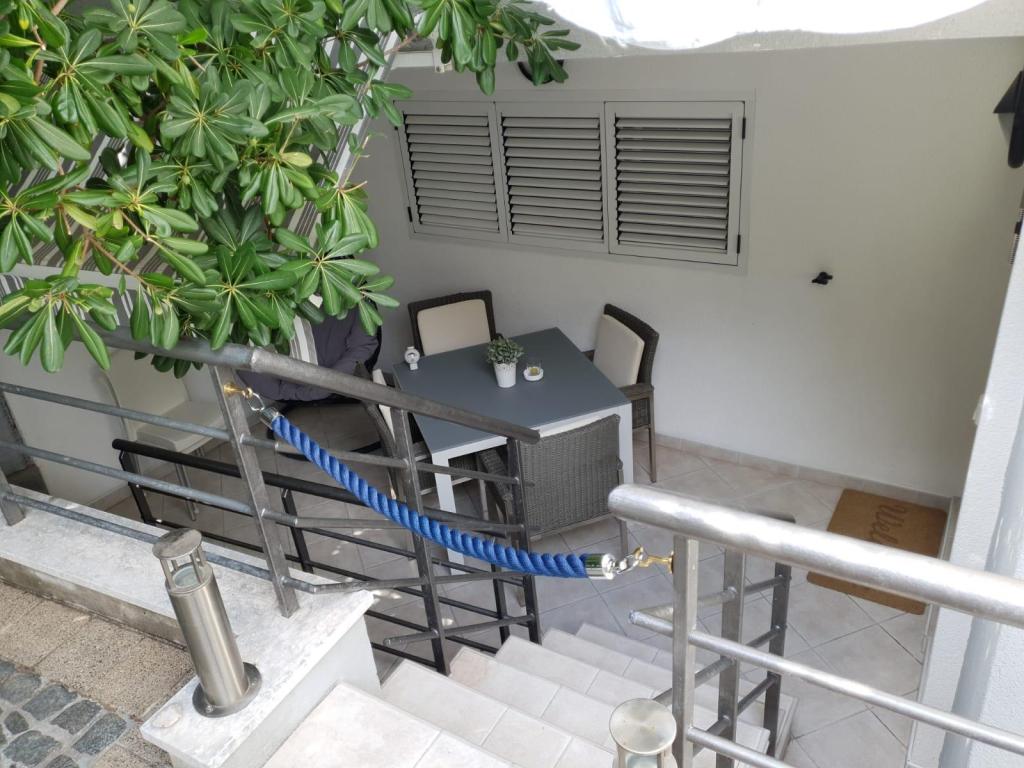 Our apartments are modern and fully equipped to make your stay as comfortable and carefree as possible. Each apartment includes an iron and ironing board, hairdryer, filter coffee maker, kettle, microwave. Guests also have access to complete utensils for preparing and serving food. All accommodation units have a flat-screen TV, free Wi-Fi, indoor and outdoor seating and relaxation areas. The accommodation units are air-conditioned. Parking must be reserved in advance due to the limited number of parking spaces within the facility. Fresh bed linen and towels await you upon arrival, which are changed as agreed. A baby cot, with prior notice, is available in this facility and is free of charge. Within the facility there is a shared courtyard with seating furniture, surrounded by Mediterranean plants - an ideal place to relax. The facility is located in a quiet area, in the second row from the sea, just a 2-minute walk to the beach and a ten-minute easy walk to the center.