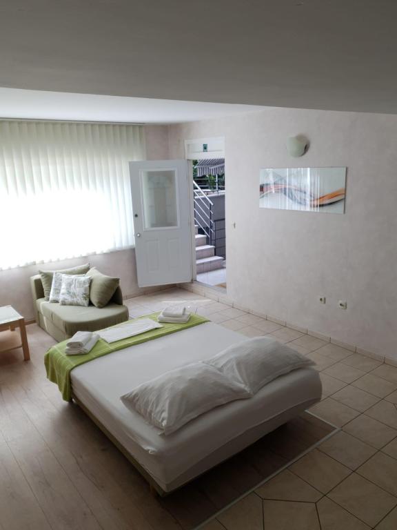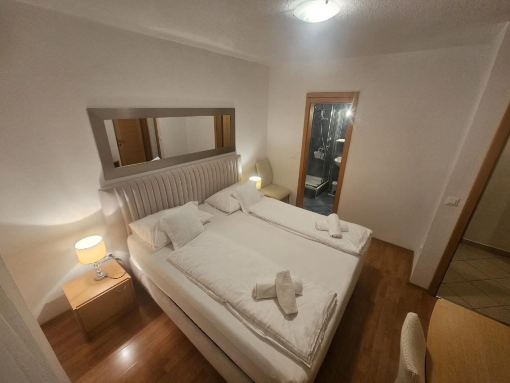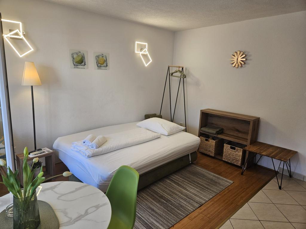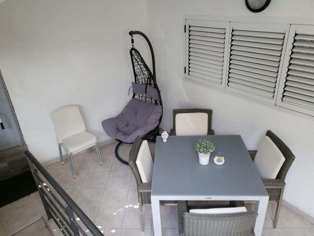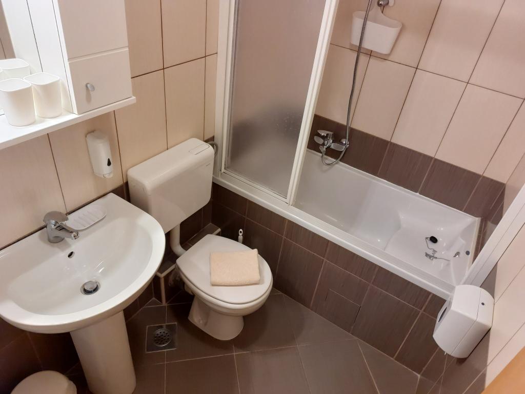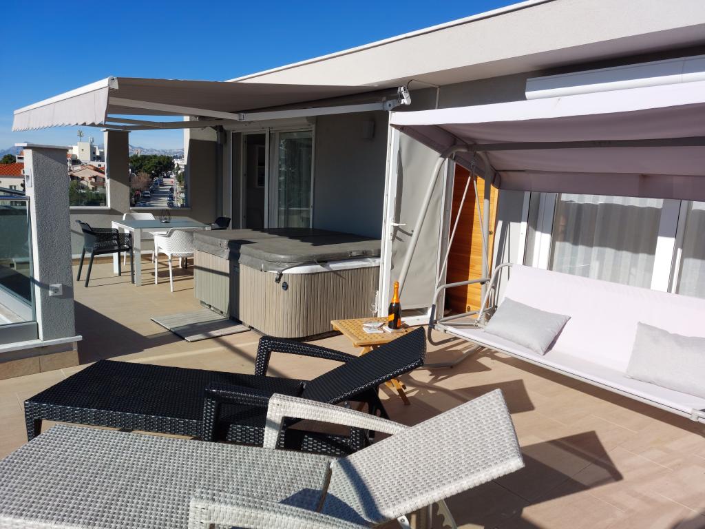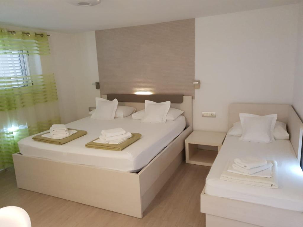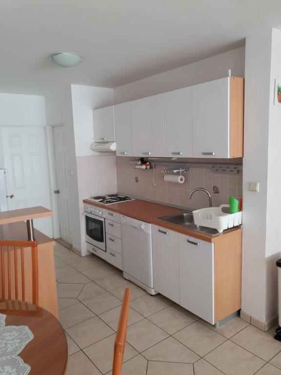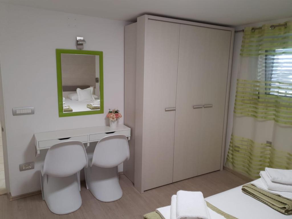 Our apartments are modern and fully equipped to make your stay as comfortable and carefree as possible. Each apartment includes an iron and ironing board, hairdryer, filter coffee maker, kettle, microwave. Guests also have access to complete utensils for preparing and serving food. All accommodation units have a flat-screen TV, free Wi-Fi, indoor and outdoor seating and relaxation areas. The accommodation units are air-conditioned. Parking must be reserved in advance due to the limited number of parking spaces within the facility. Fresh bed linen and towels await you upon arrival, which are changed as agreed. A baby cot, with prior notice, is available in this facility and is free of charge. Within the facility there is a shared courtyard with seating furniture, surrounded by Mediterranean plants - an ideal place to relax. The facility is located in a quiet area, in the second row from the sea, just a 2-minute walk to the beach and a ten-minute easy walk to the center.