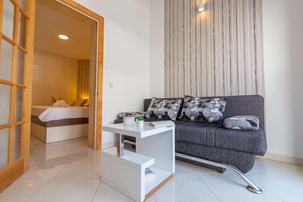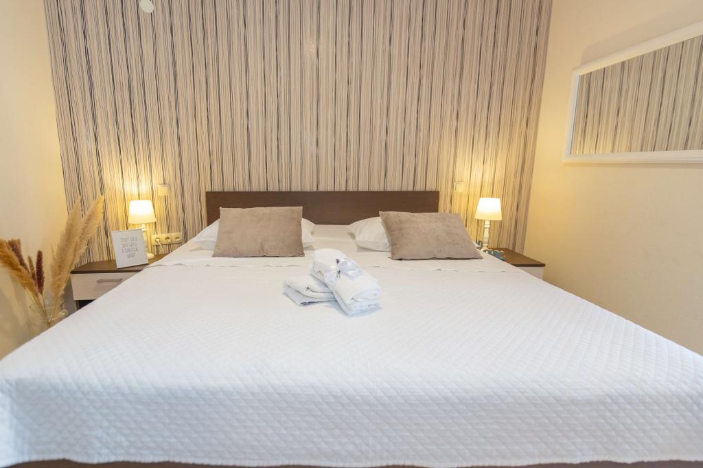 The room is clean and tidy, freshly painted, but smaller than 17m2. Fortunately, the terrace is big, almost as big as the room. Only towels are changed during the stay. The building has its own parking, but we were given a parking space 300m away. It is about 500 m from the sea, but it is very steep. The owners are cultured and friendly.