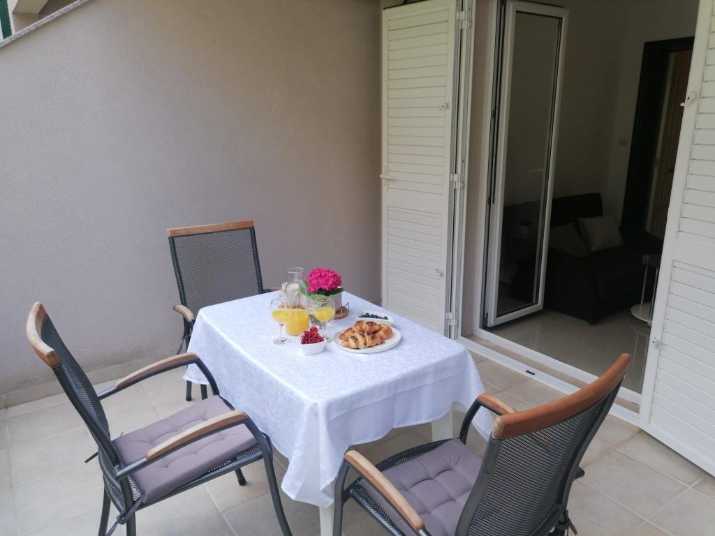 The apartment was excellent, clean, tidy and well equipped. The terrace is quiet and spacious, the kitchen has everything you need and the beds were very comfortable. The Vranješ family is very hospitable and they welcomed us very nicely and saw us off, they were very understanding for everything and were available at any moment, both for agreements about the apartment and for recommendations for fine restaurants. It is located about 10-15 minutes from the nearest beach, about 20-25 minutes from the center and the city market, which we highly recommend, in general we really liked the location (quiet area, but not too far). There is a well-stocked Konzum across the street, there are nice cafes and a bakery around. We didn't need it, but the parking lot is spacious and accessible. All in all, a very nice experience!
