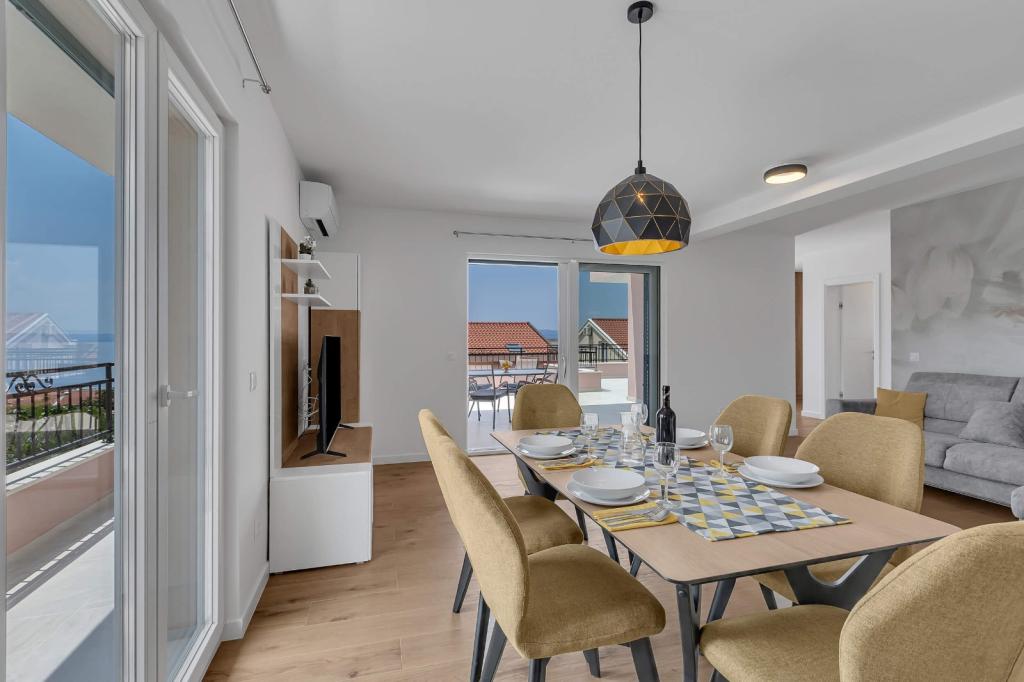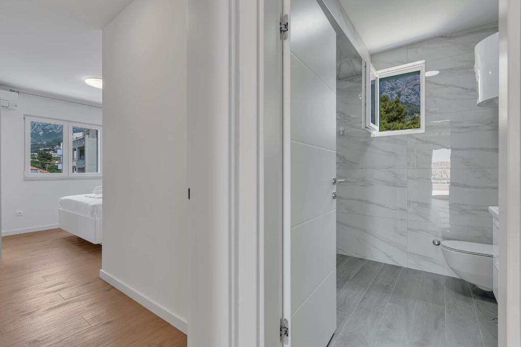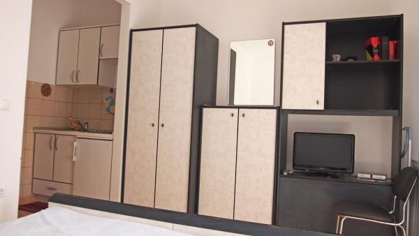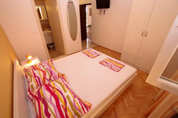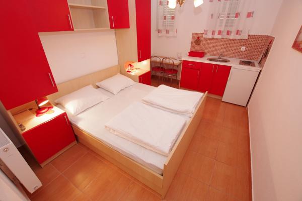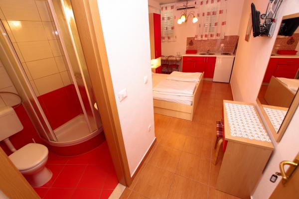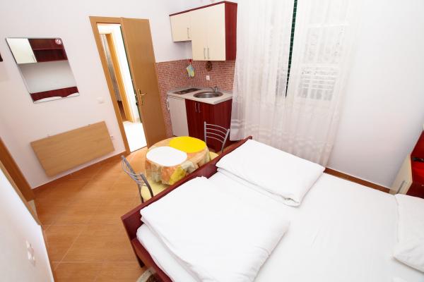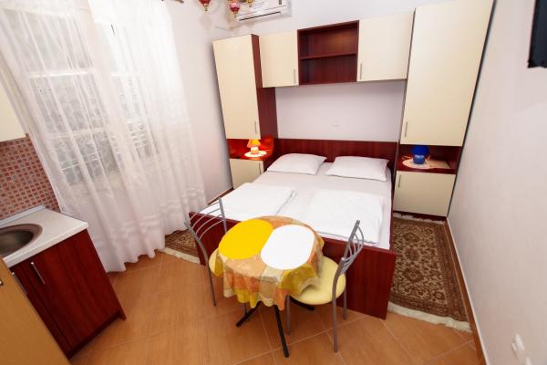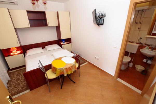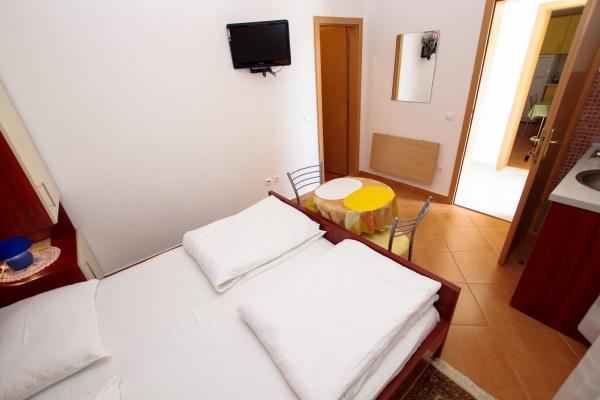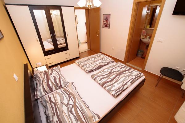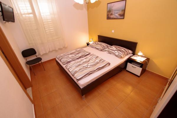 Our accommodation facilities are located inside the house where we live. In addition to secured parking around the house, we have provided all guests with televisions, air conditioning and access to fast Wi-Fi internet. We are located few minutes walk from the center and the sea, while we are about a 10-minute walk from the beach. On the ground floor there are three studio apartments for two people and one for three people, while on the first floor there are two studio apartments for two people. On the second floor there is a newly built apartment for four people categorized with four stars, with an area of over 90 square meters and a balcony of over 50 square meters. The apartment consists of two bedrooms, two bathrooms, a large living room with a kitchen and two balconies. It is completely newly furnished with all the necessary appliances such as a washing machine and dishwasher, microwave oven, refrigerator, three air conditioners etc. This apartment starts renting from 07/25.