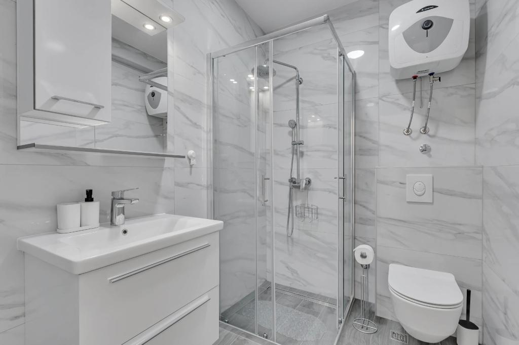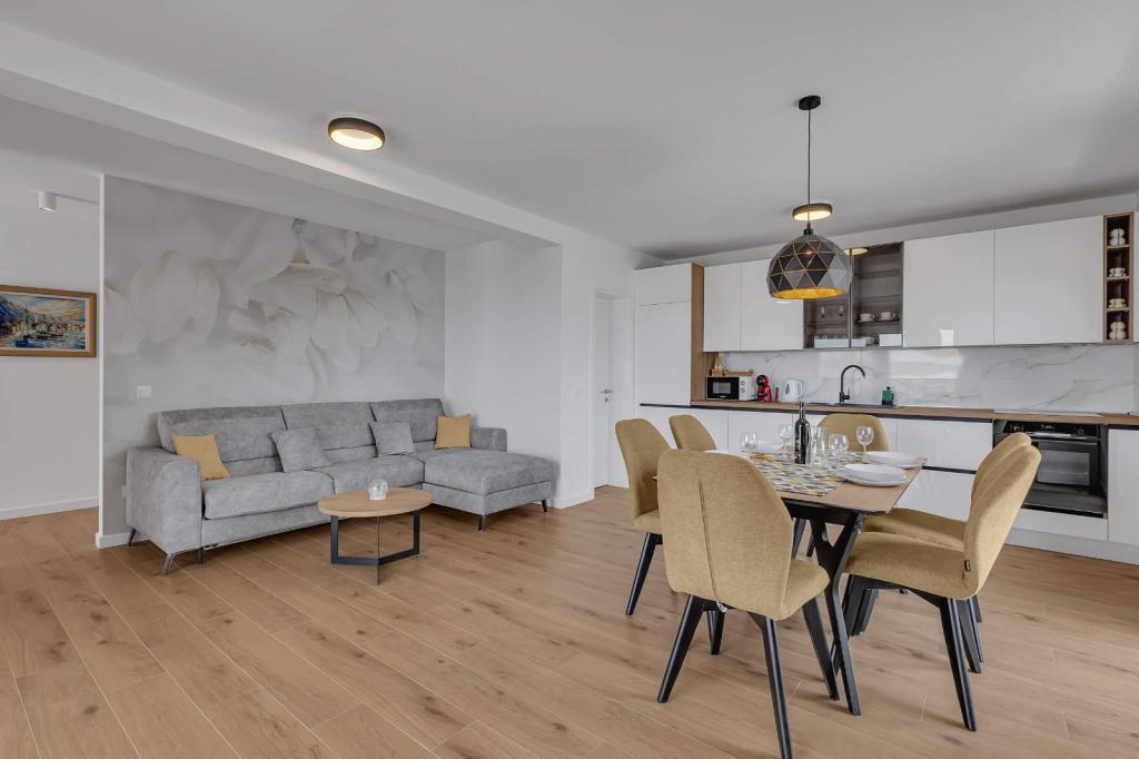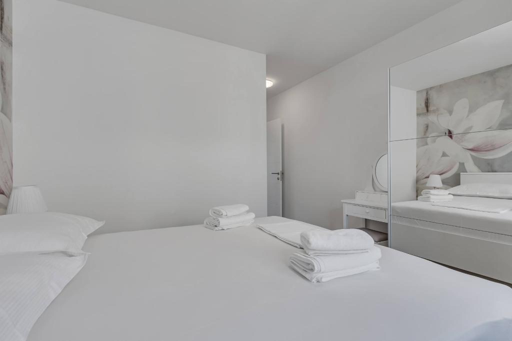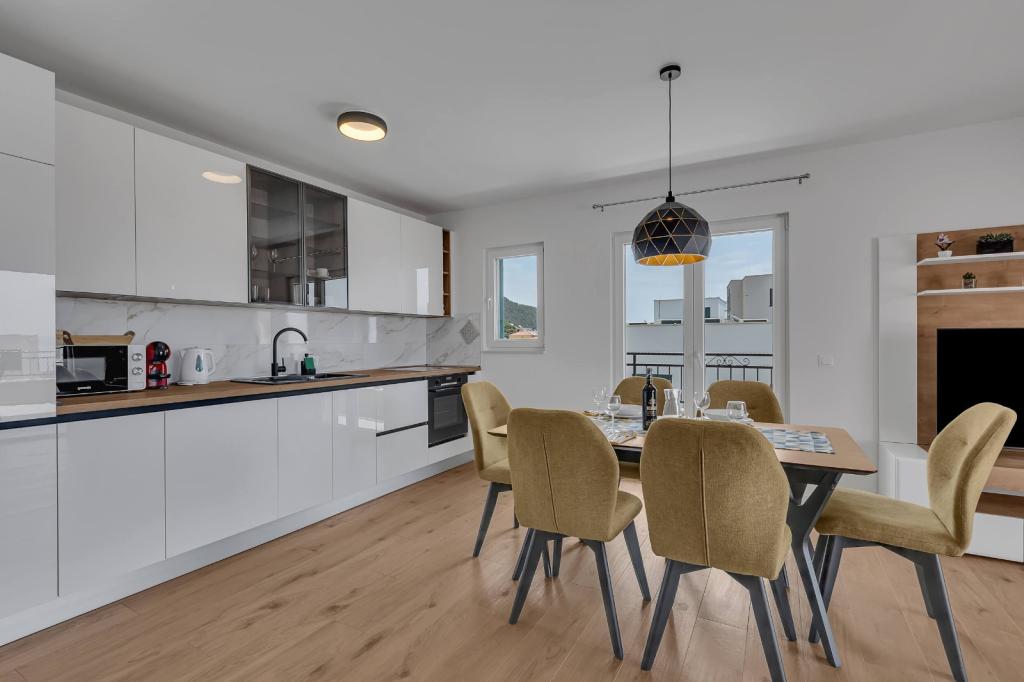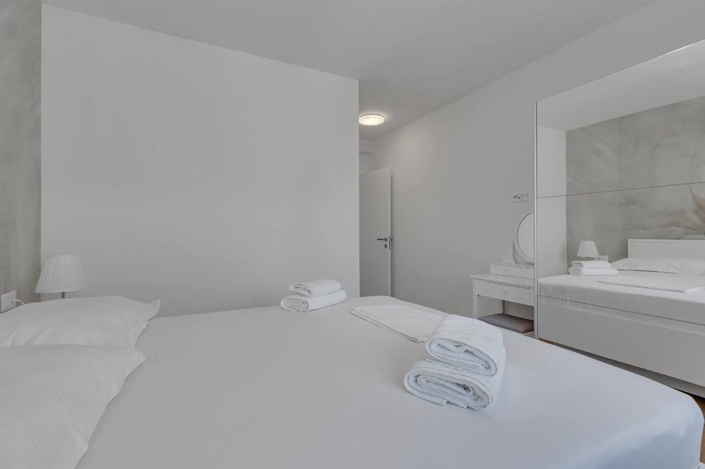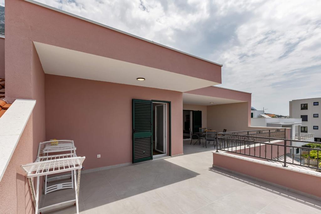 Our accommodation facilities are located inside the house where we live. In addition to secured parking around the house, we have provided all guests with televisions, air conditioning and access to fast Wi-Fi internet. We are located few minutes walk from the center and the sea, while we are about a 10-minute walk from the beach. On the ground floor there are three studio apartments for two people and one for three people, while on the first floor there are two studio apartments for two people. On the second floor there is a newly built apartment for four people categorized with four stars, with an area of over 90 square meters and a balcony of over 50 square meters. The apartment consists of two bedrooms, two bathrooms, a large living room with a kitchen and two balconies. It is completely newly furnished with all the necessary appliances such as a washing machine and dishwasher, microwave oven, refrigerator, three air conditioners etc. This apartment starts renting from 07/25.