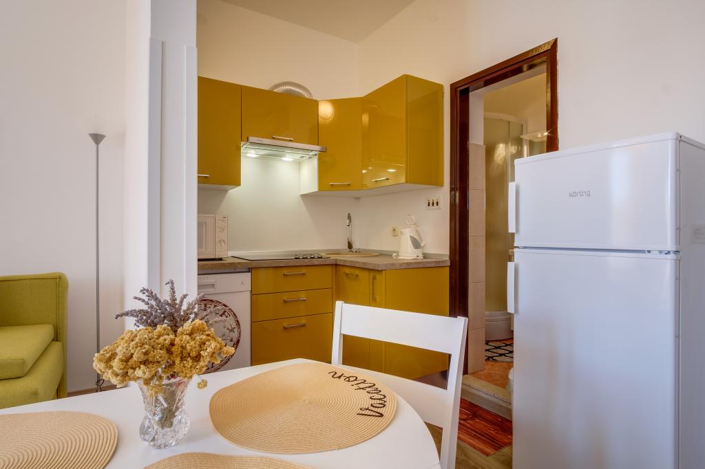 We wish all future guests a warm welcome and a pleasant stay in our accommodation. Apartment Besi is located near the center of Mali Lošinj, with a view of the sea and the harbor. The apartment is 36m2, located on the first floor, with one bedroom, living room, kitchen, bathroom and a small terrace. Fully equipped with everything you need for a pleasant stay and vacation (wi-fi, dishwasher, microwave, kettle, bed linen, towels, washing machine...) It is air-conditioned and has a secured parking space 200m from the apartment. The location is great because it is close to the center, restaurants, shops, and a pharmacy. The nearest beaches, Kadin and Zagazinjine, are only a 10-minute walk away.