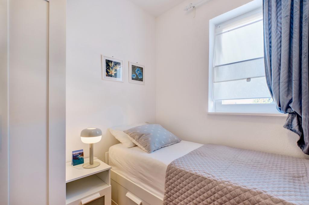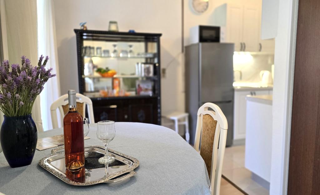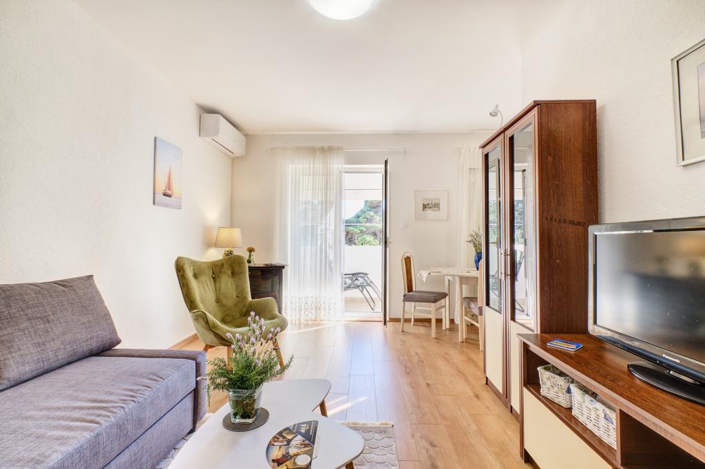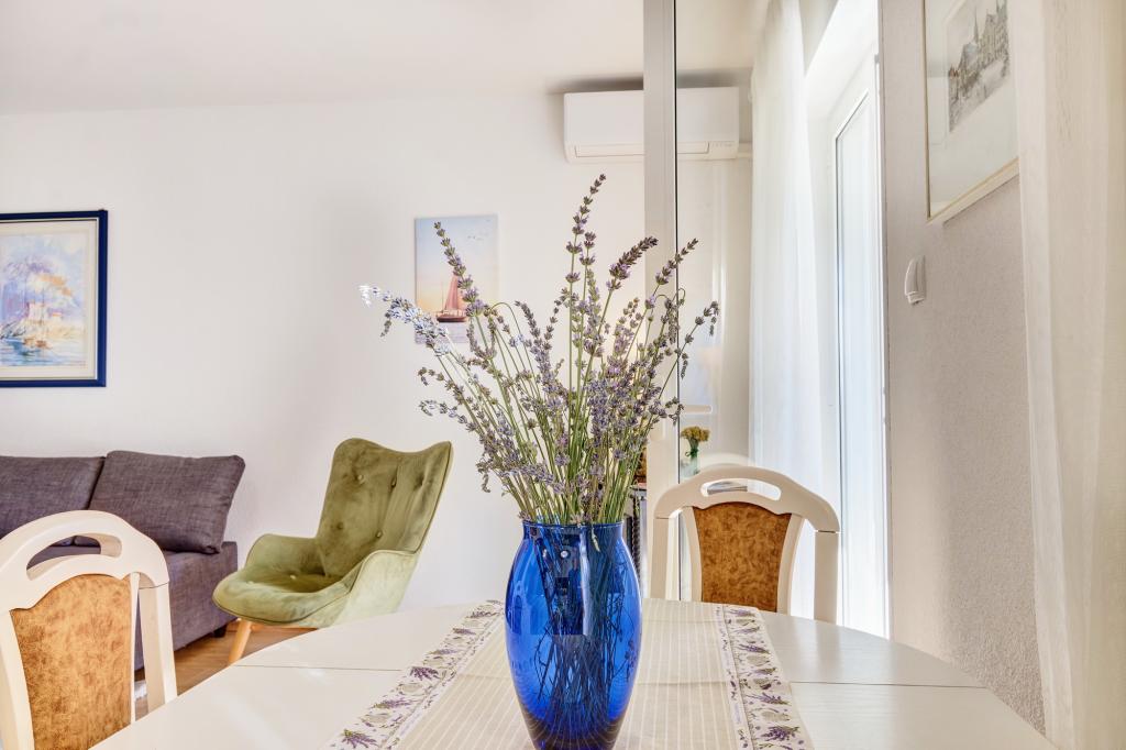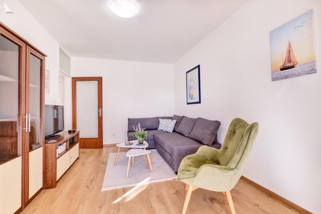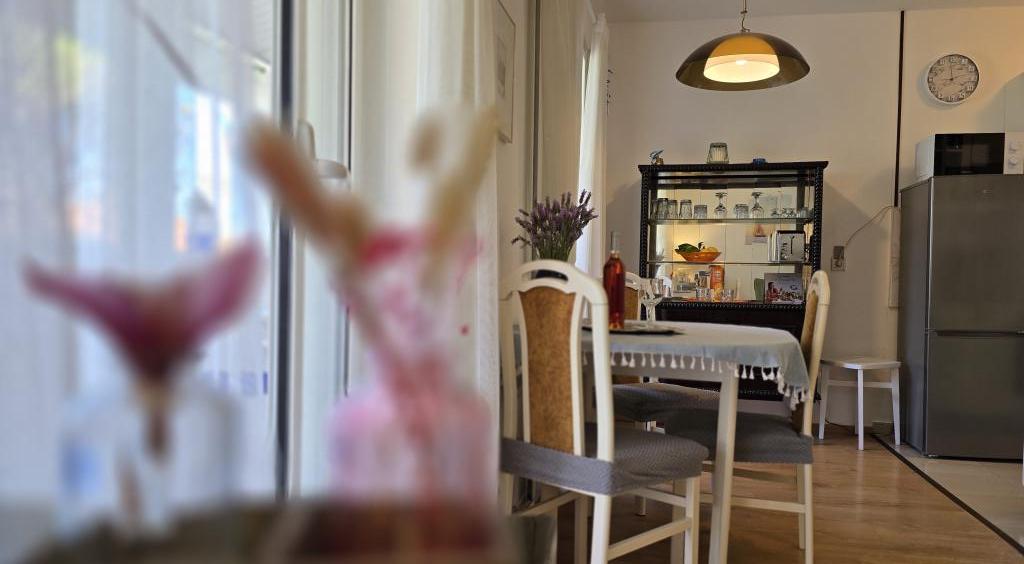 Apartment Blanka 1 is ideal for your vacation, it can accommodate 3 people. It offers you a bedroom with a double bed, an additional bedroom for one person, a living room, a dining room, a kitchen and a bathroom. A spacious terrace overlooking the garden provides additional space for relaxation and socializing. Additional amenities include WiFi, air conditioning and private parking, making this apartment a practical and comfortable choice for your stay.