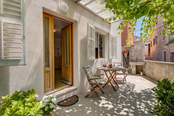 Apartment Pia is located in a family house, in a quiet street in the center of the city, and is designed to accommodate a maximum of 2 people. The harbor with cafe bars, restaurants and shops is nearby, and the Museum of Apoksiomen is only a few minutes from the house. The nearest beaches are Valdarke, Čikat and Sveti Martin (15 minutes on foot). Own parking space (included in the price) is located at the Budovina parking lot, at the entrance to the city, across from the police station, 5 minutes' walk from the apartment. Parking is also possible on the road, 50 m from the house, but for a fee. The apartment is located on the ground floor, is full of light, has an exit to the terrace and garden and a view of lemon, tangerine and bougainvillea trees. It is equipped with air conditioning, WiFi internet connection and satellite television, filter coffee machine and Nespresso machine. It is a pleasant place to stay in summer, but also in other parts of the year, especially in spring and autumn.