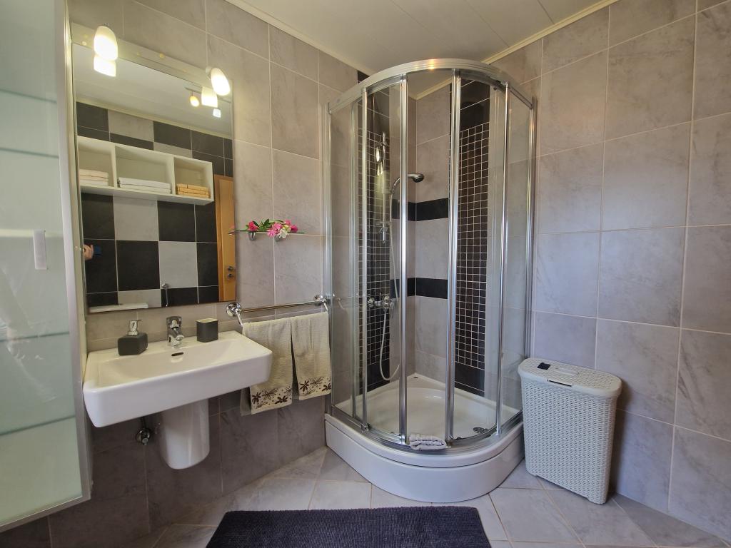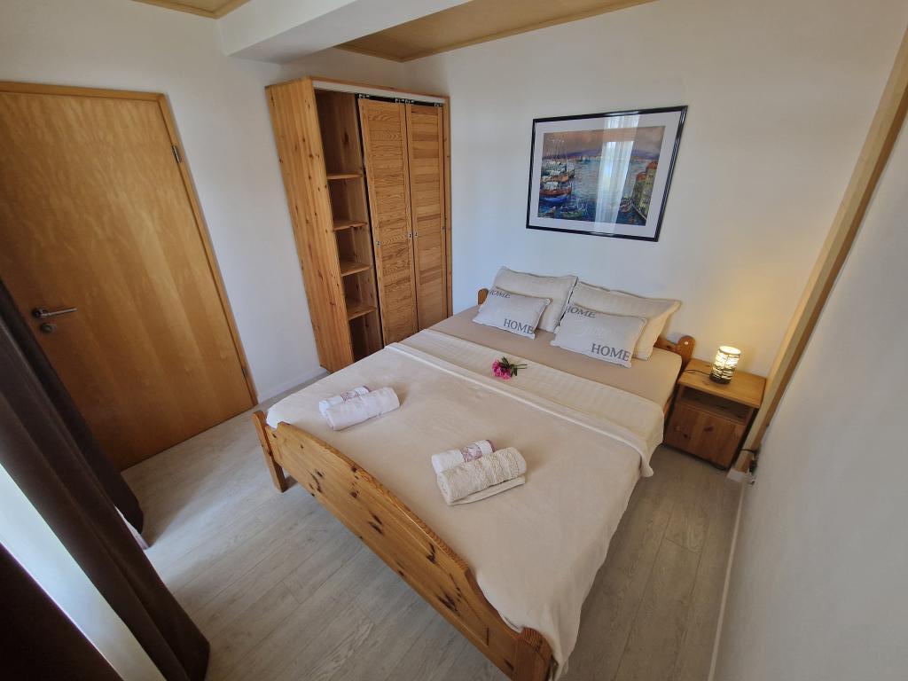 Fully equipped apartment has two separate bedrooms, living room with kitchen, bathroom and terrace. Beautiful sea view from the terrace, bedroom and living room. It is located in a quiet area of Mali Lošinj, Poljana I, located 90m from the sea. The beach is pebble and concrete, and is located 350m away. Near the apartment there is a promenade by the sea and a bicycle path. Parking is located in front of the apartment. Pets are welcome (surcharge for pets is €7 per day) Final cleaning of the apartment is €60