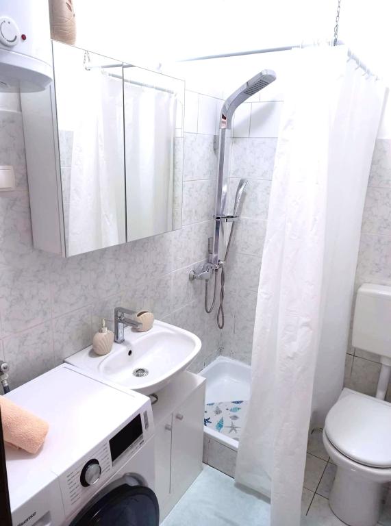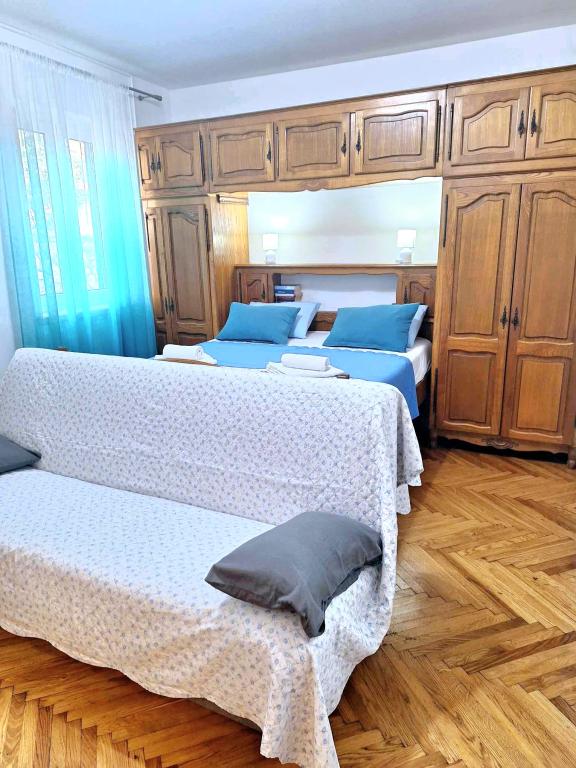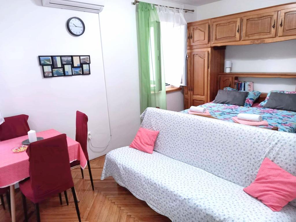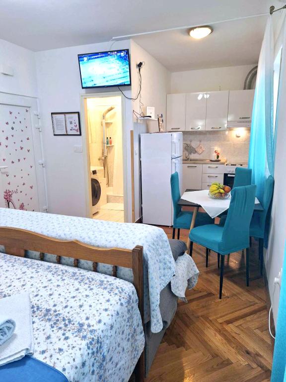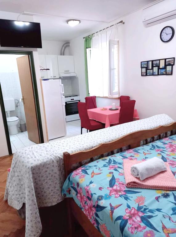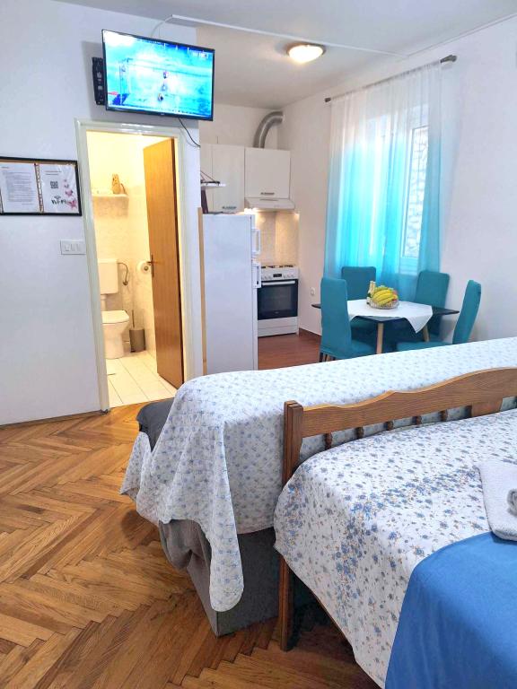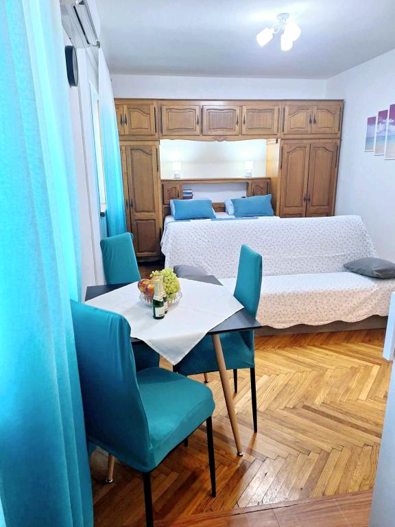 Studio apartment Donna has three stars. It is located on the ground floor of a building in a quiet part of the town of Mali Lošinj. The apartment is intended for two people with an additional bed for another person or child. Free WiFi and parking are available within the facility (you will receive a key). The apartment has a terrace where you can start the day drinking your first morning coffee. The newly renovated apartment is equipped with the necessary small and large household appliances (television, internet, air conditioning, washing machine, kettle, hair dryer, clothes iron). Due to the emergence of the coronavirus, we have taken all preventive measures to ensure that you are safe during your stay in the apartment. Hand sanitizer will be waiting for you at the entrance to the apartment. The nearest Valdarka beach is 200m away. The beach has natural shade, clean sea, well-maintained entrance and children's playground. There are numerous other beaches nearby that you can visit and find something for you (sun, shade, sand, rocks, bars, restaurants, etc.). Your child will be attracted to Aquapark Čikat, where there are outdoor pools and a water slide. Everything you need for a nice and quality vacation is located not far from the apartment (stores Lidl, Konzum, Jadranka, DM, Bipa, pharmacies and numerous restaurants). Near the apartment there is one of the many places worth visiting in Lošinj, namely the Miomirisni vrt, which is full of plant riches and where you can buy a souvenir. In addition to the Miomirisno vrta, you can also visit the thematic viewpoint Providence, which offers a beautiful view of the city, its bays and beaches. If you want to learn something during your vacation, you can visit the Apoksiomena museum, which is located on the waterfront. If you want to see the city by car, there is also a tourist train for you, which takes the route from Lidl to Camp Čikat and Borik Beach. The catamaran pier is a 15-minute walk from the apartment, and th